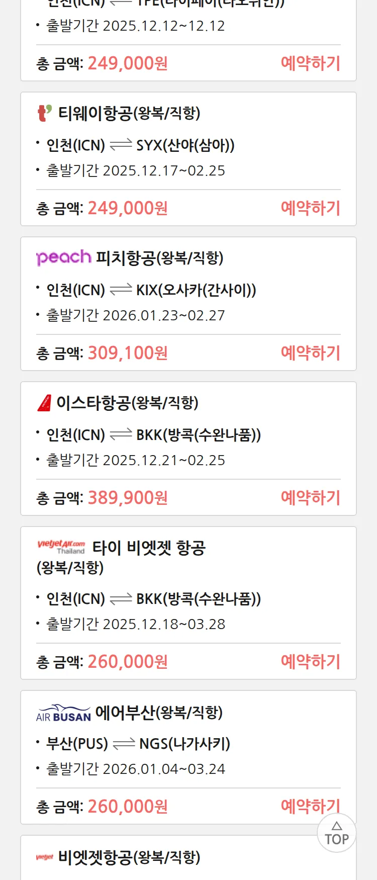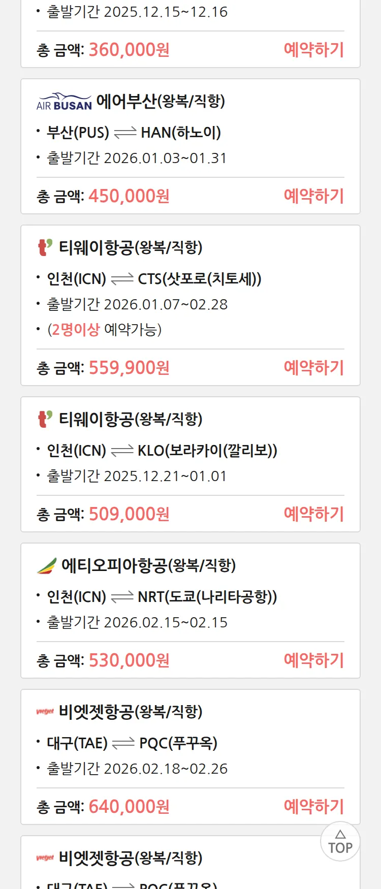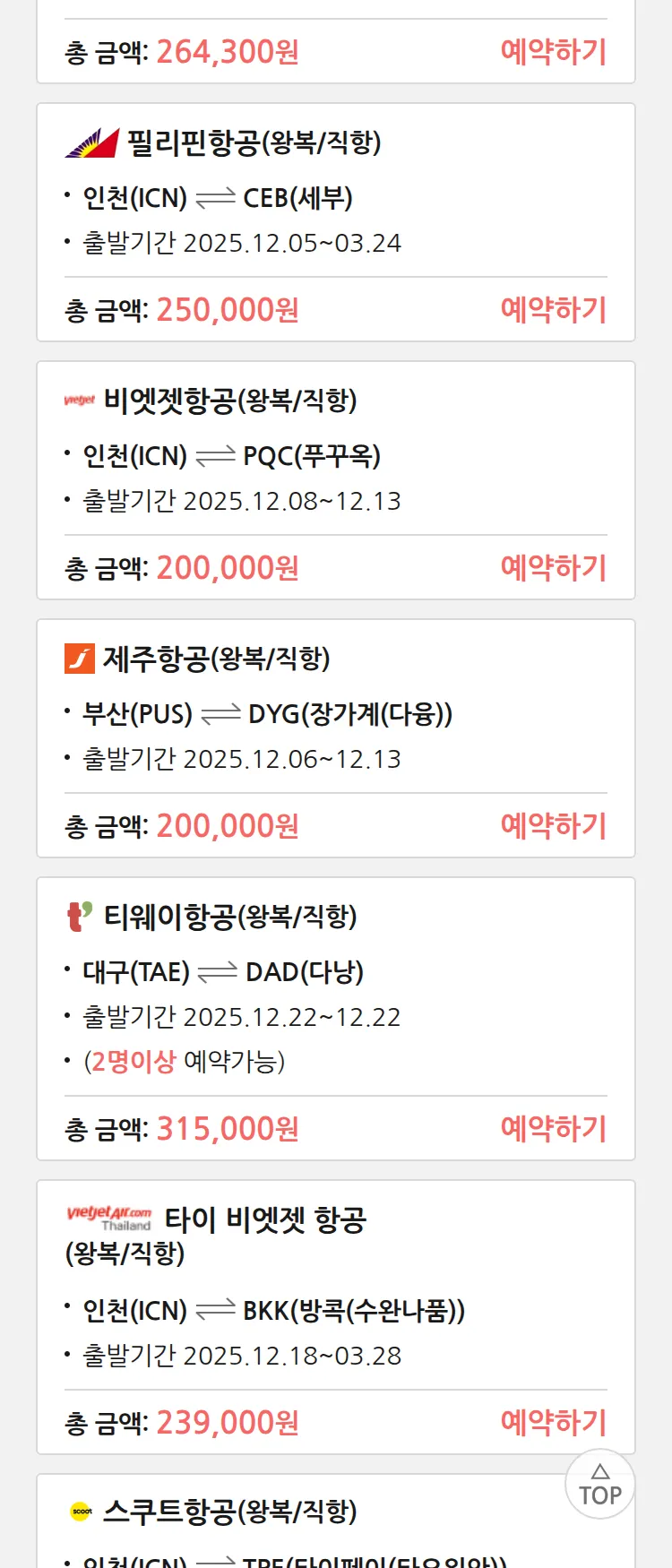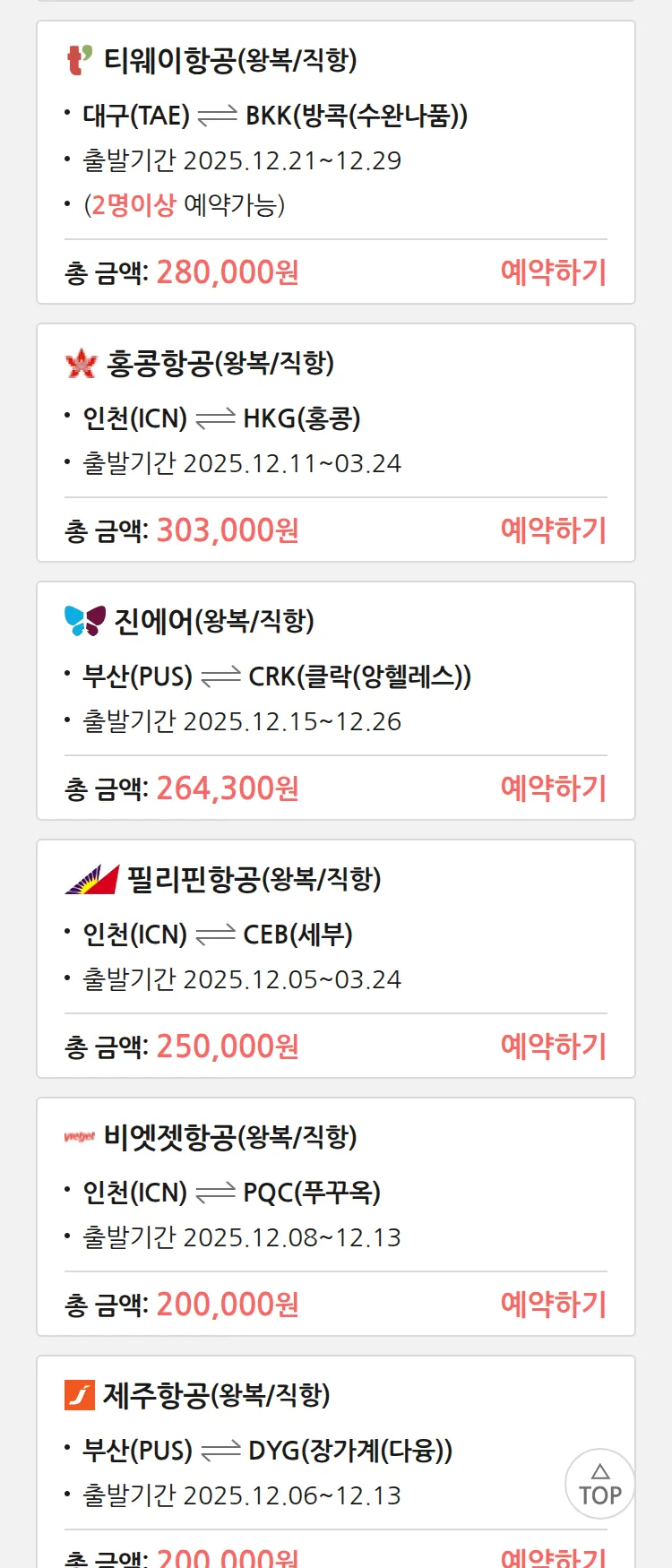 (12월2일(화)) 모두투어 동남아 특가 항공권