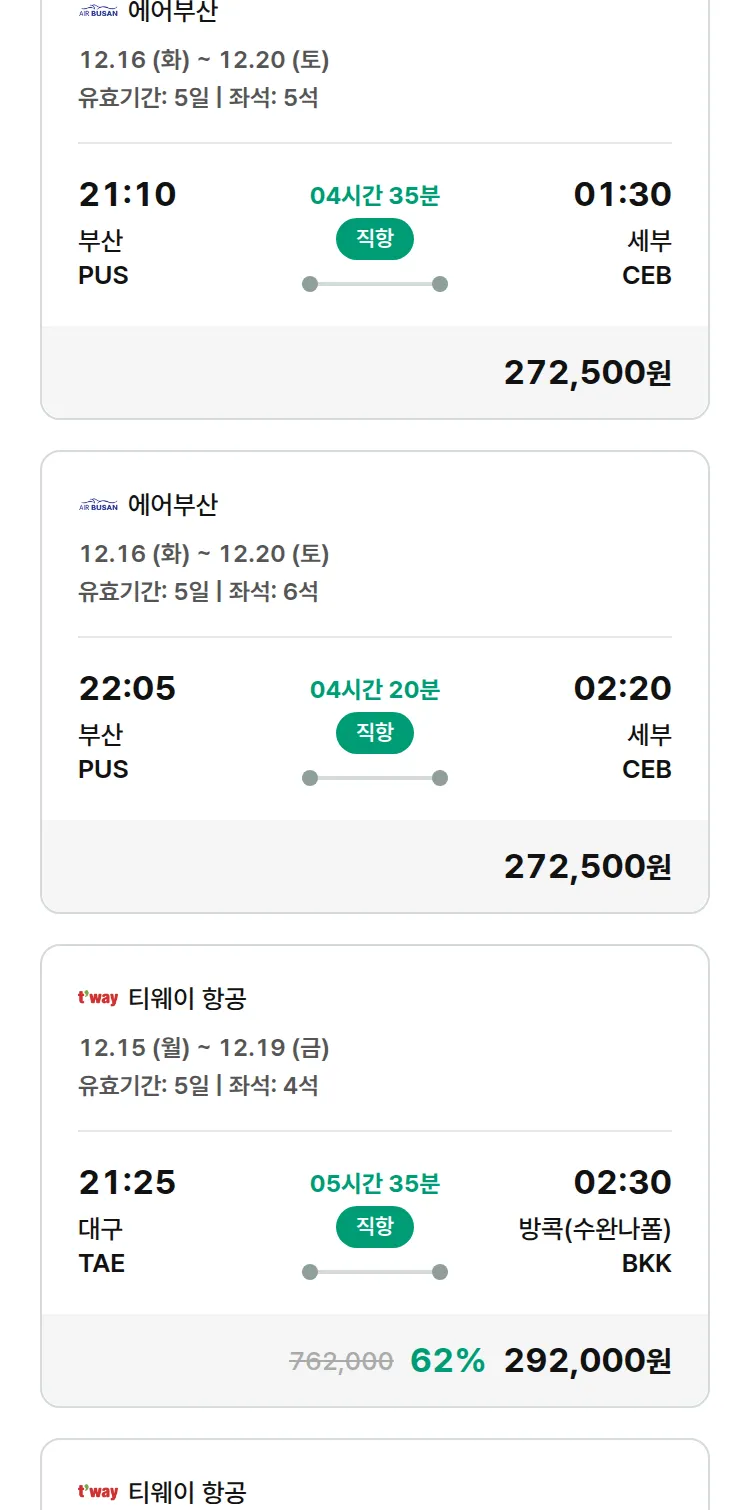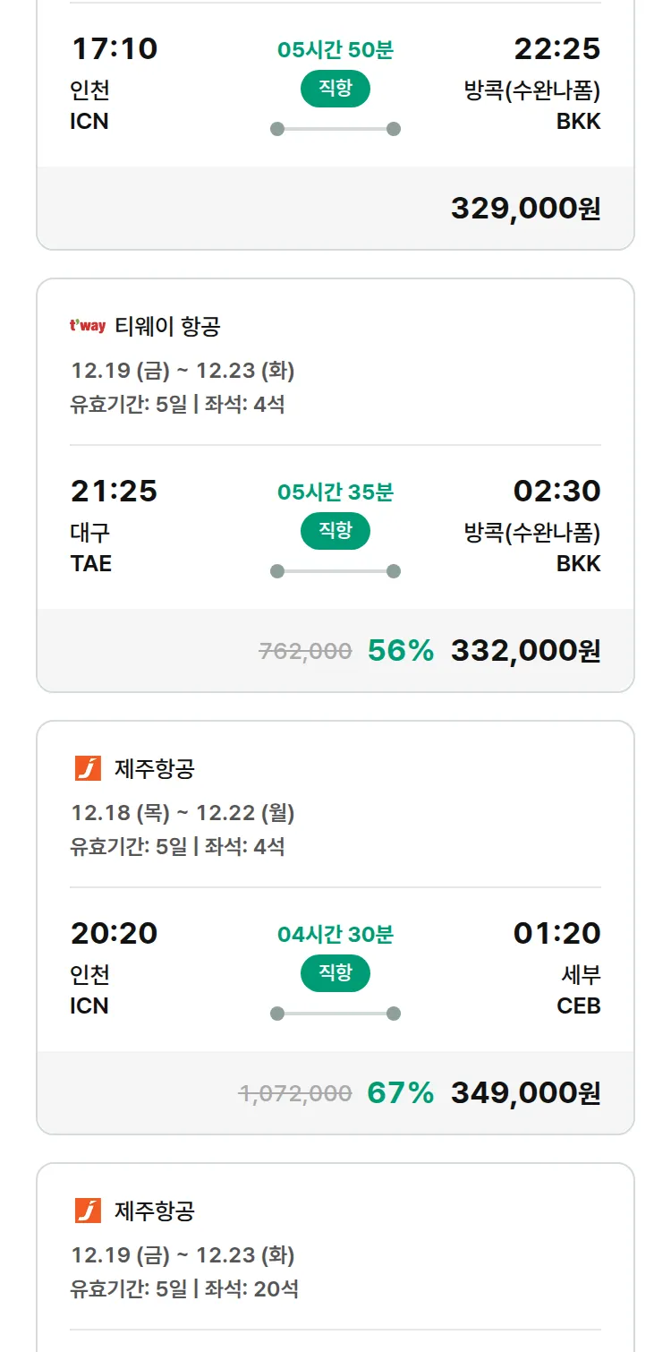 (12월2일(화)) 땡처리 99.9% 확정 패키지