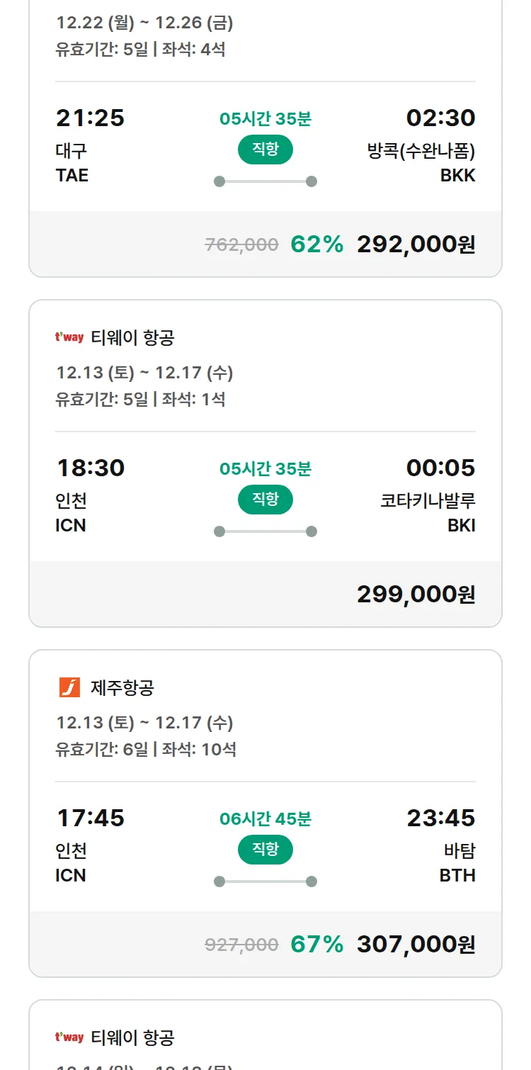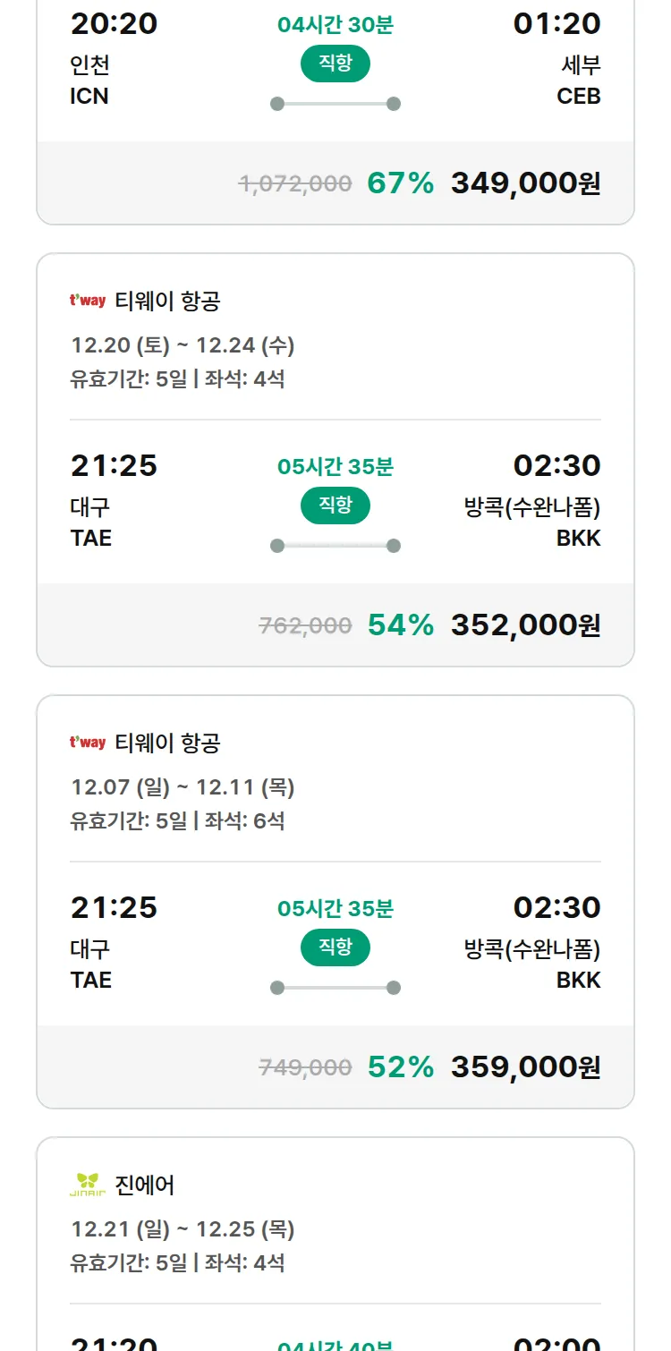 (12월2일(화)) 모두투어 동남아 특가 항공권