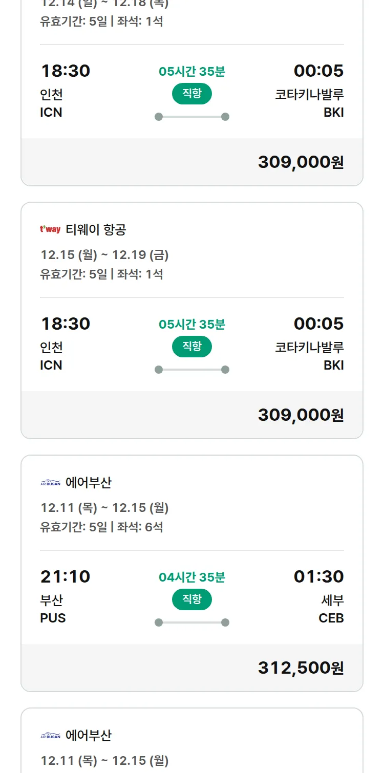 (12월1일(월)) 모두투어 동남아 특가 항공권