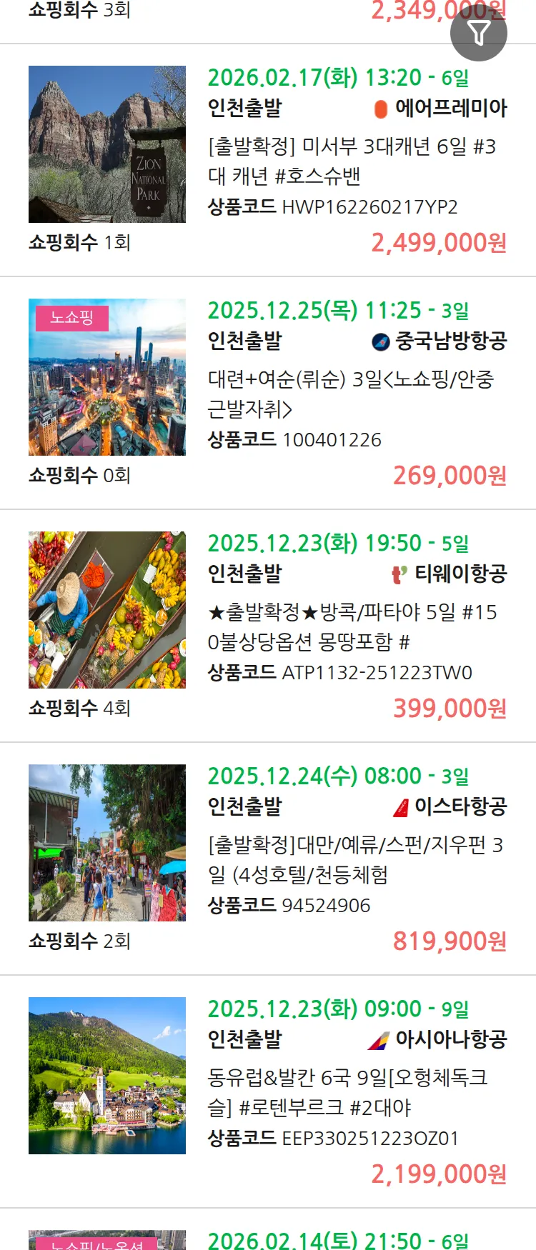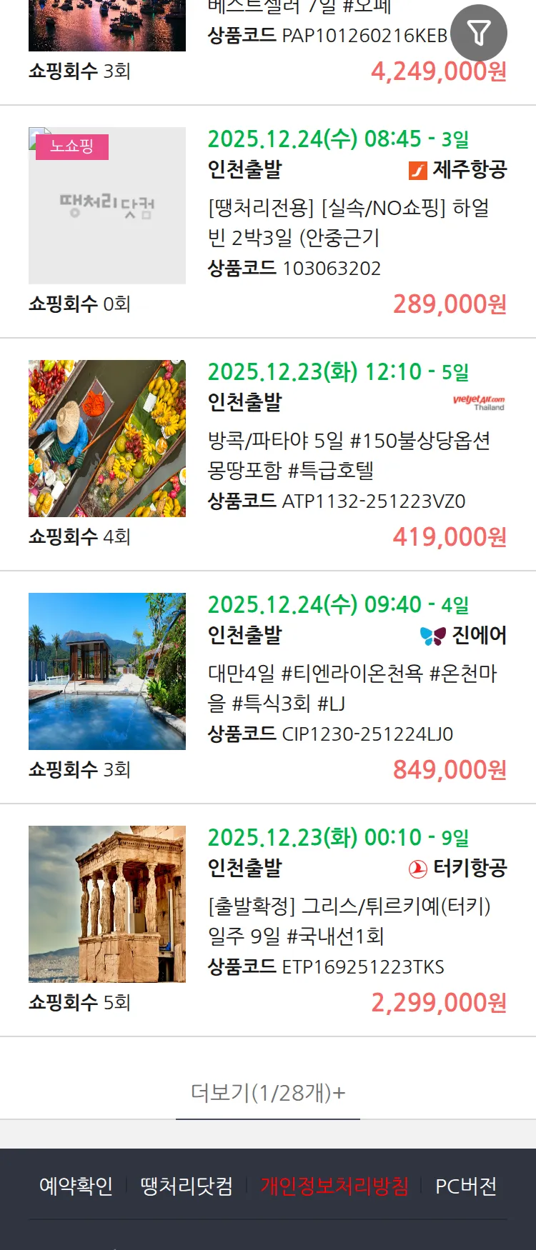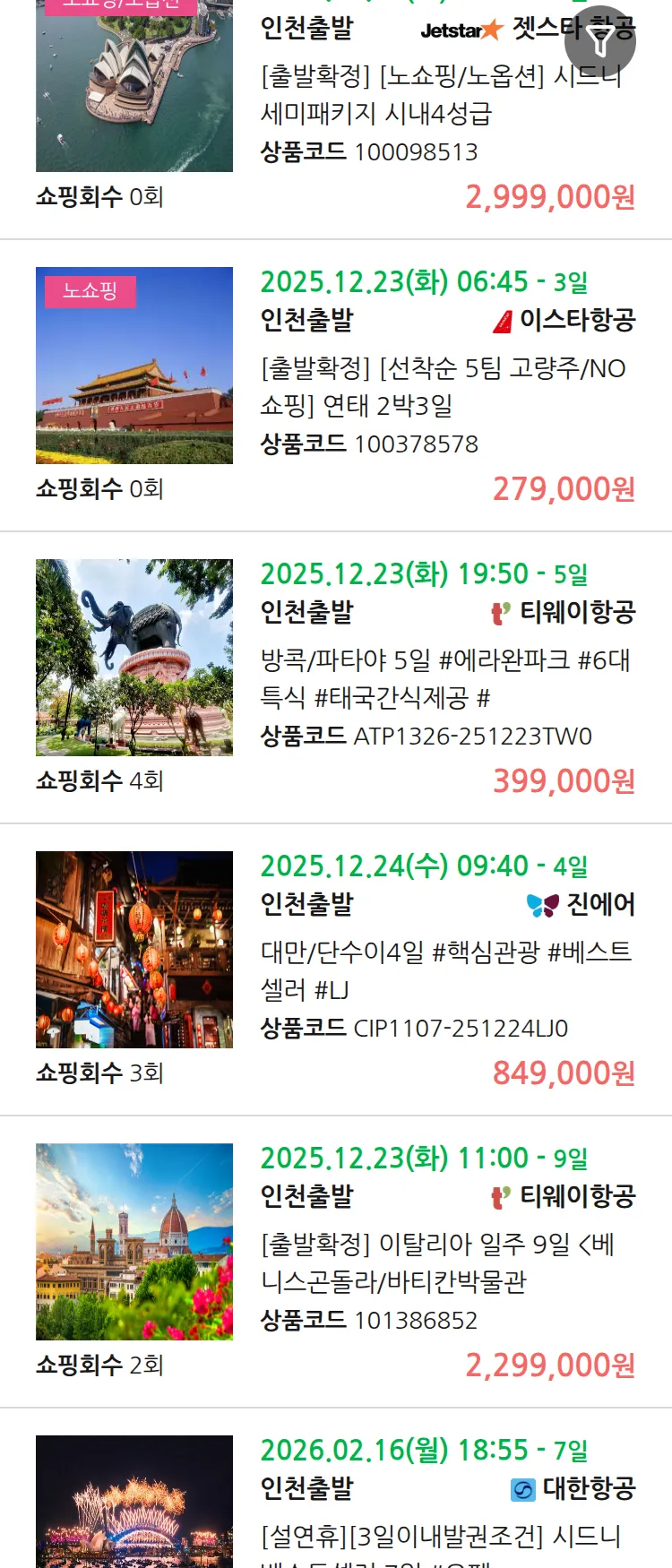 (12월3일(수)) 땡처리 99.9% 확정 패키지
