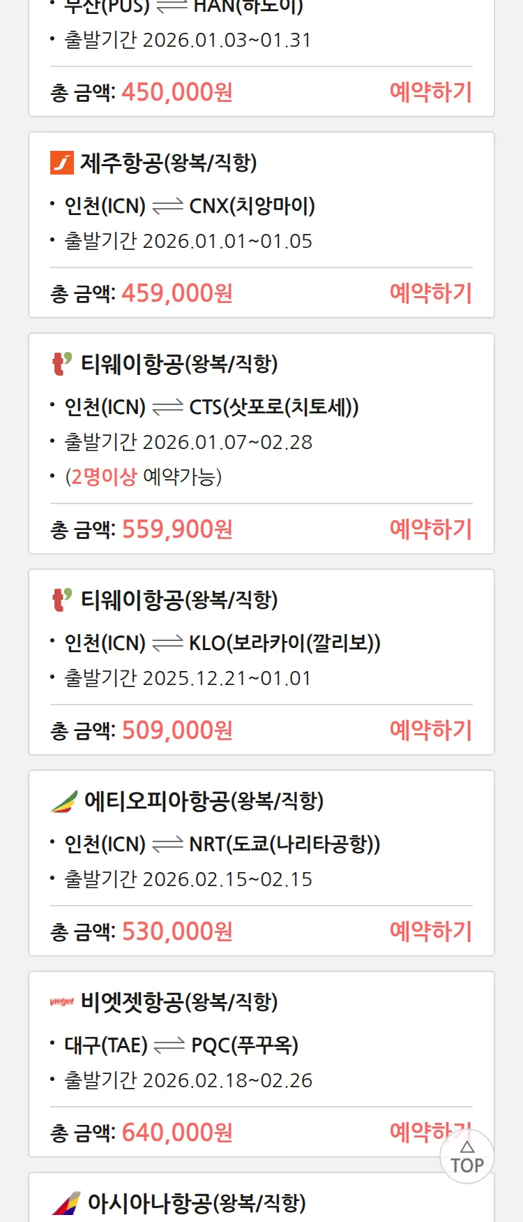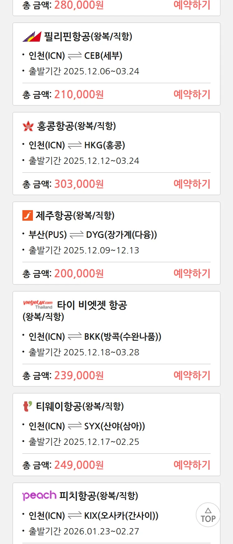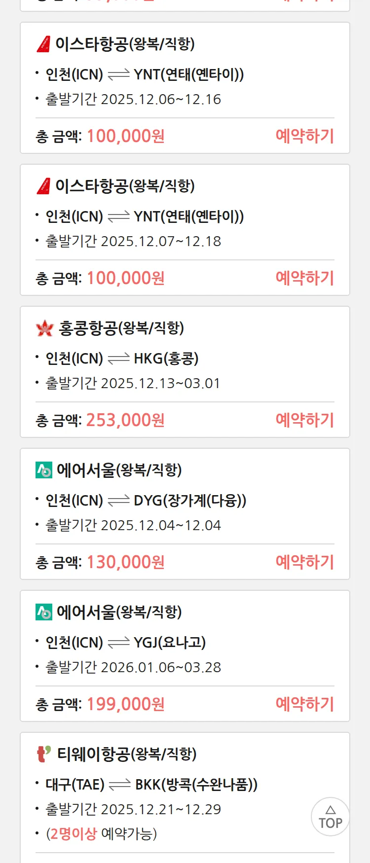 (12월2일(화)) 땡처리 특가 항공권