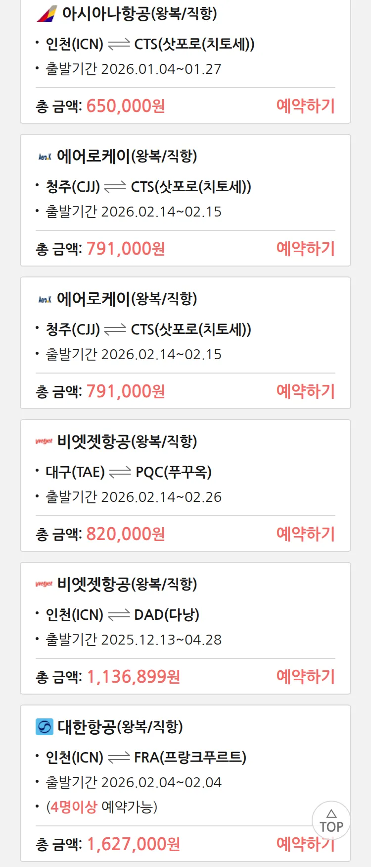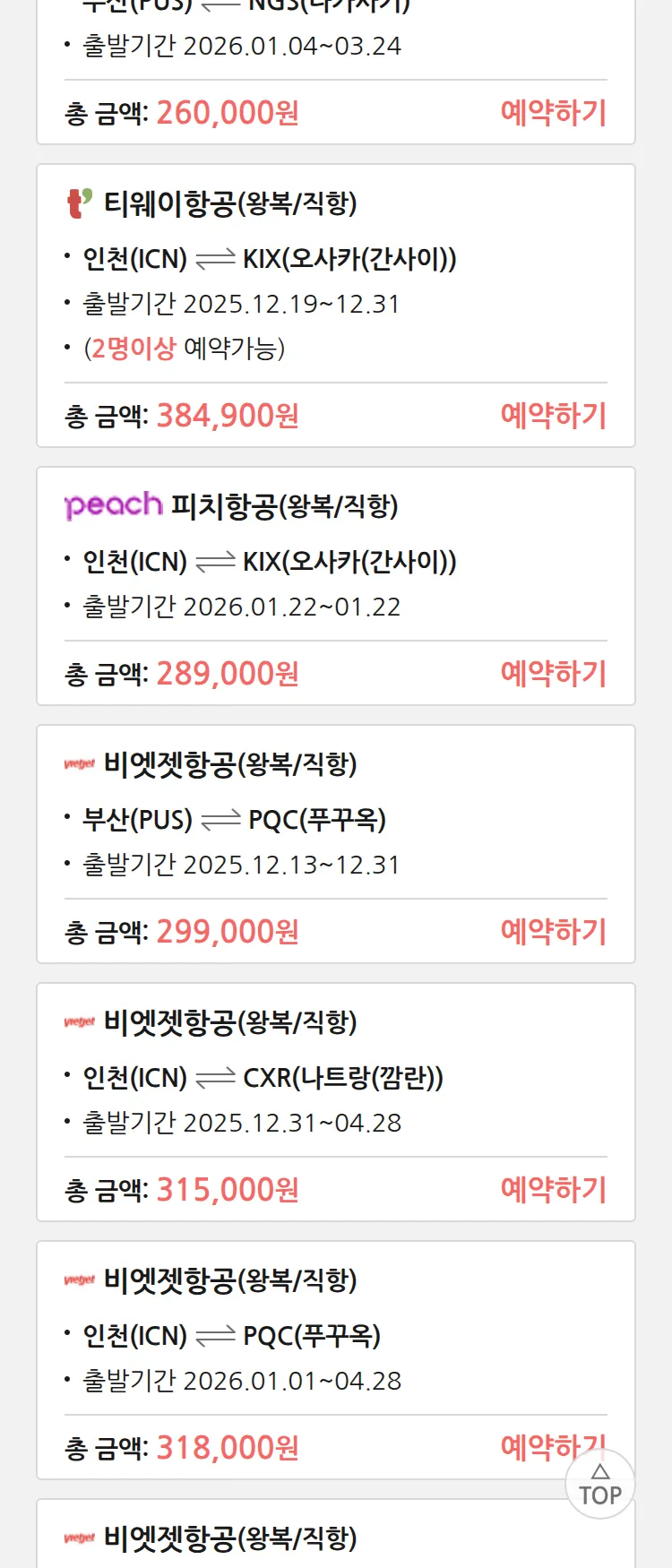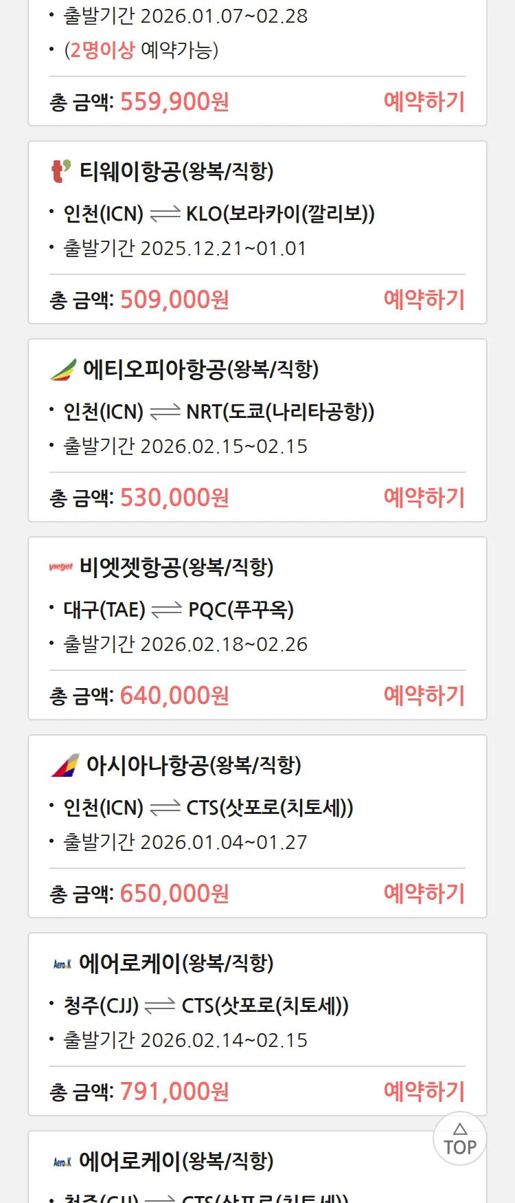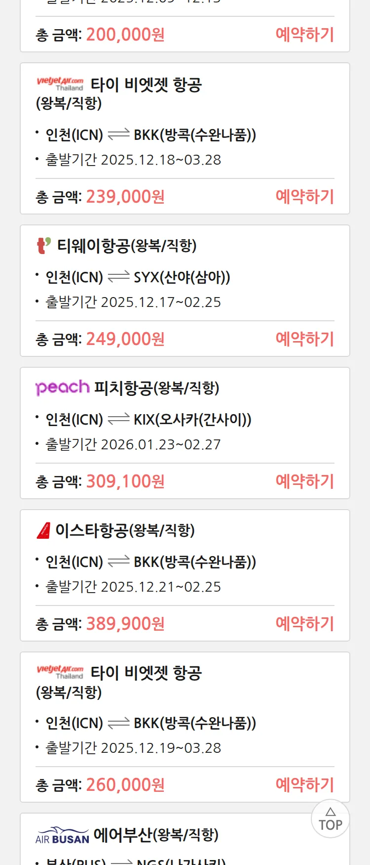 (12월2일(화)) 땡처리 특가 항공권
