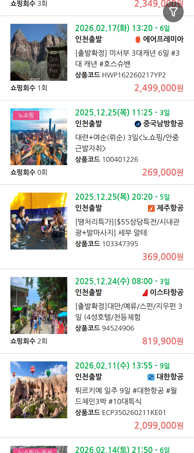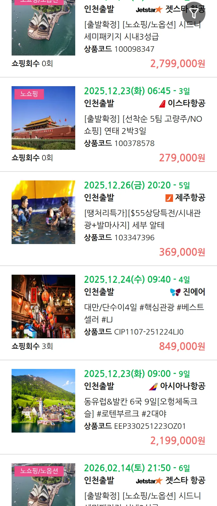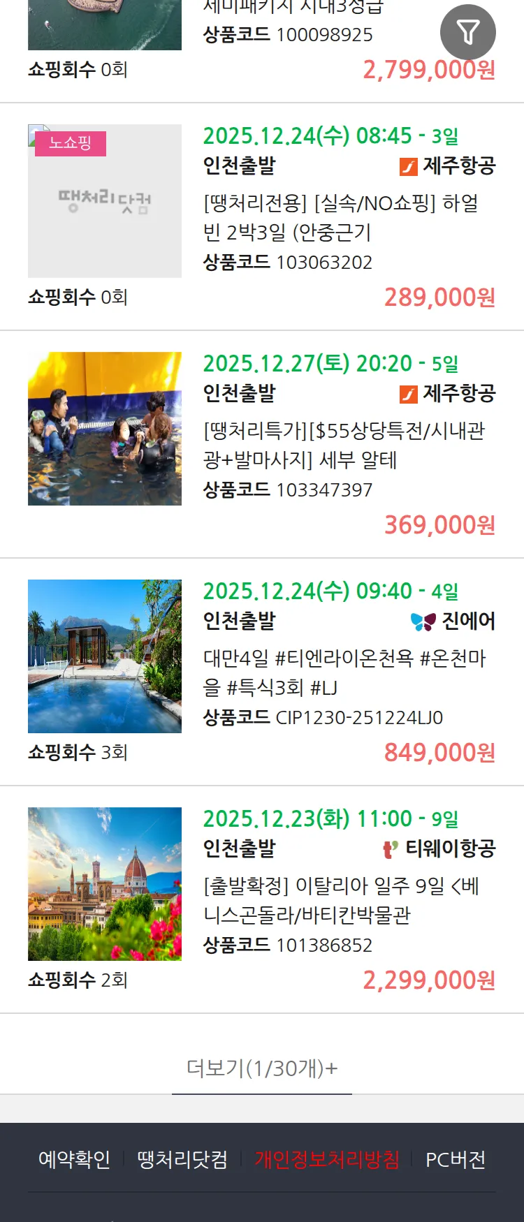 (12월3일(수)) 땡처리 99.9% 확정 패키지