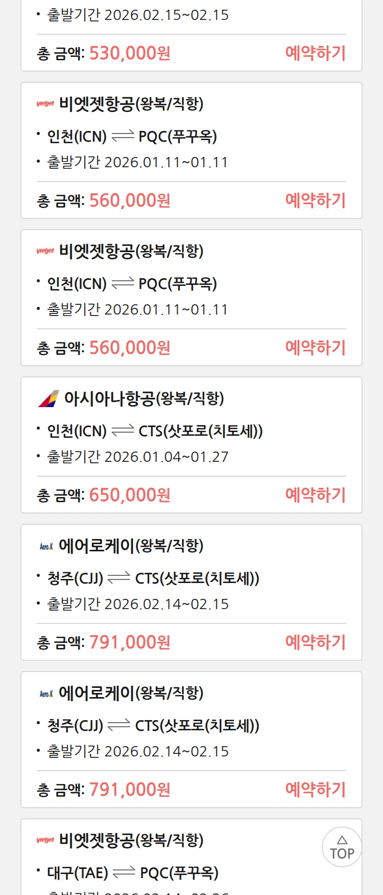 (12월3일(수)) 땡처리 특가 항공권