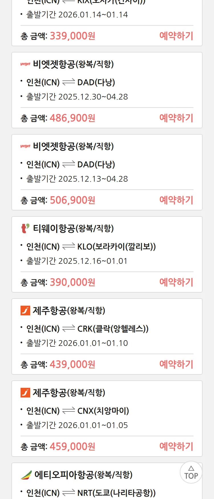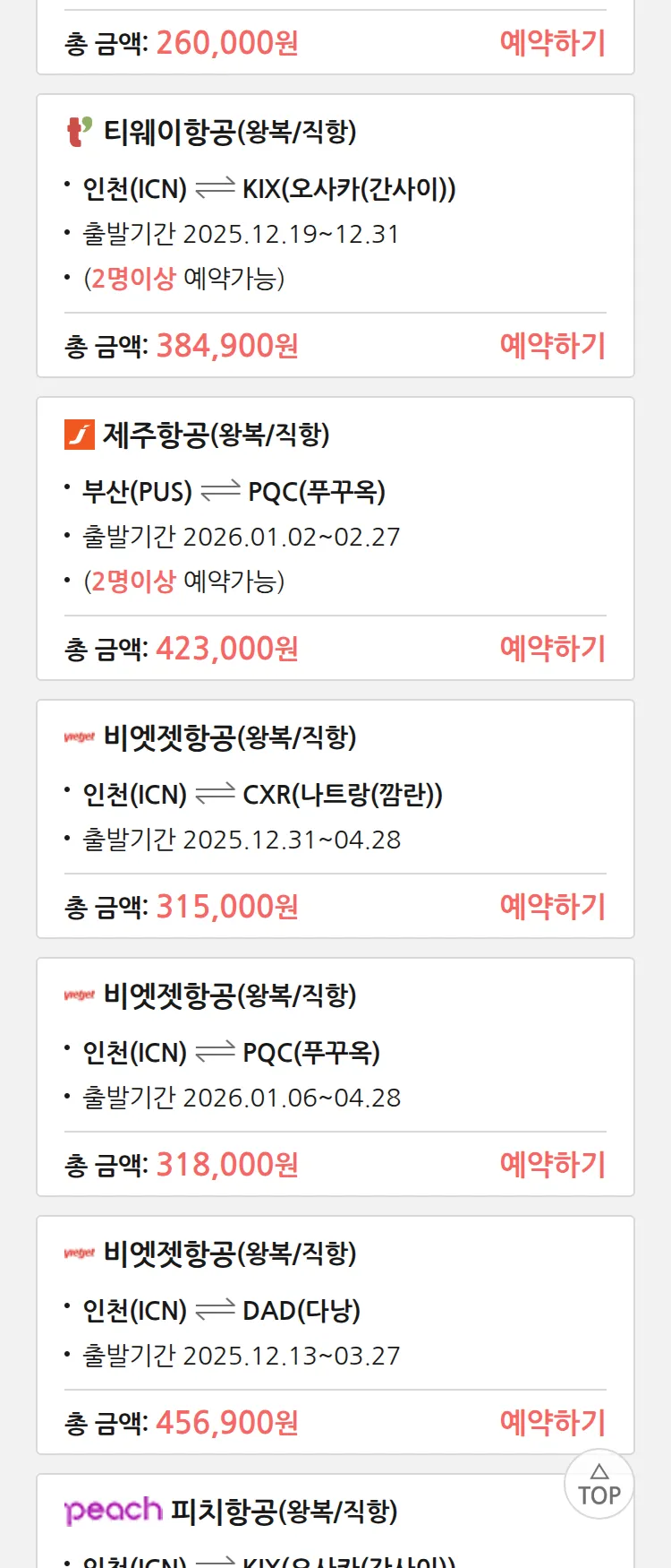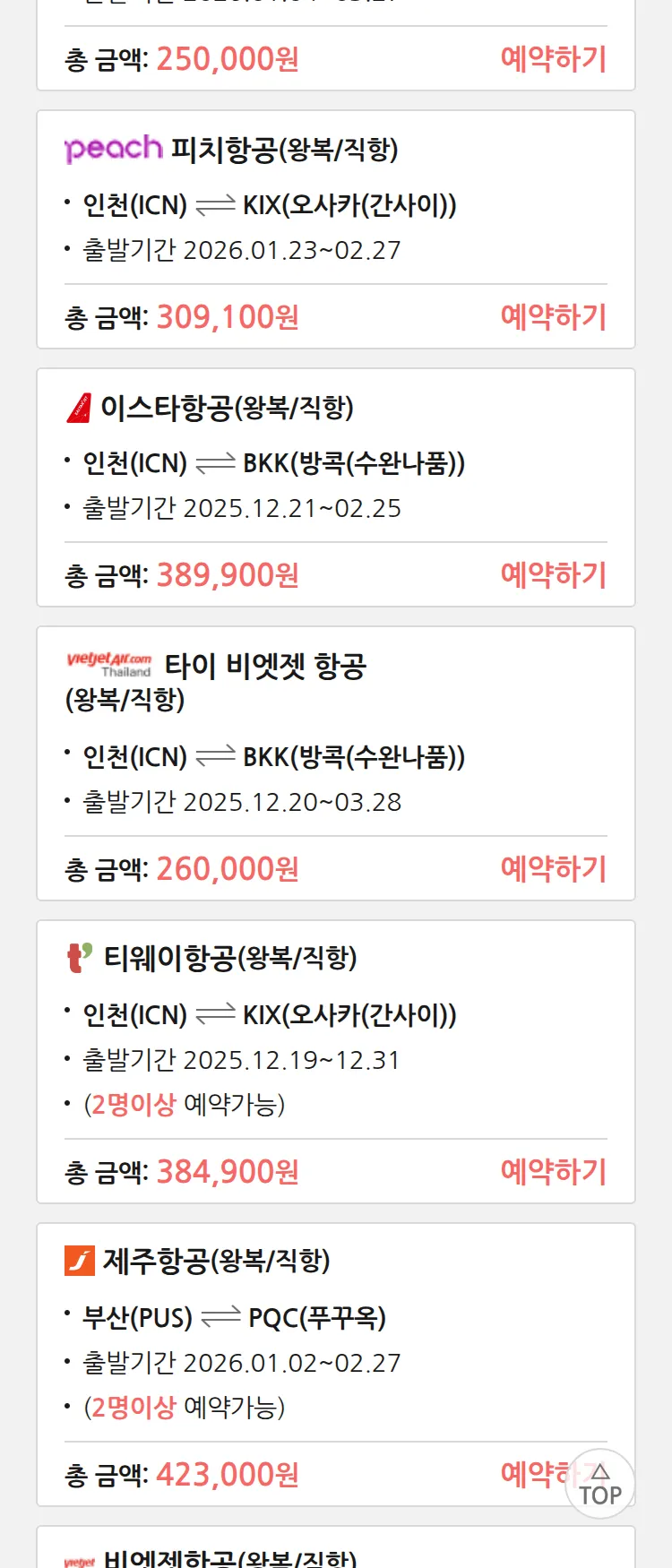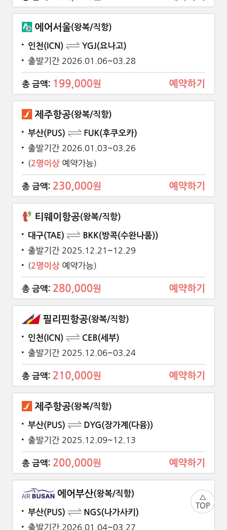 (12월4일(목)) 땡처리 특가 항공권