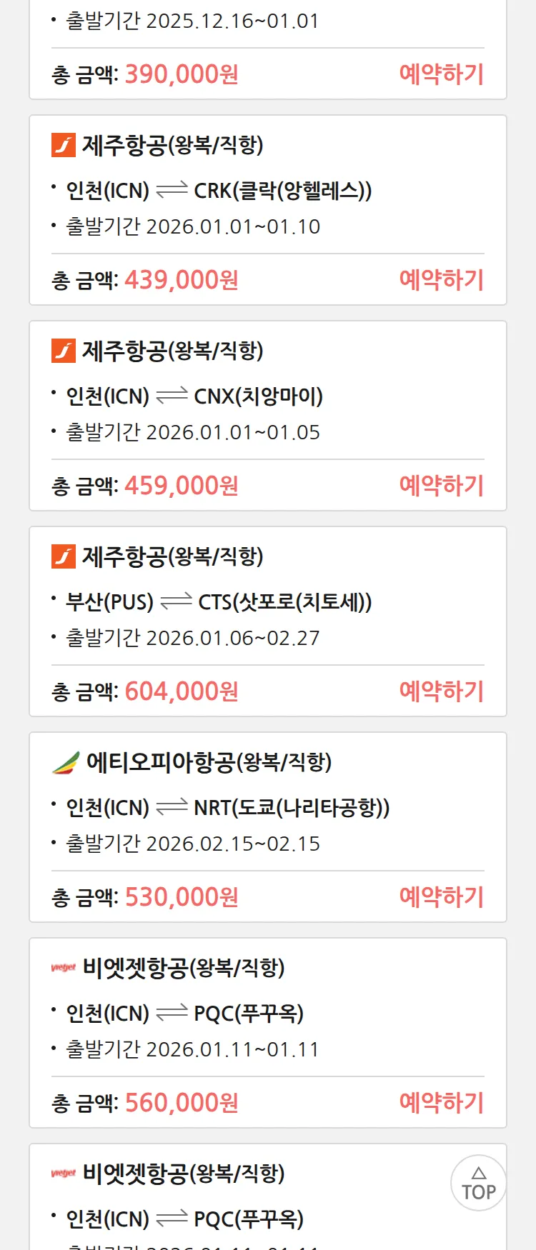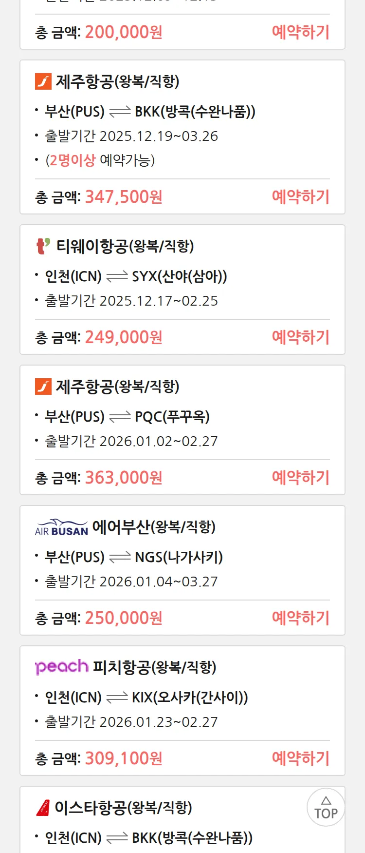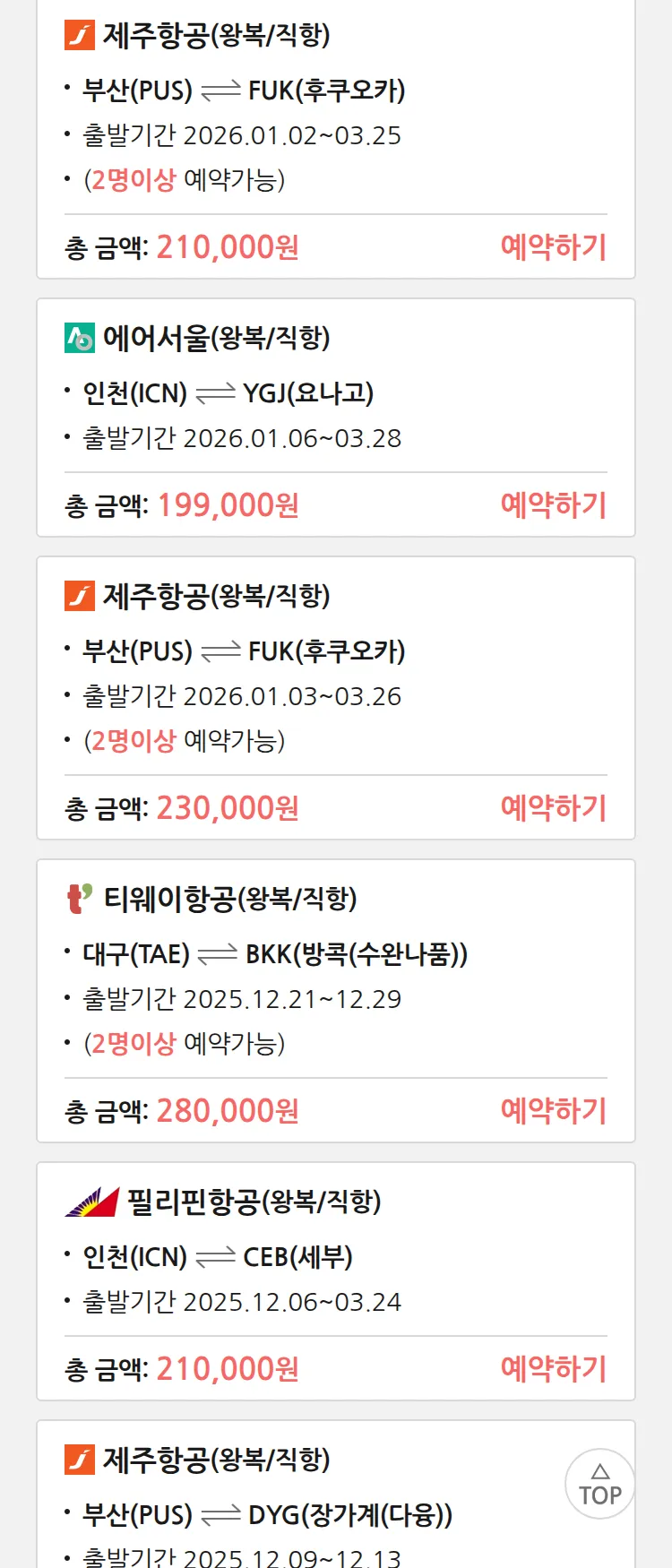 (12월3일(수)) 땡처리 99.9% 확정 패키지