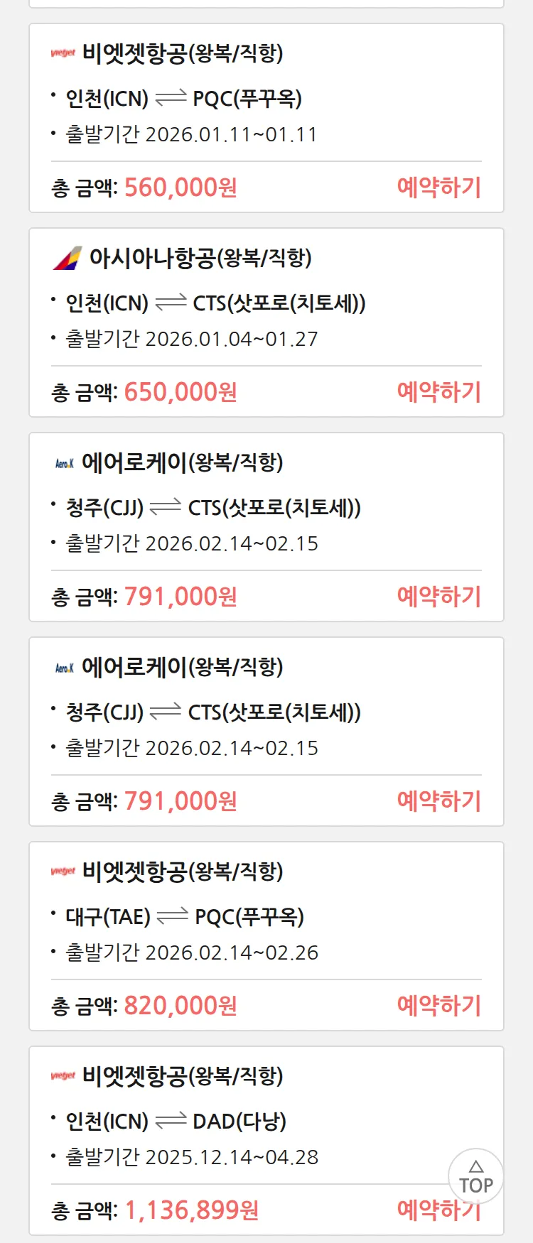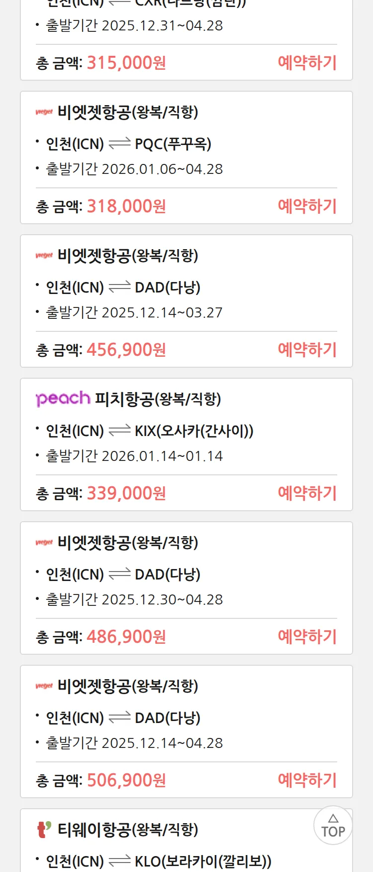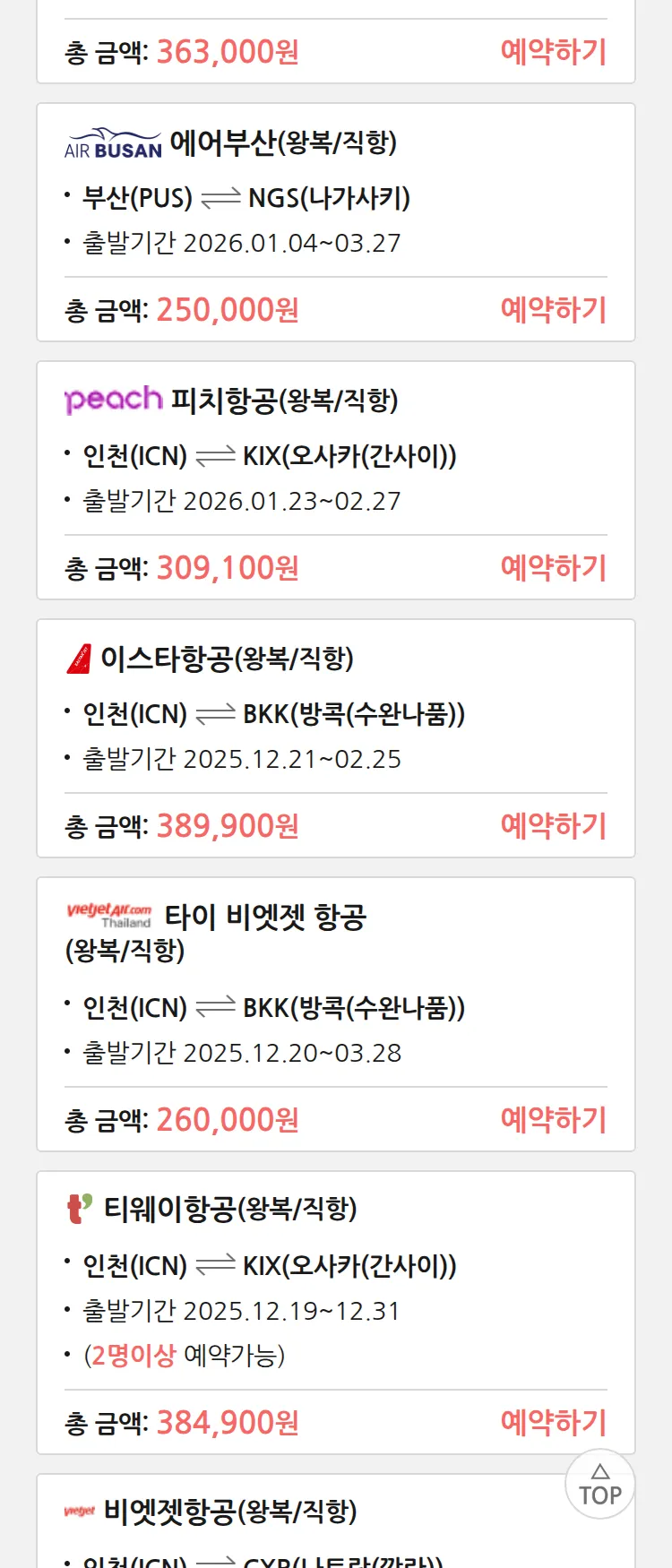 (12월3일(수)) 모두투어 동남아 특가 항공권