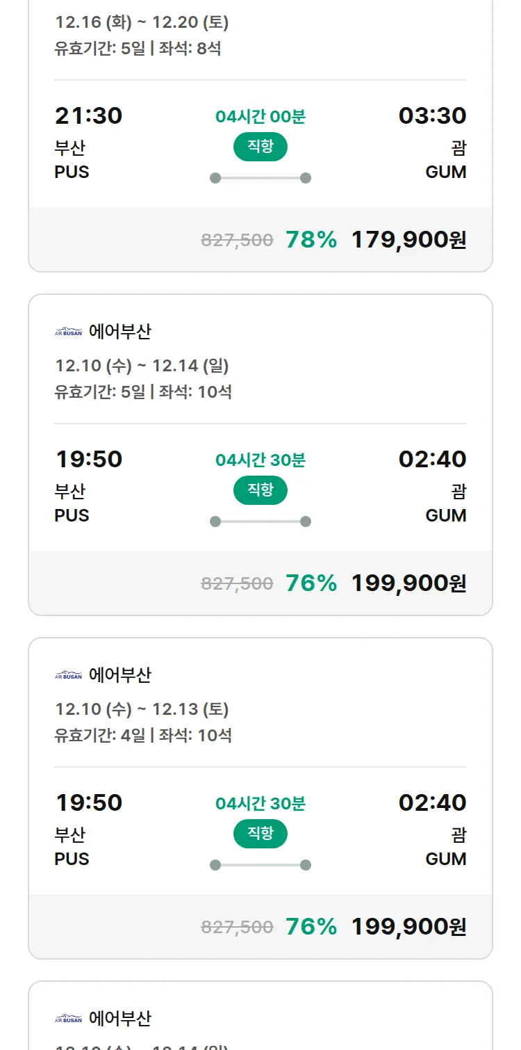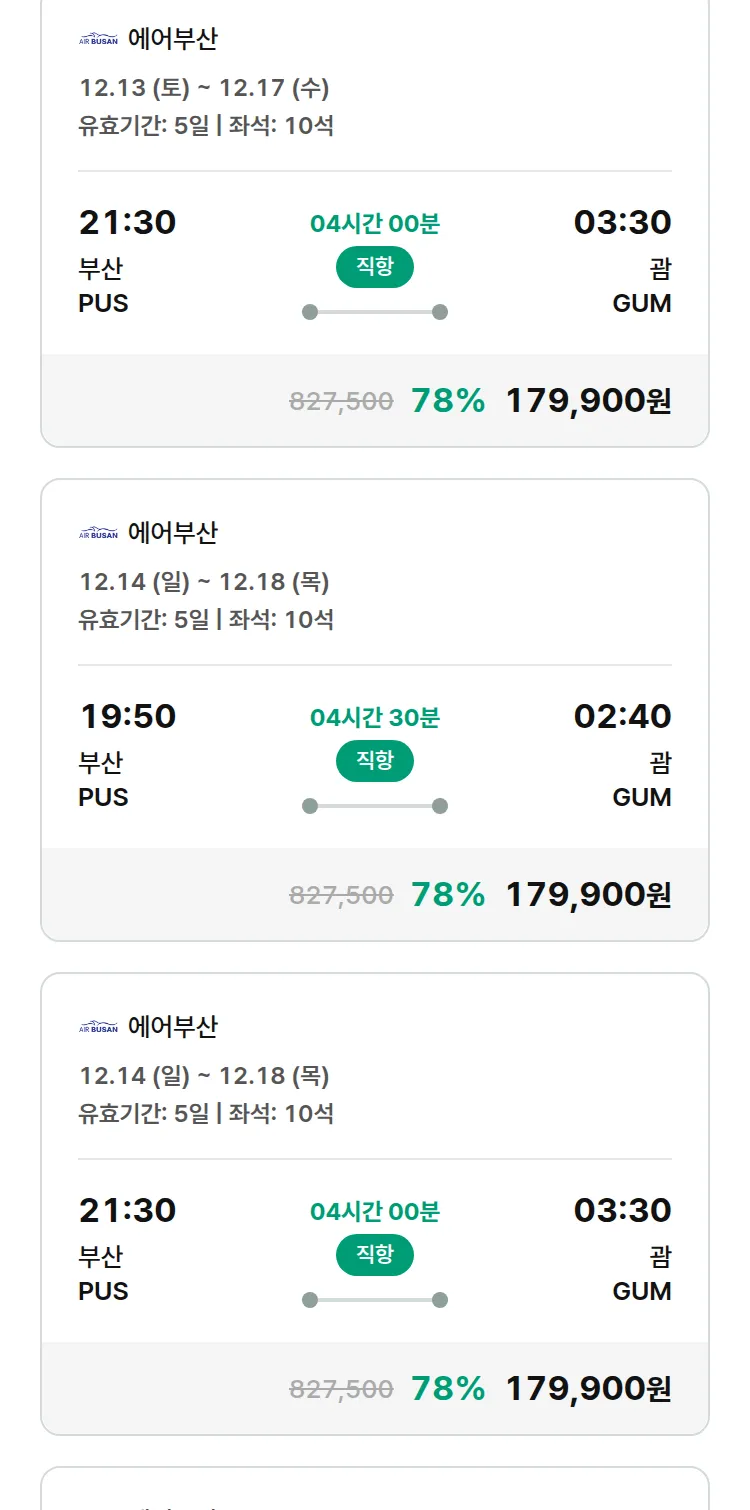 (12월3일(수)) 땡처리 특가 항공권