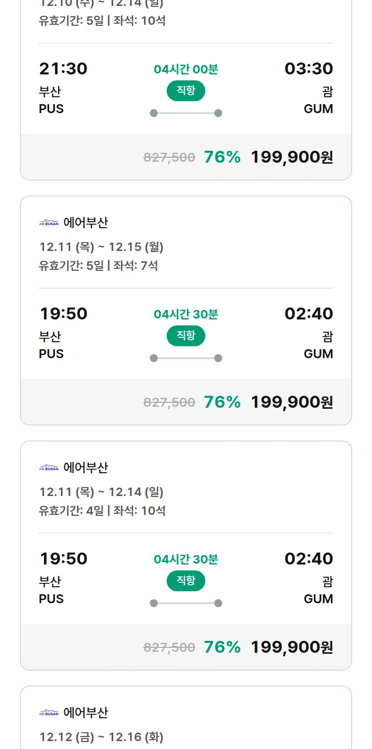 (12월4일(목)) 땡처리 특가 항공권