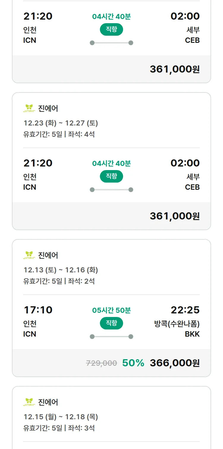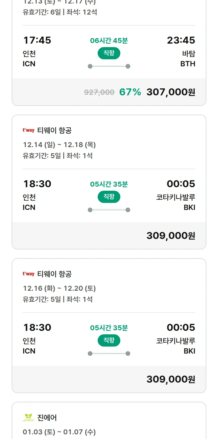(12월3일(수)) 모두투어 동남아 특가 항공권