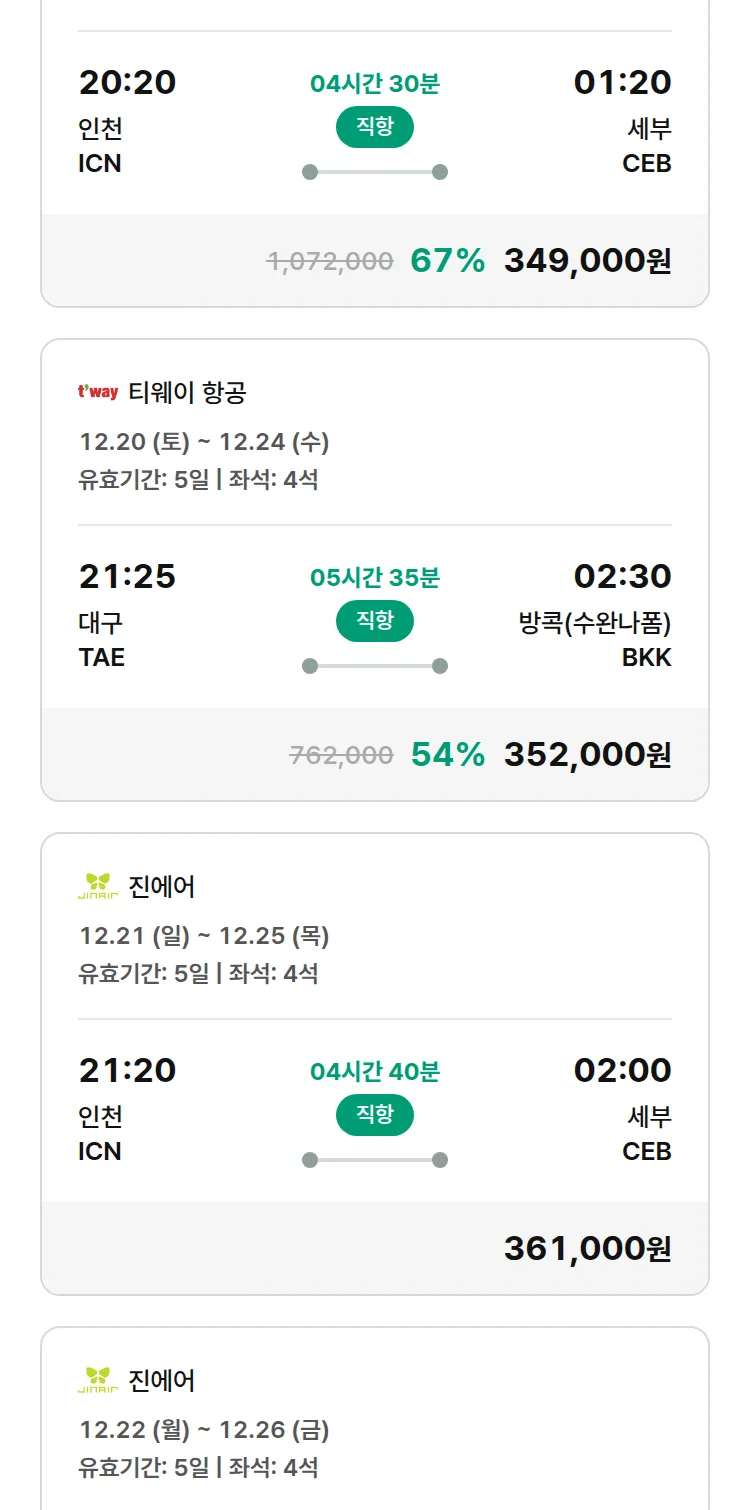 (12월4일(목)) 모두투어 동남아 특가 항공권