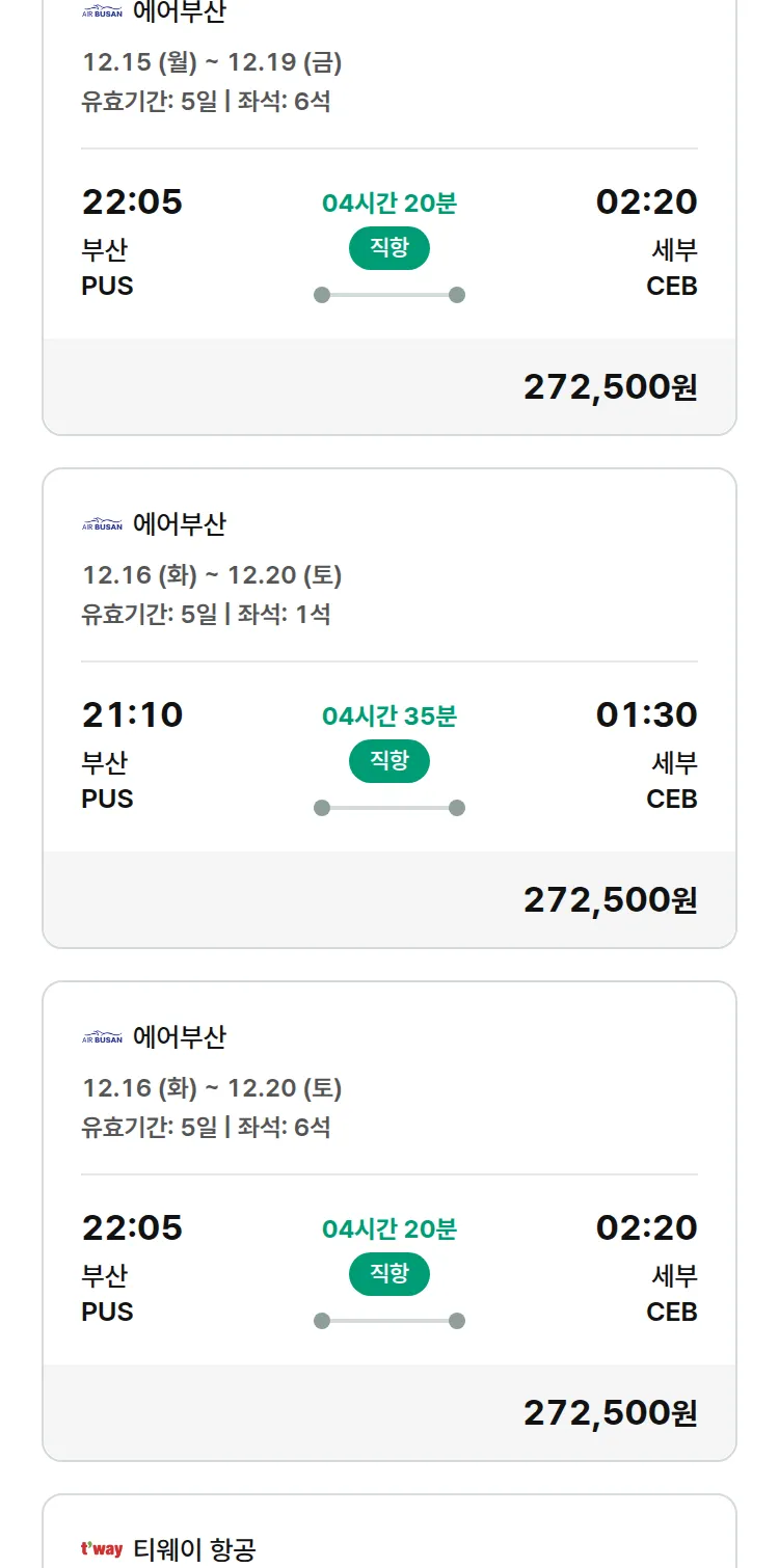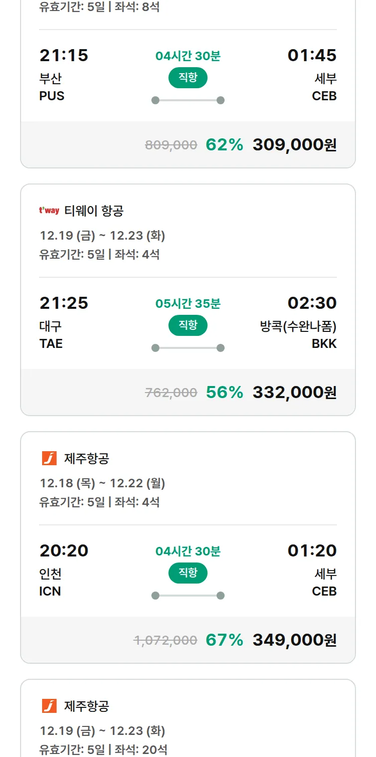 (12월3일(수)) 땡처리 99.9% 확정 패키지