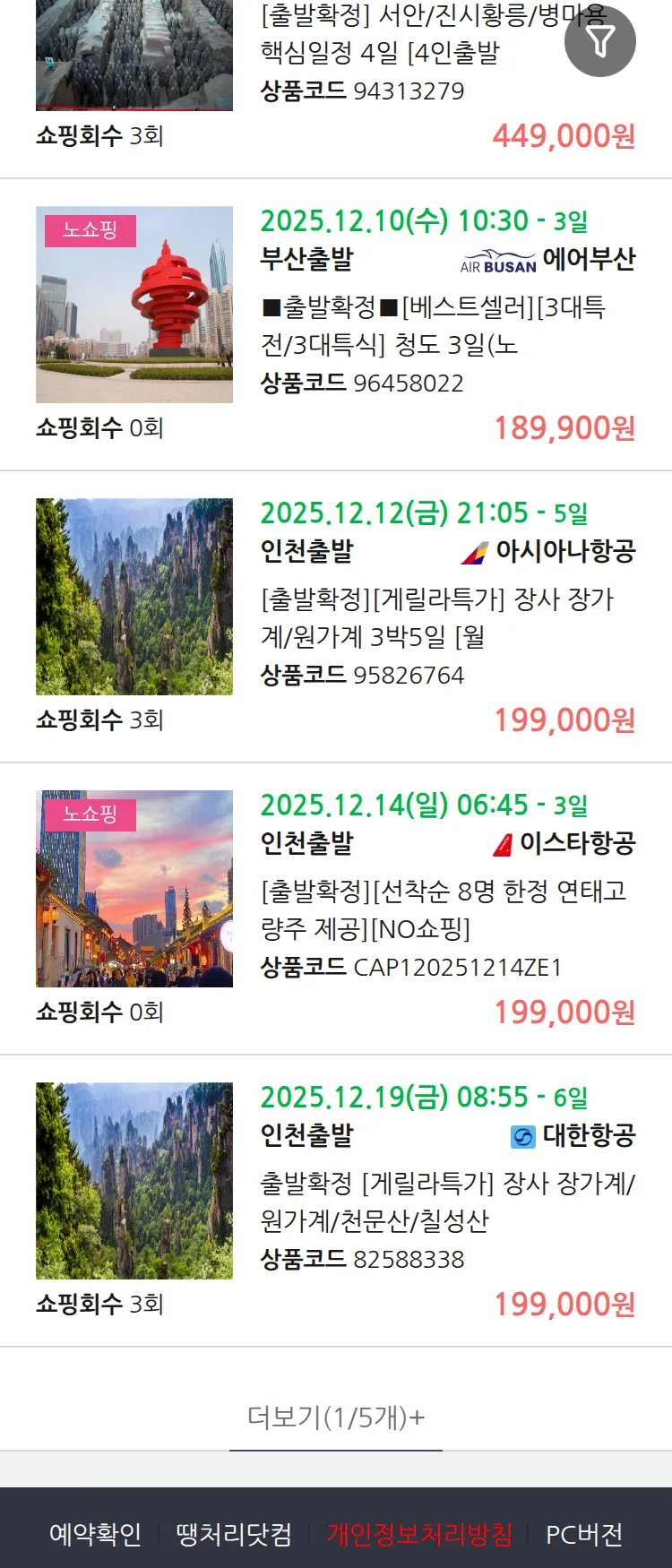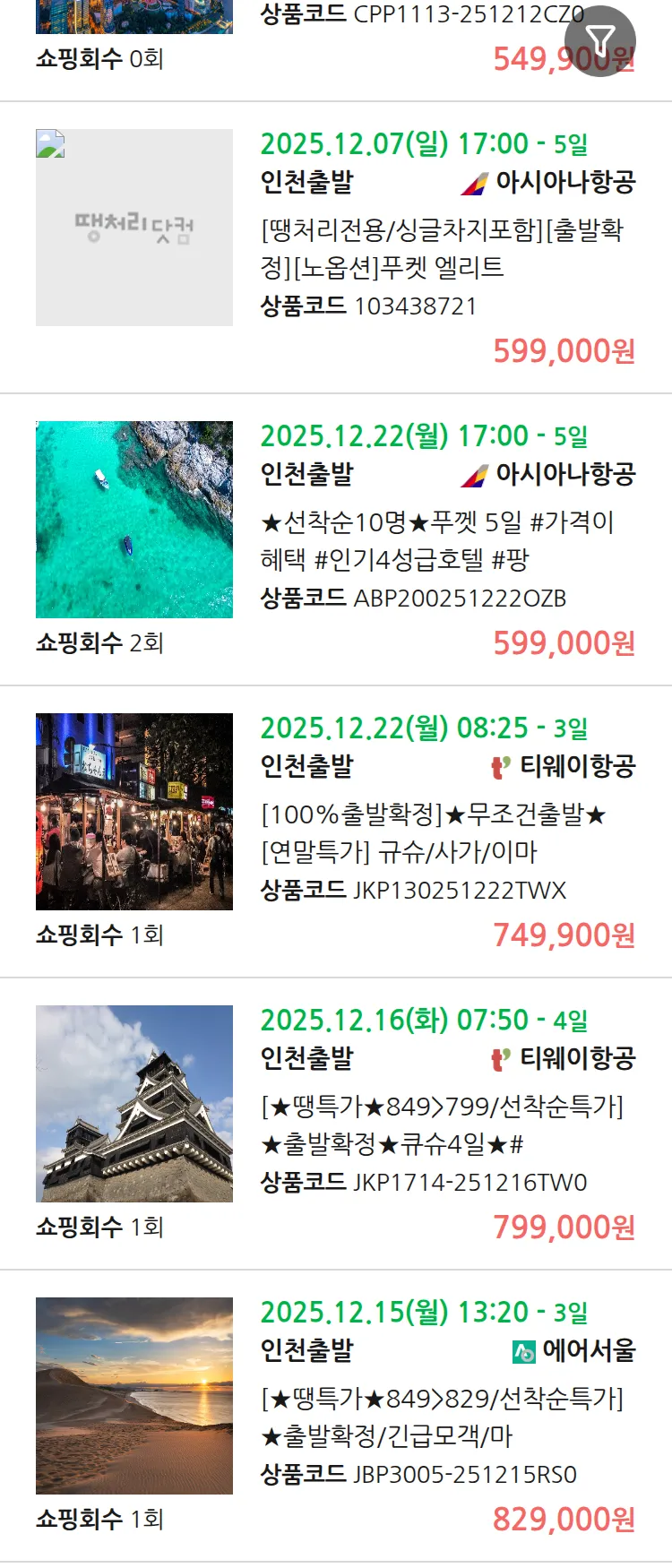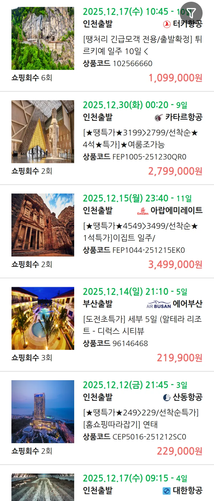 (12월3일(수)) 땡처리 99.9% 확정 패키지