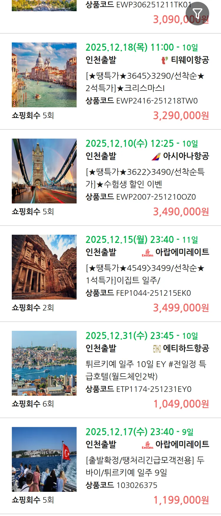(12월5일(금)) 땡처리 유럽 긴급 패키지