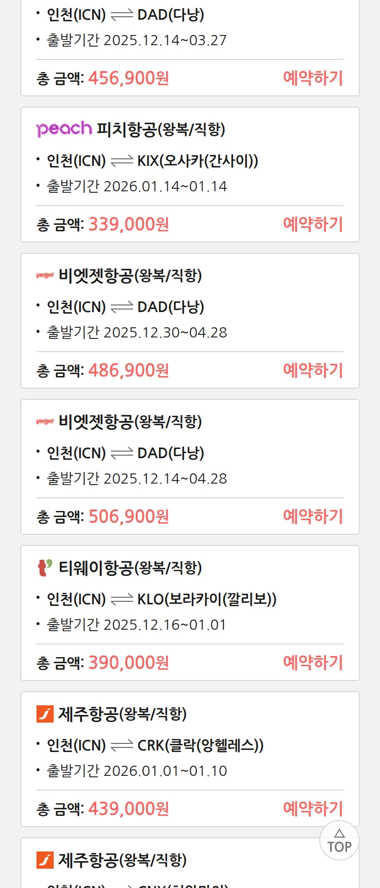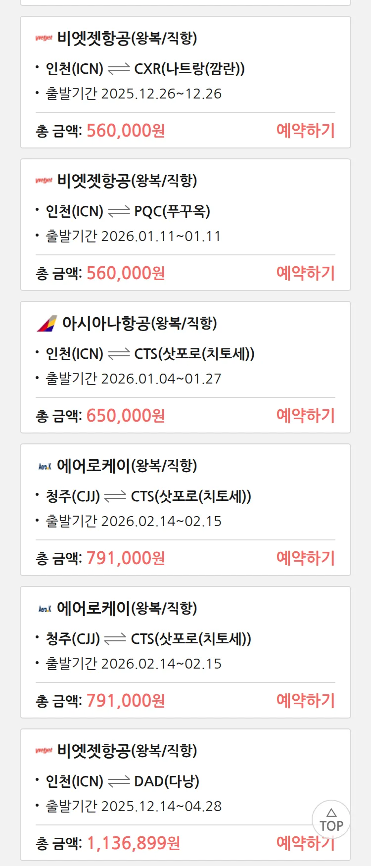(12월3일(수)) 모두투어 동남아 특가 항공권