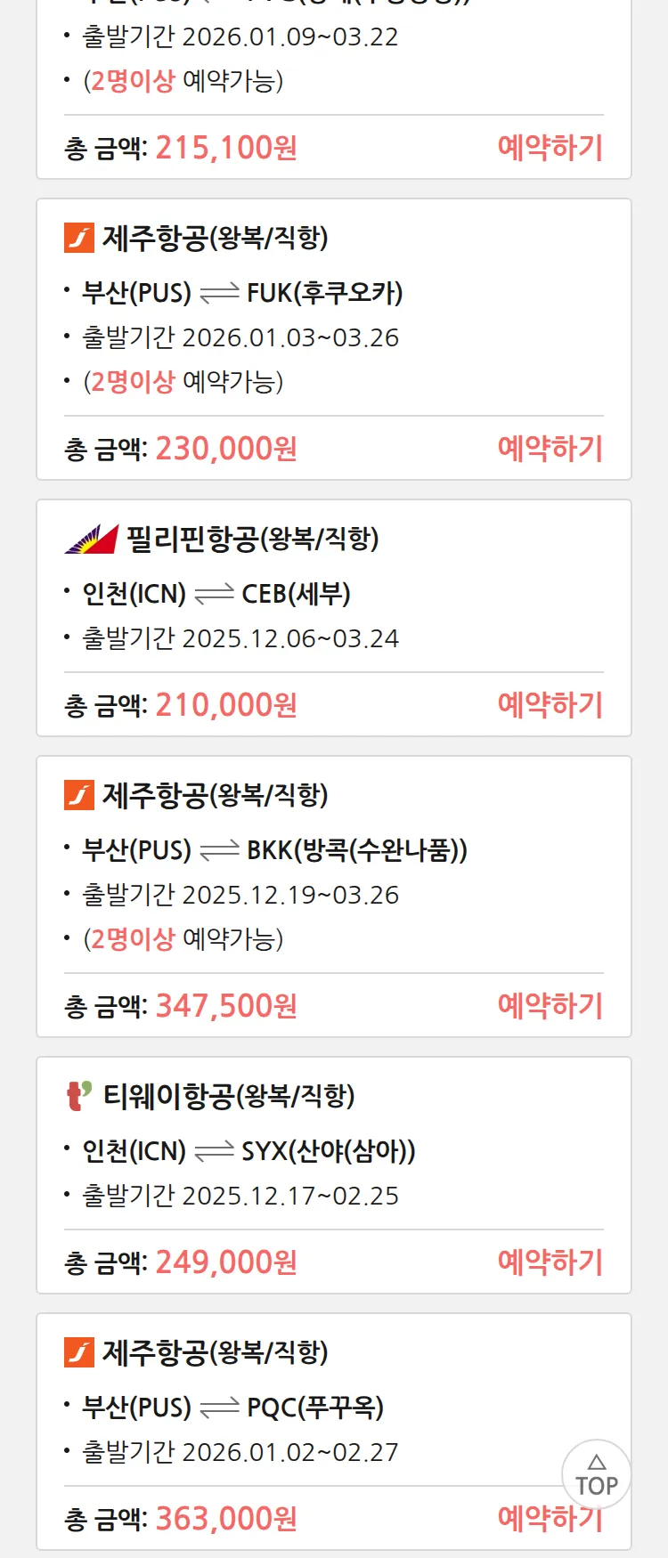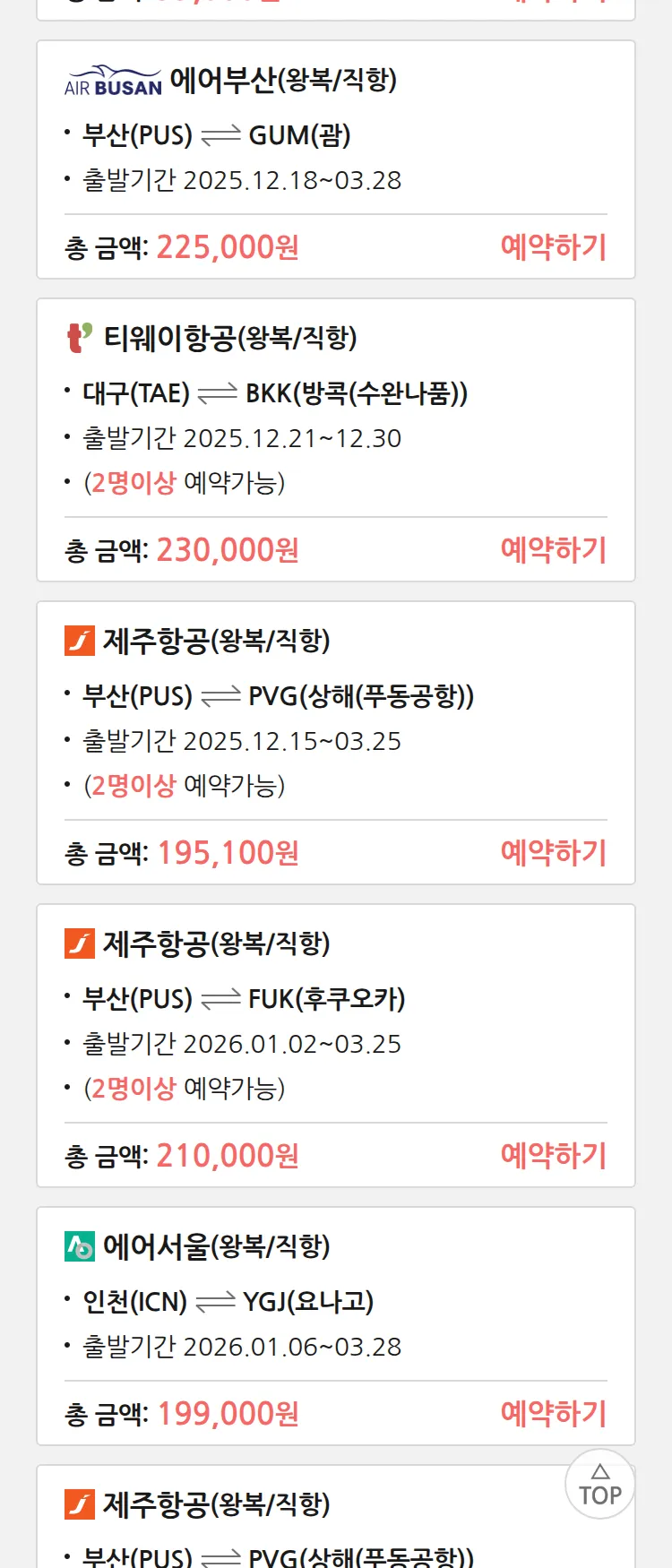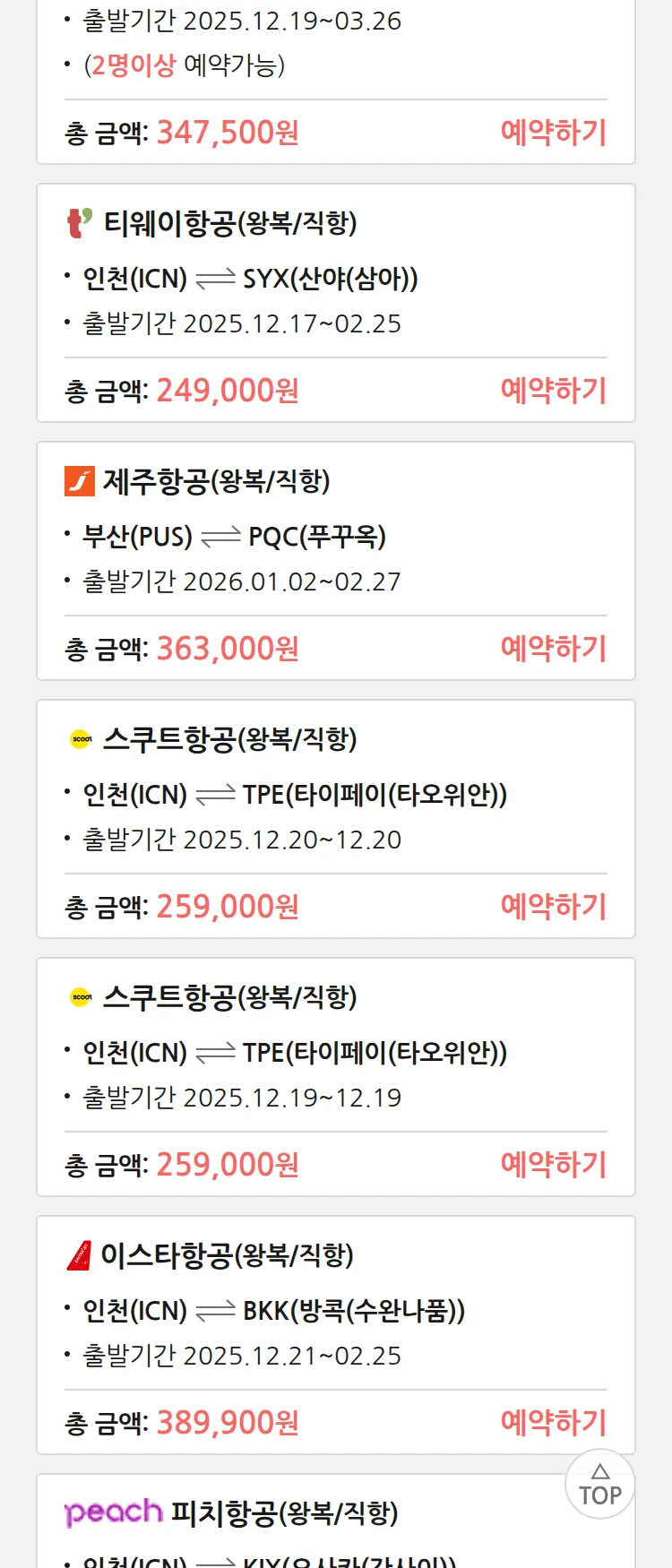 (12월3일(수)) 땡처리 99.9% 확정 패키지
