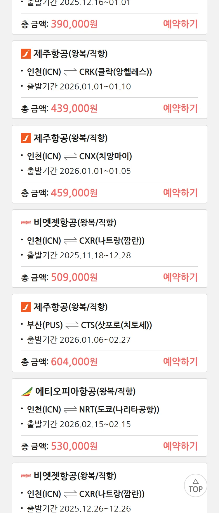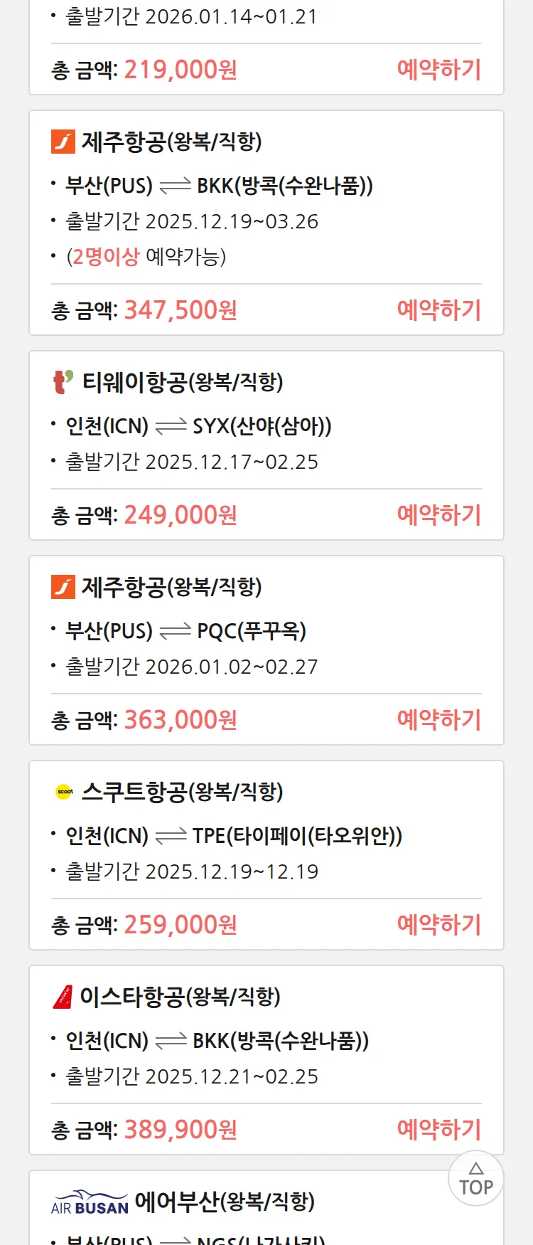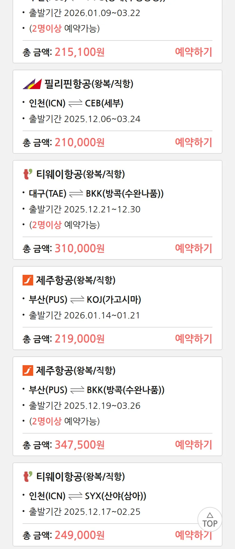 (12월4일(목)) 땡처리 특가 항공권