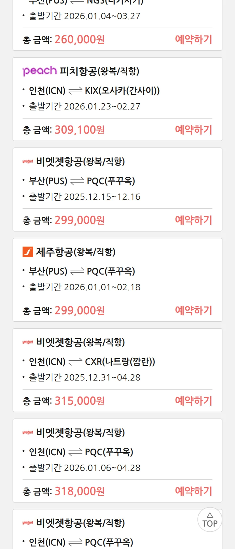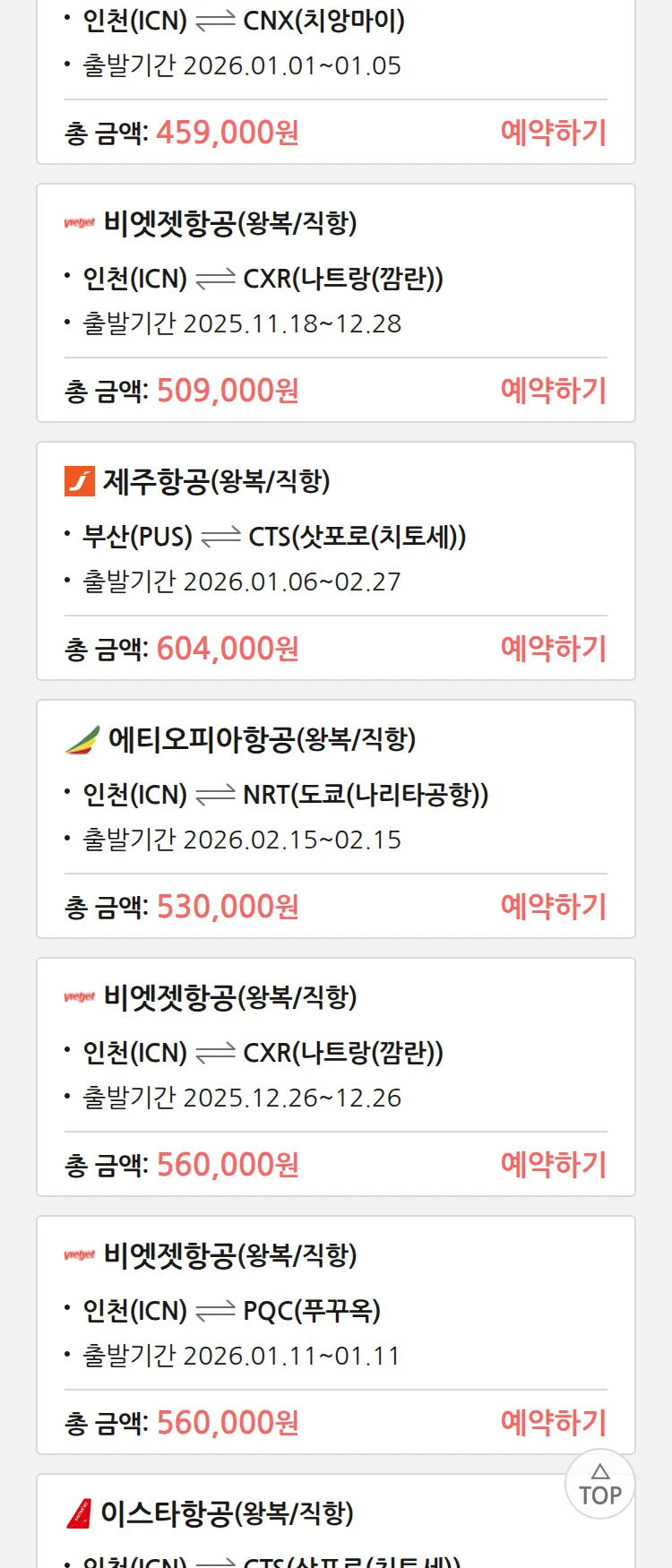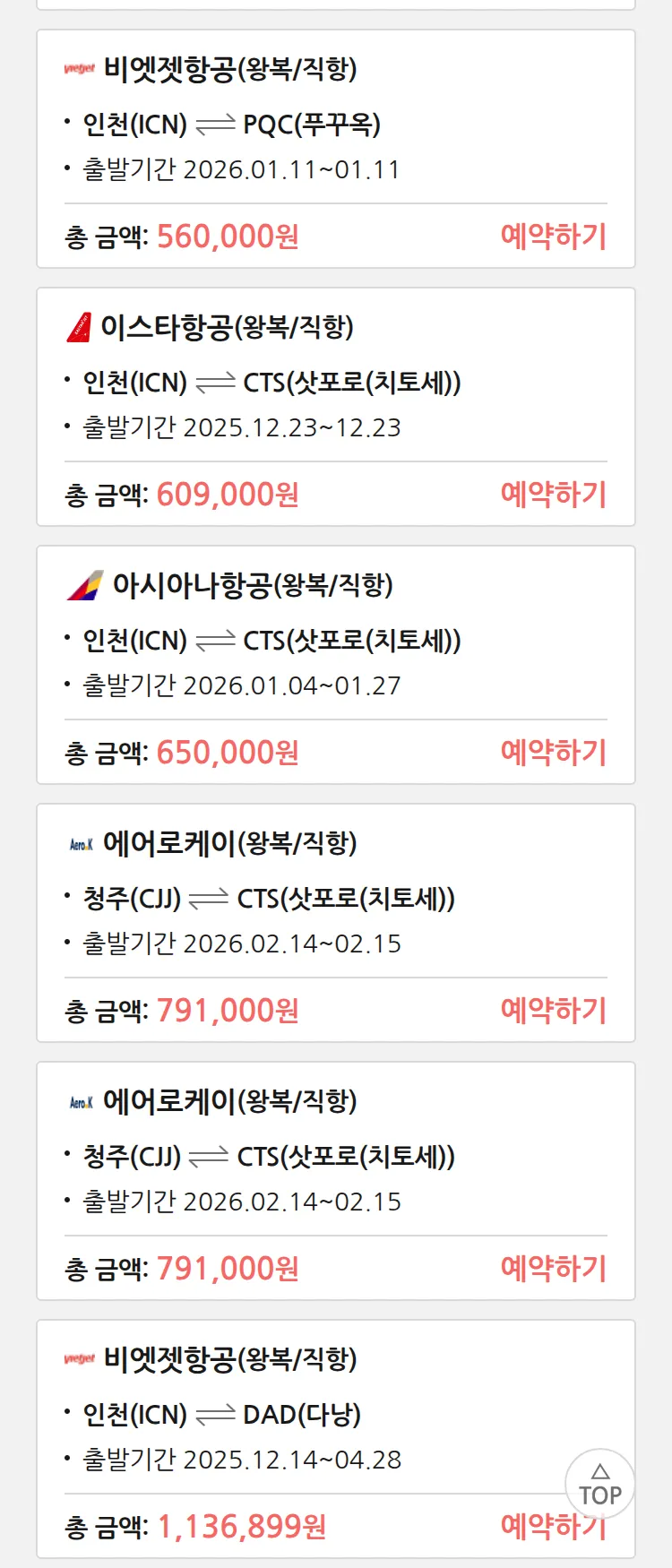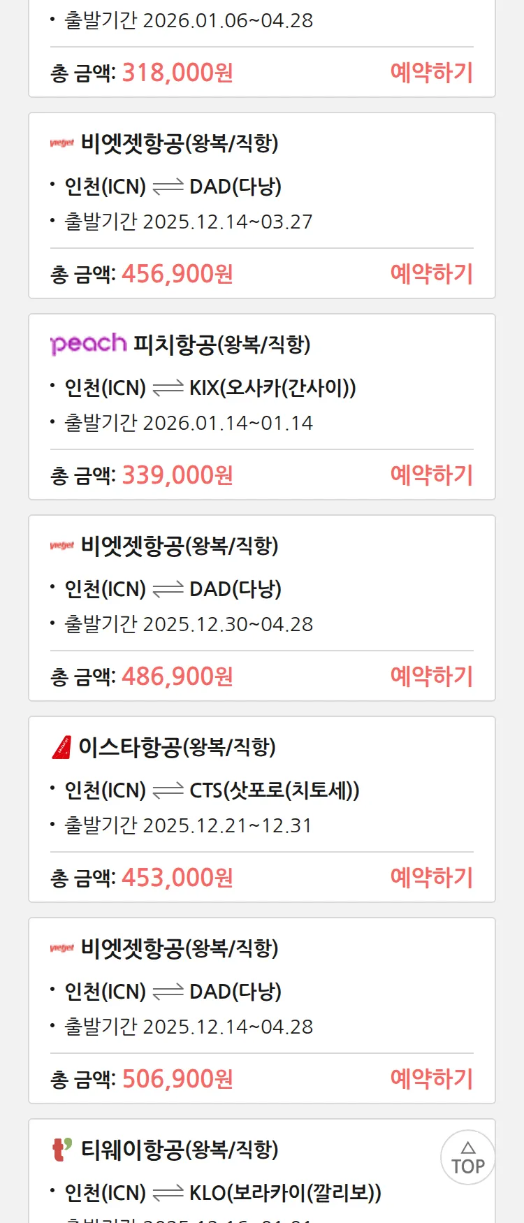 (12월4일(목)) 땡처리 특가 항공권