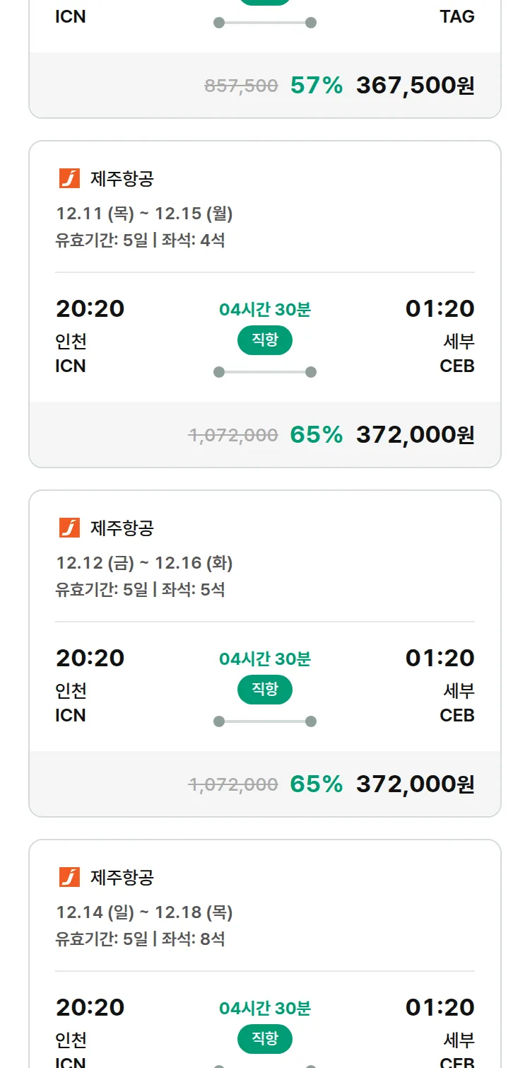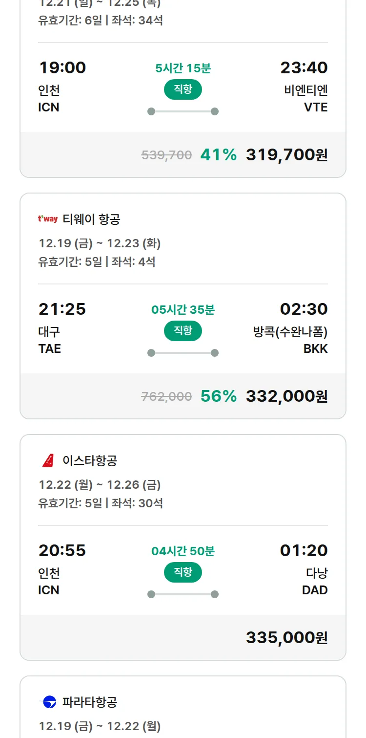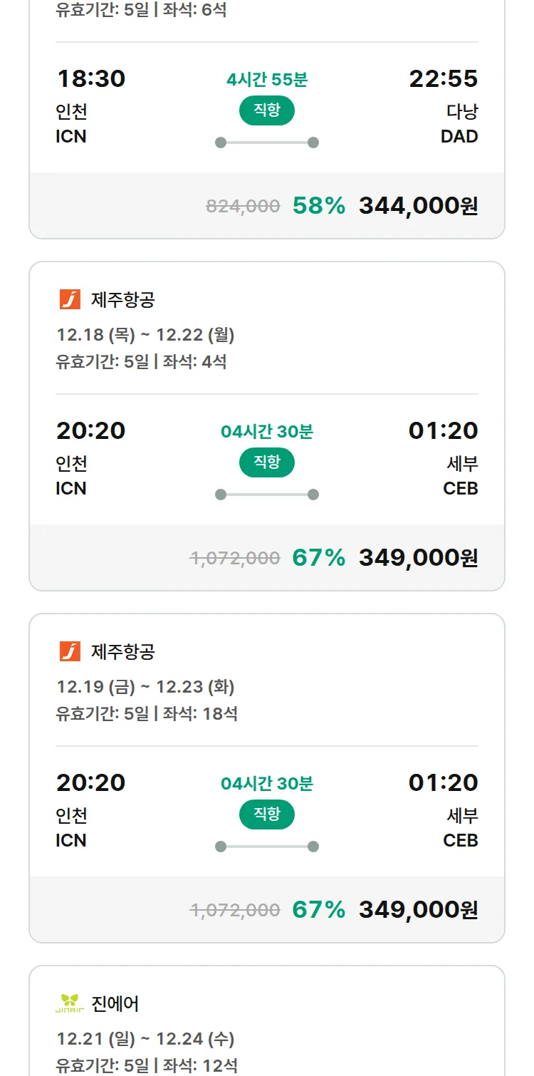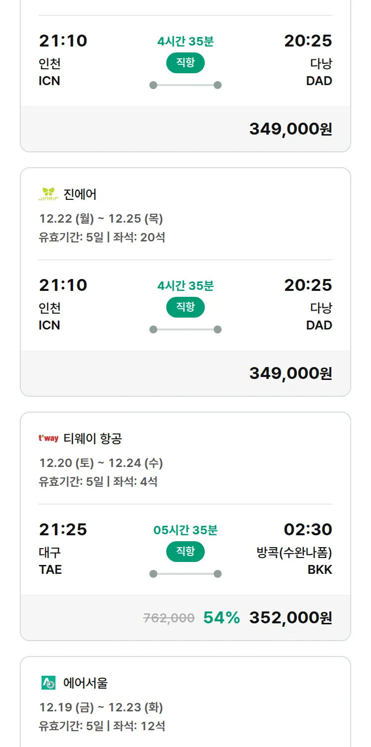 (12월4일(목)) 땡처리 특가 항공권