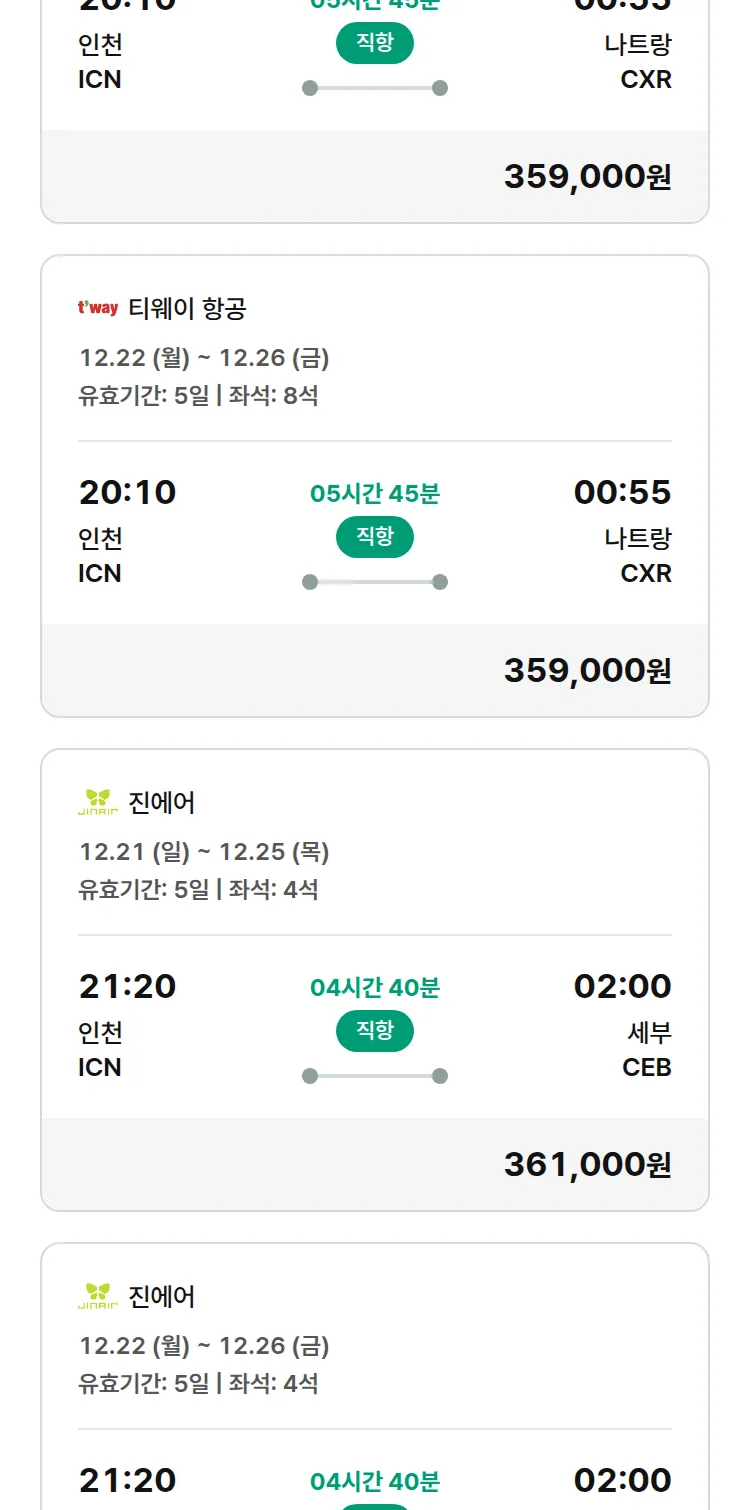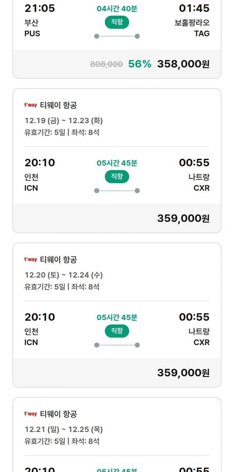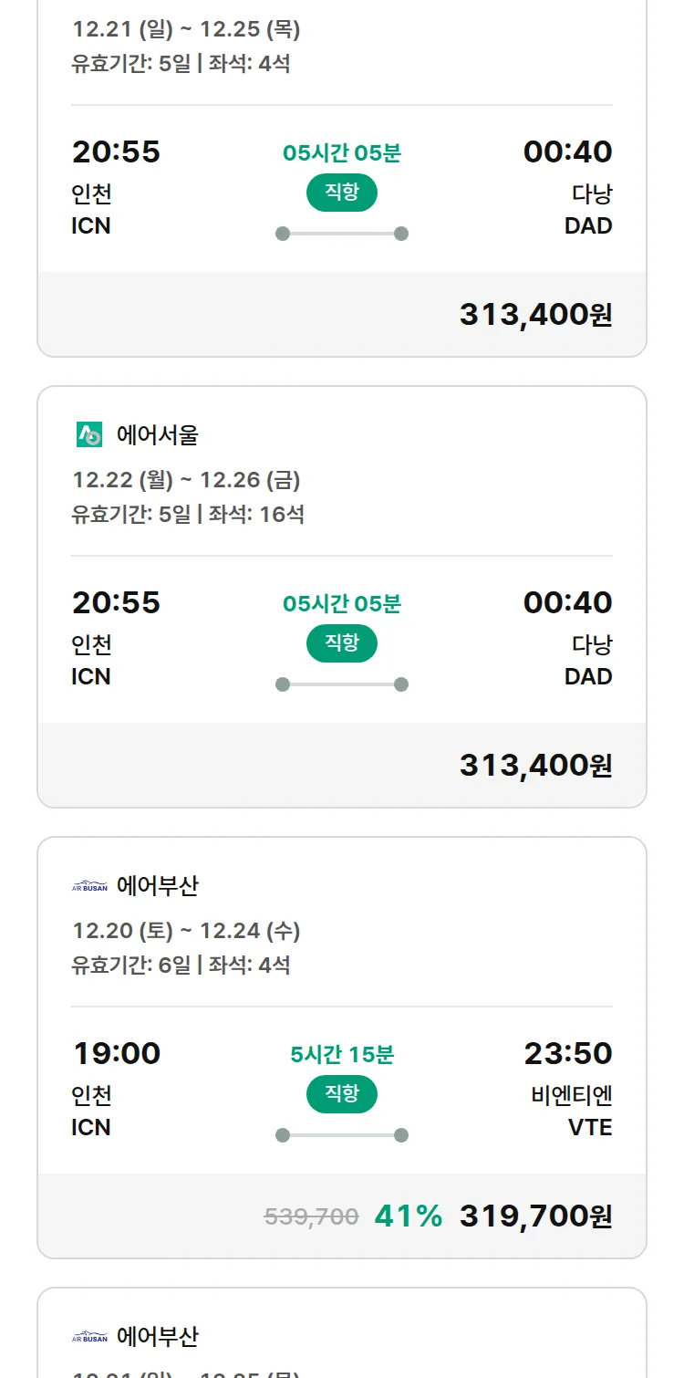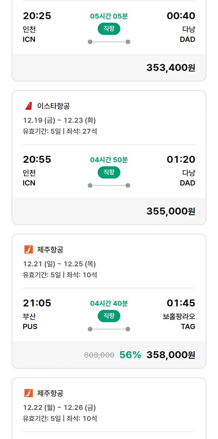 (12월4일(목)) 땡처리 특가 항공권
