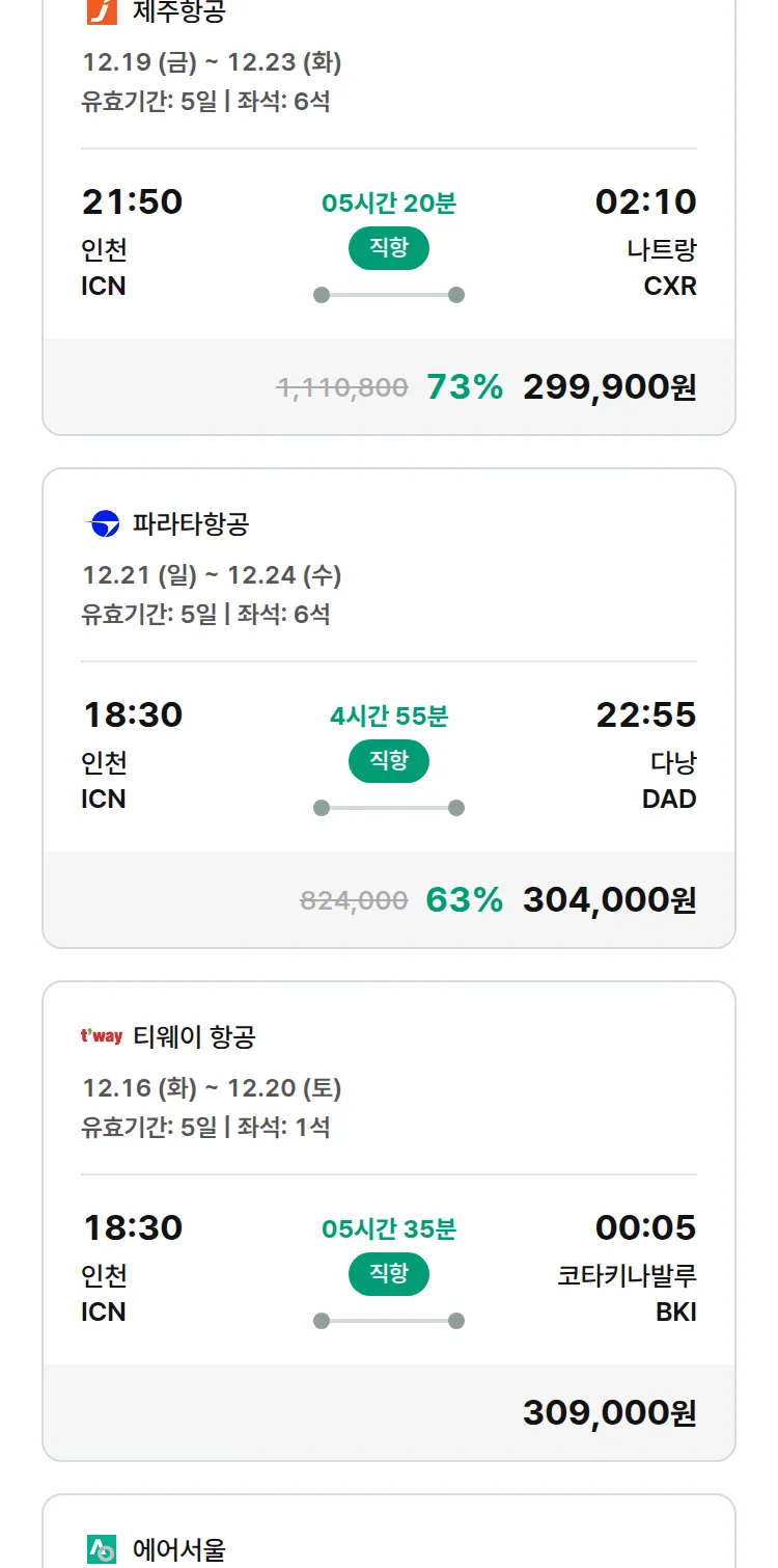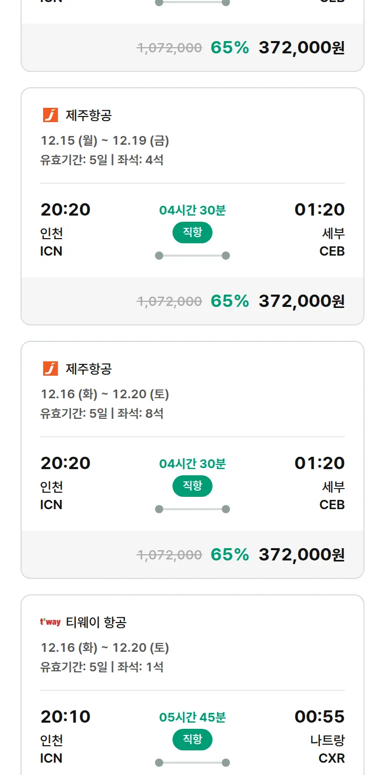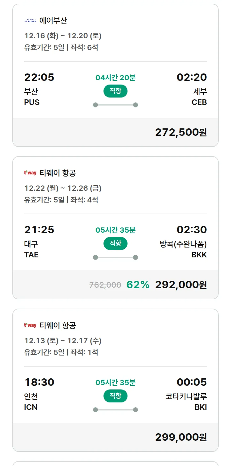(12월3일(수)) 땡처리 특가 항공권