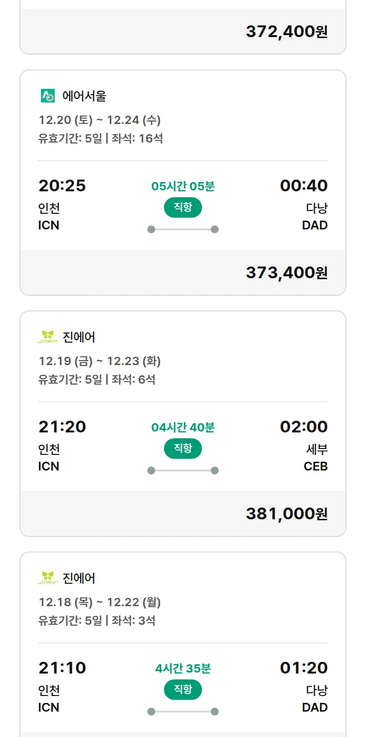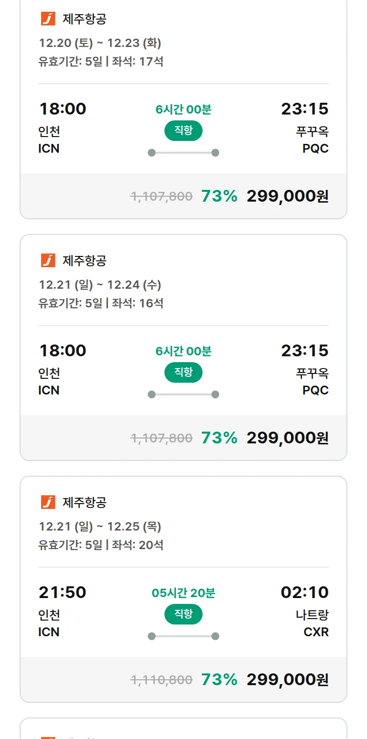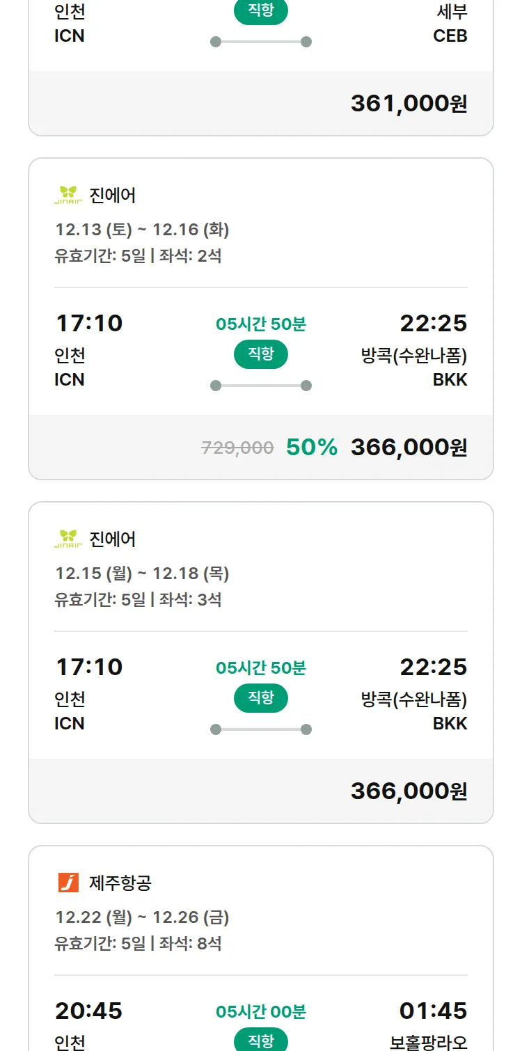 (12월3일(수)) 땡처리 특가 항공권