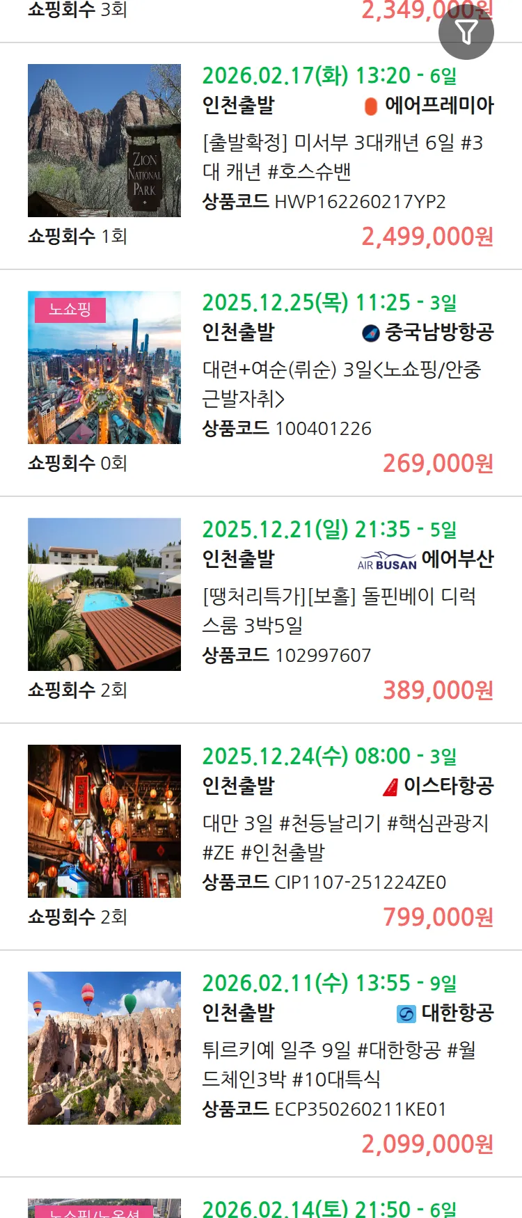 (12월 13일(토)) 땡처리 연휴 패키지 패키지