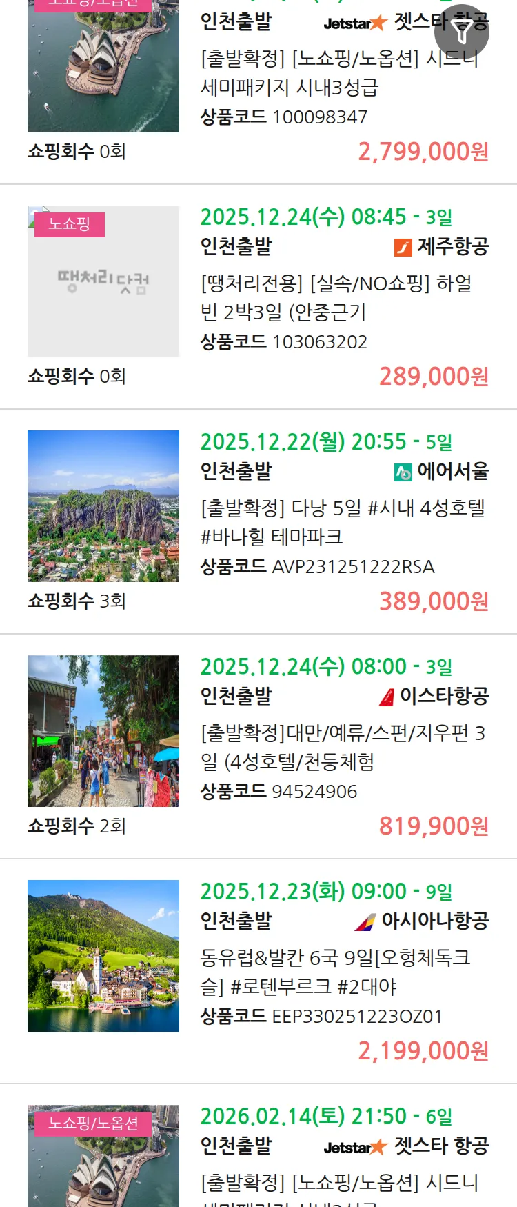(12월 14일(일)) 땡처리 99.9% 확정 패키지