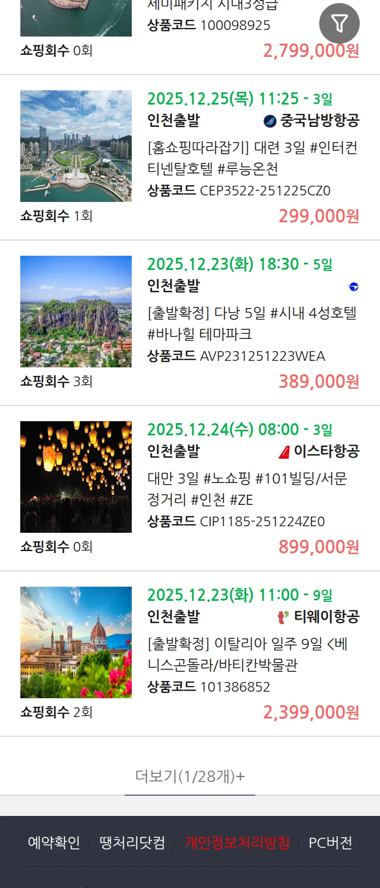(12월5일(금)) 땡처리 연휴 패키지 패키지