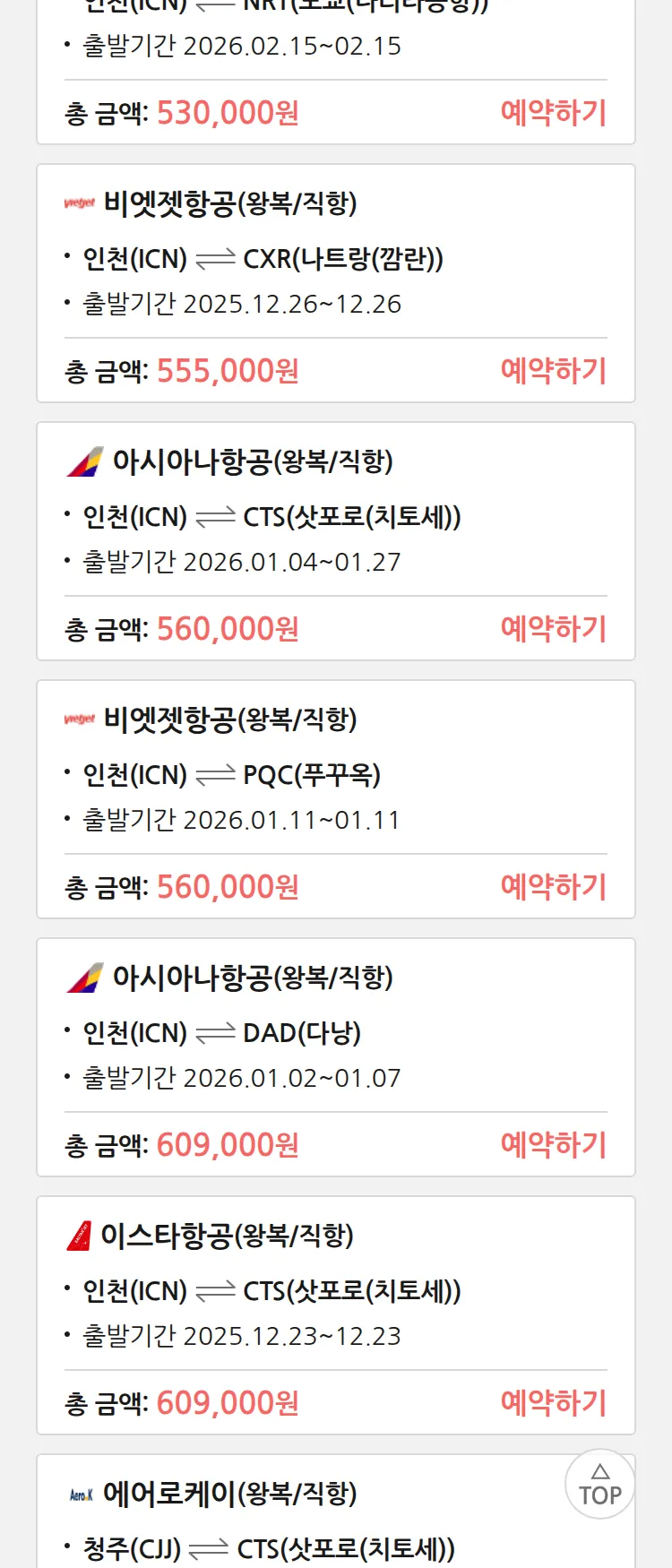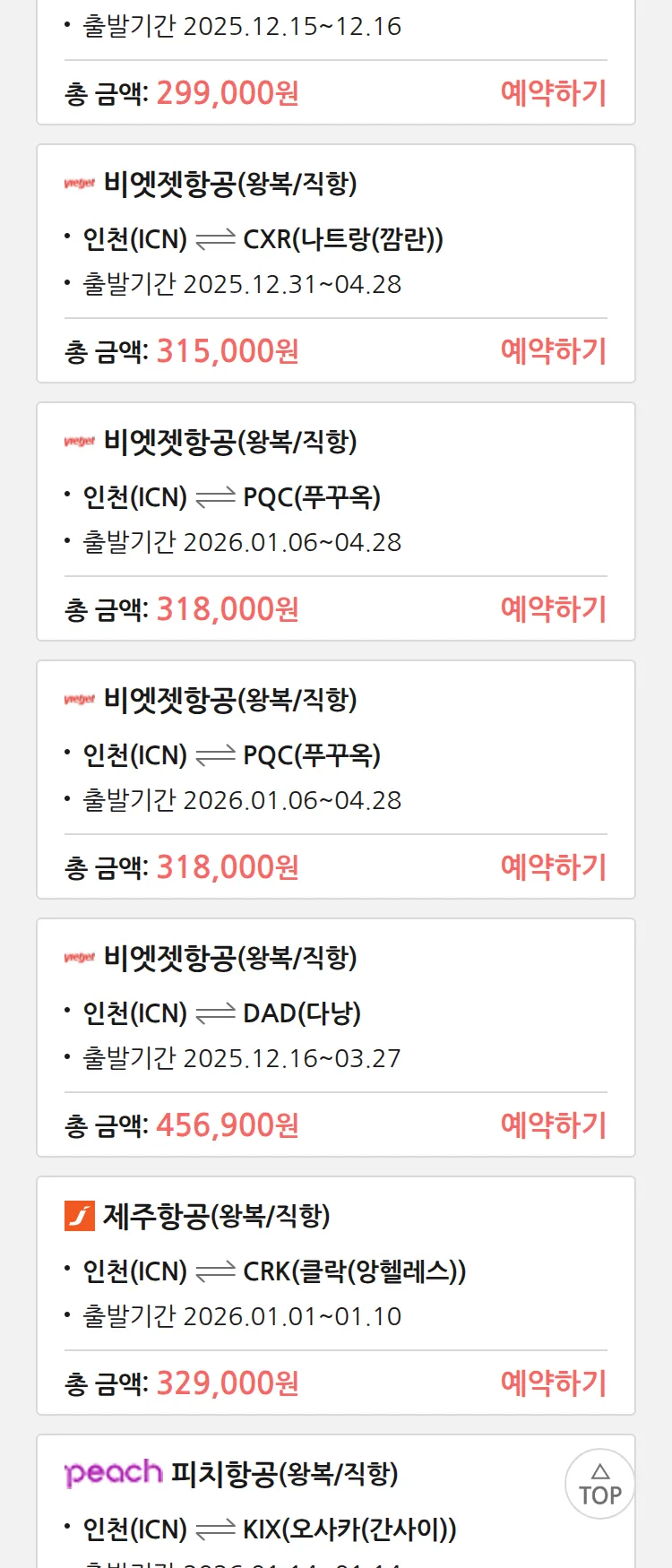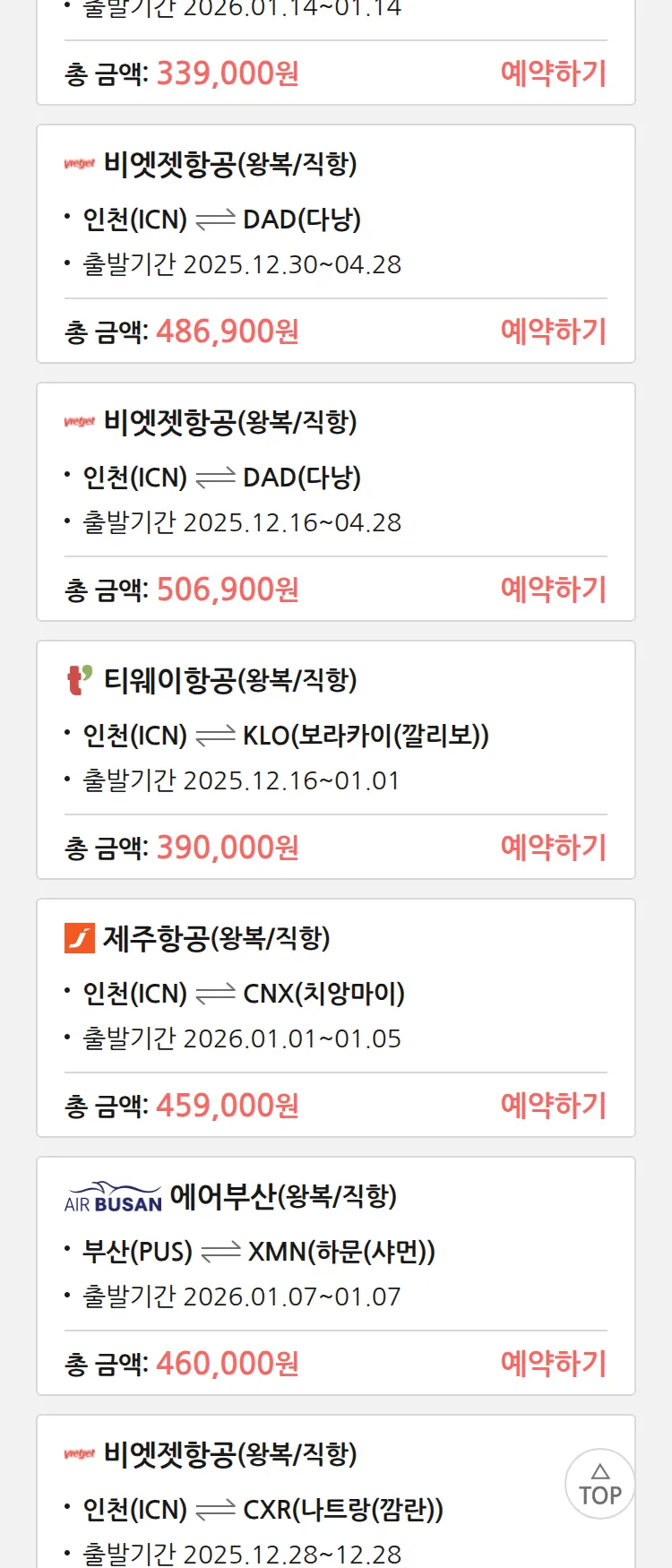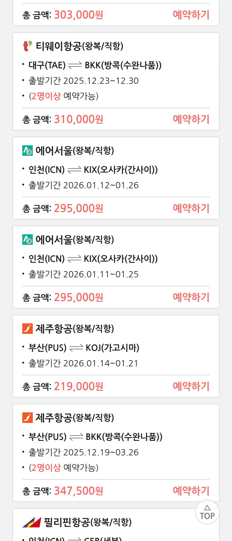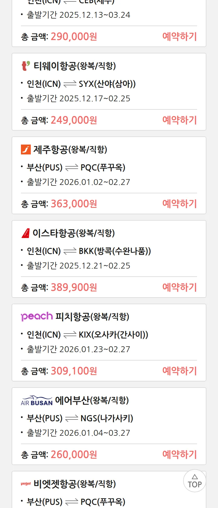 (12월4일(목)) 땡처리 특가 항공권