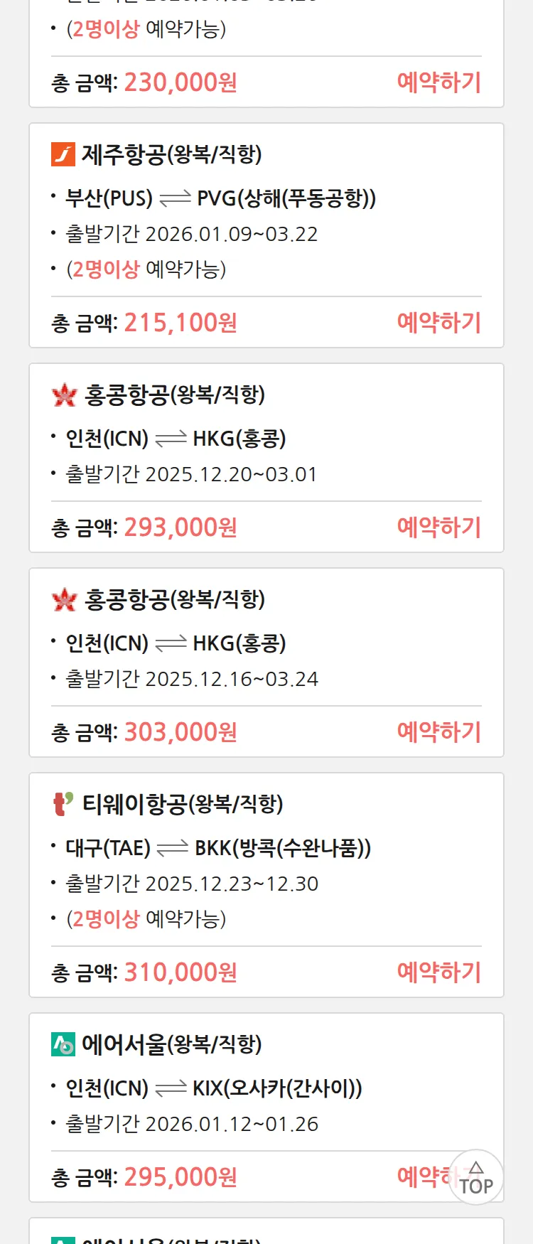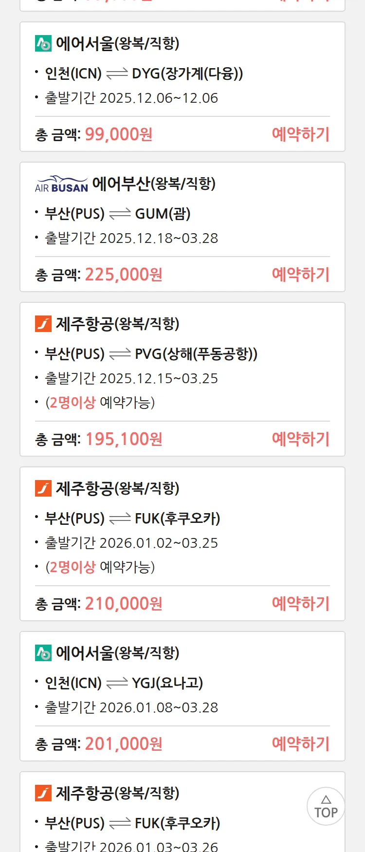 (12월5일(금)) 땡처리 특가 항공권