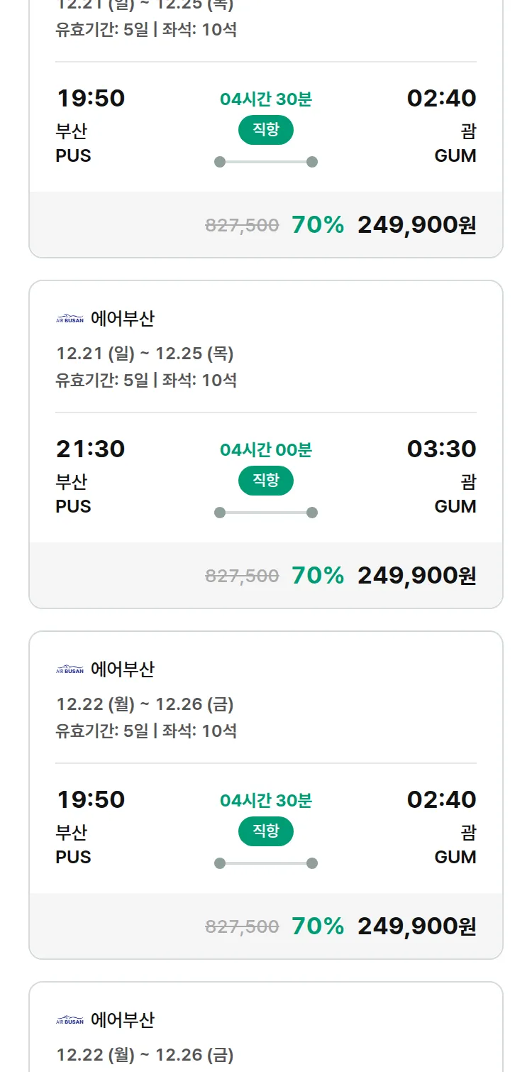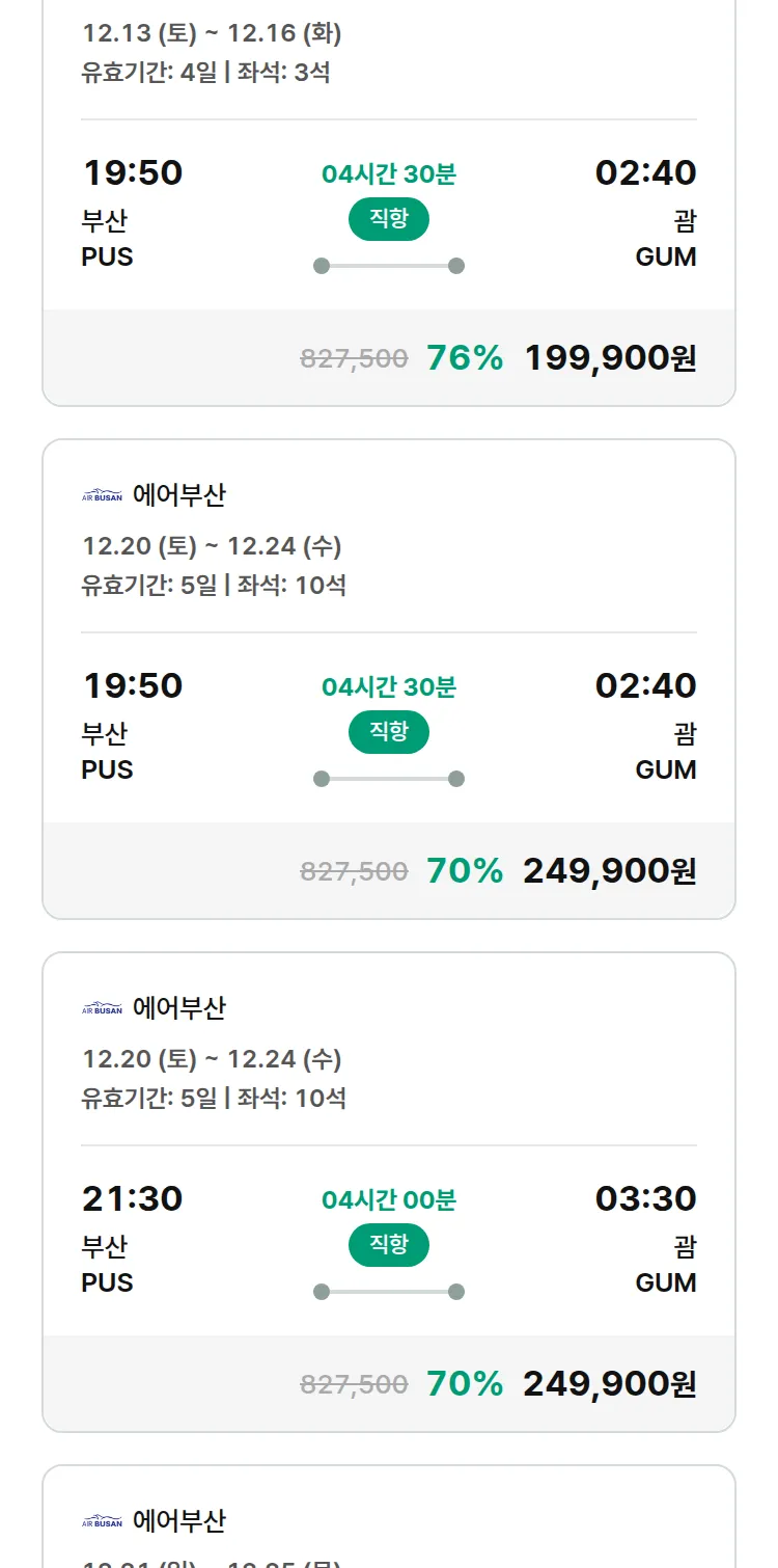 (12월4일(목)) 땡처리 99.9% 확정 패키지