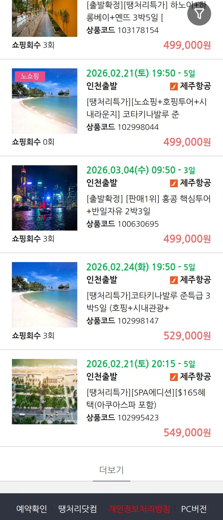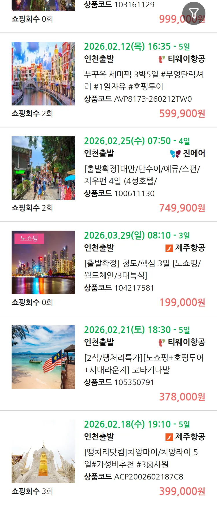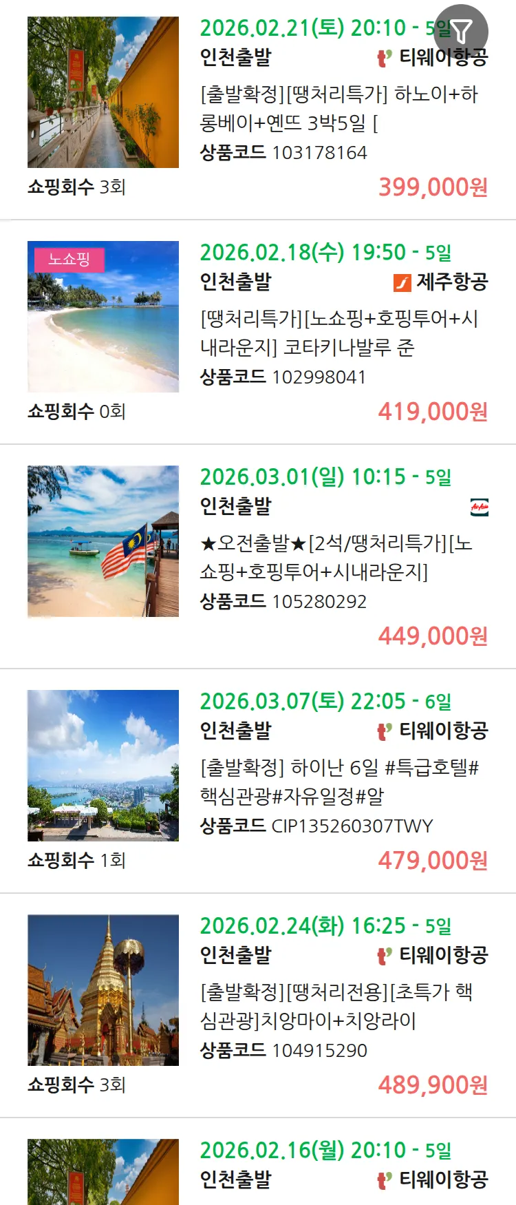 (2월 10일(화)) 땡처리 99.9% 확정 패키지