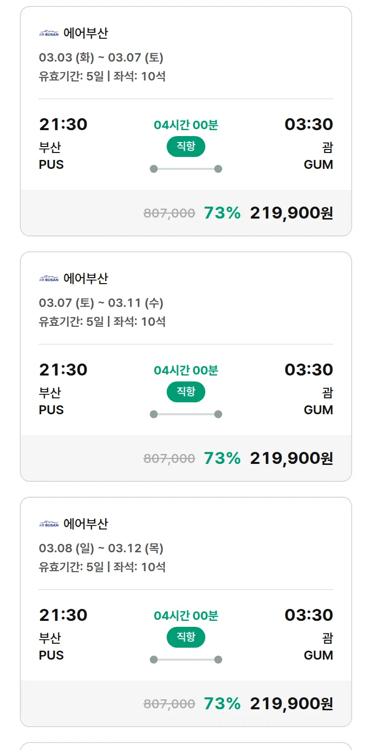 (2월 10일(화)) 땡처리 99.9% 확정 패키지