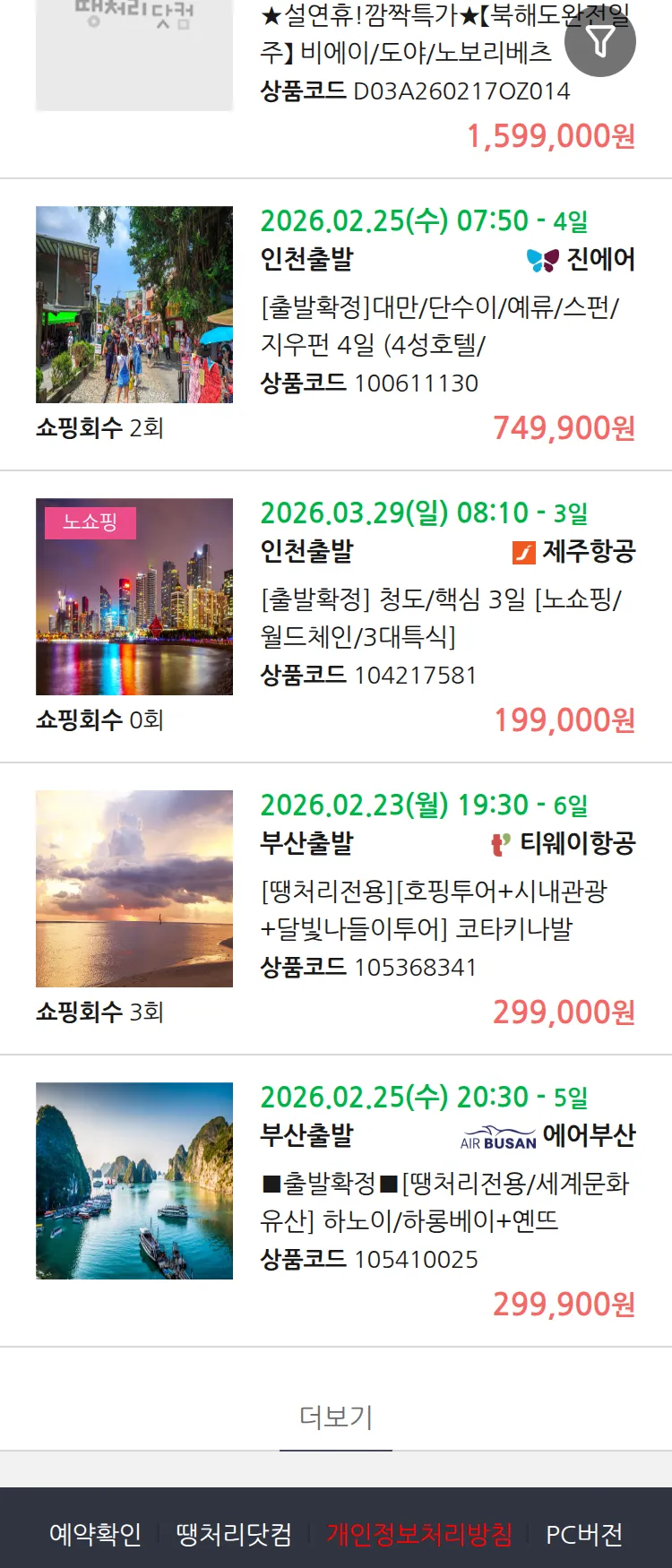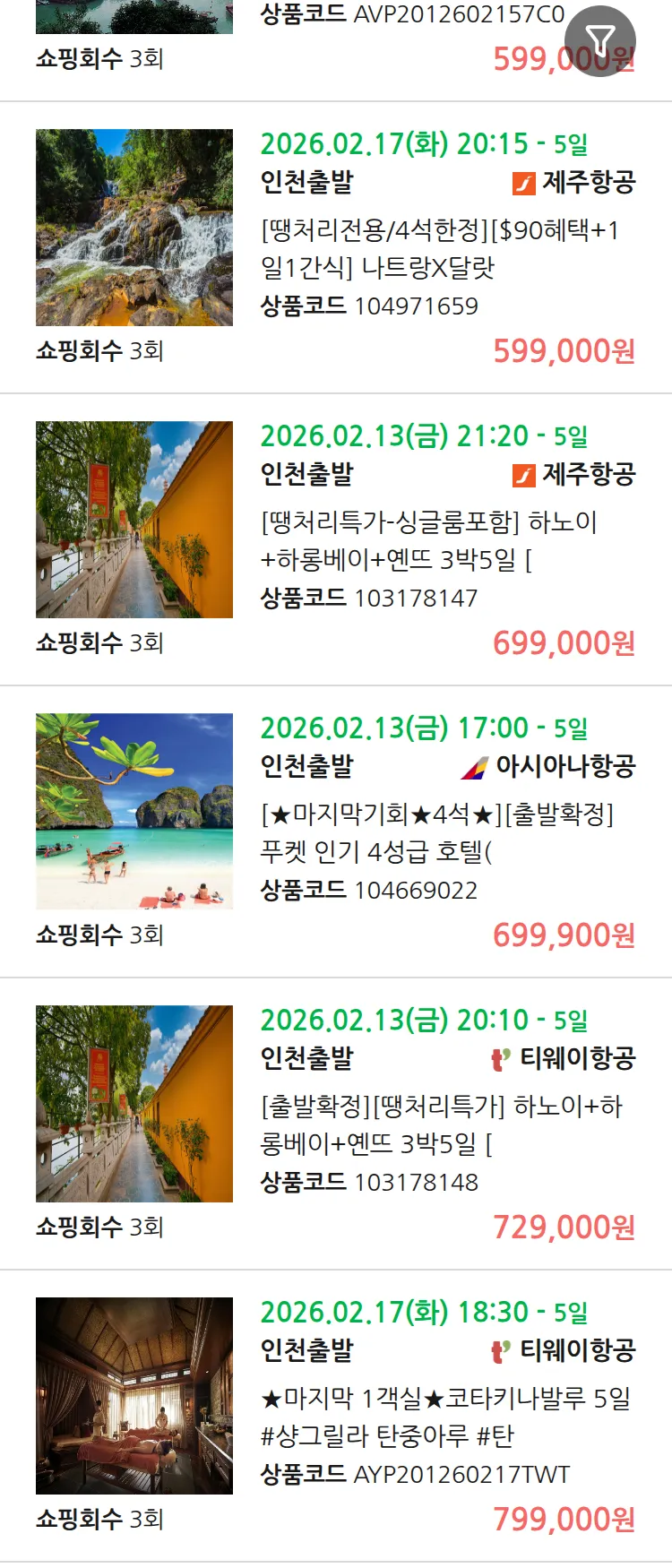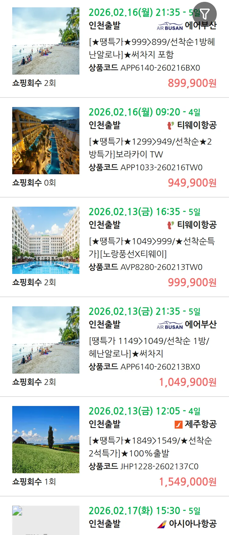 (2월 12일(목)) 땡처리 99.9% 확정 패키지