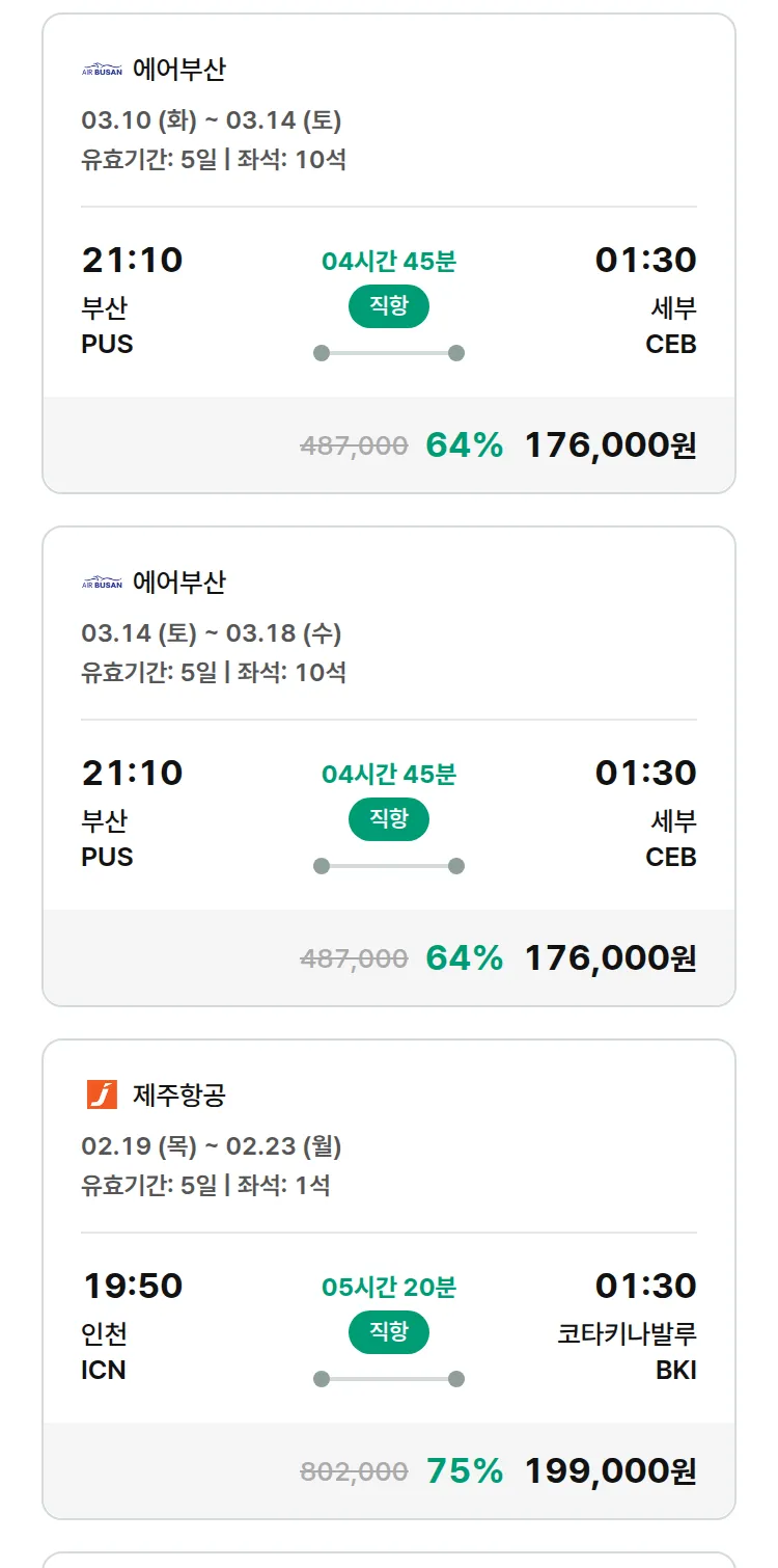 (2월 11일(수)) 땡처리 99.9% 확정 패키지