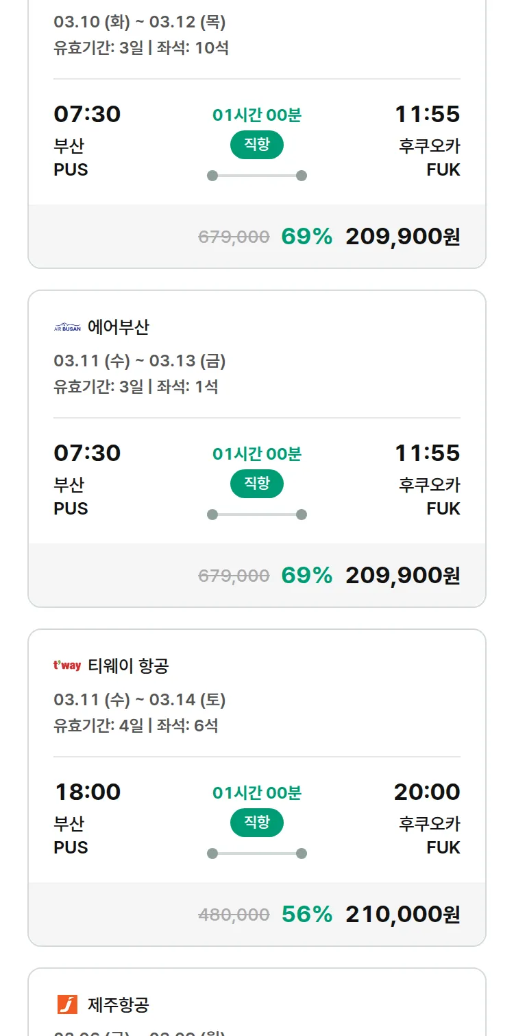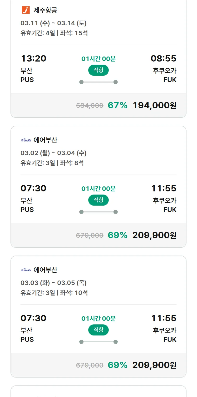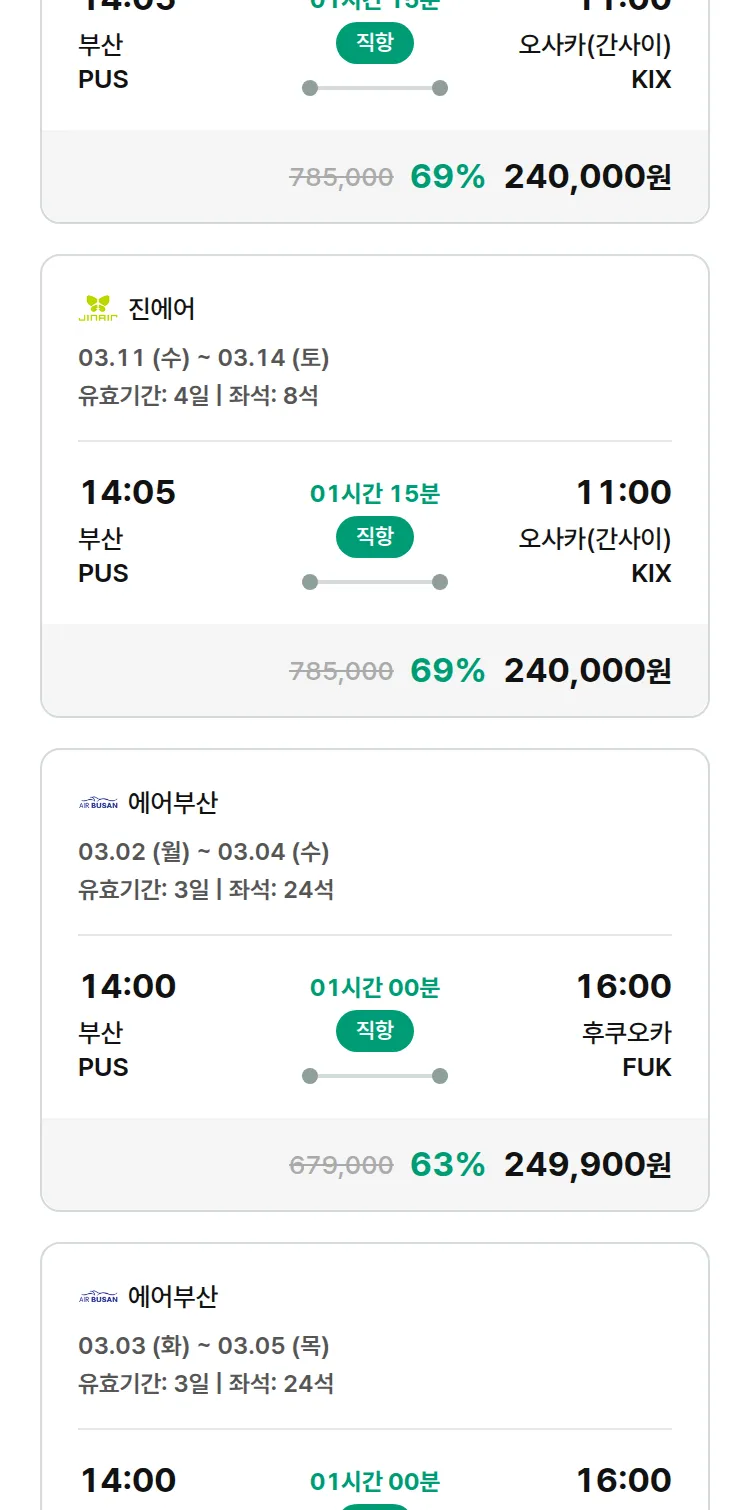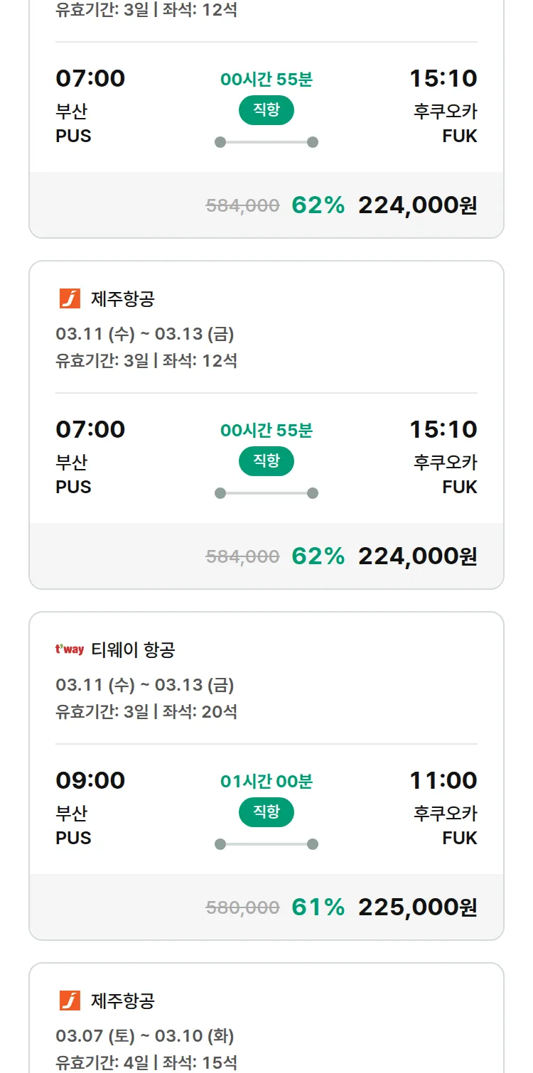 (2월 11일(수)) 땡처리 특가 항공권