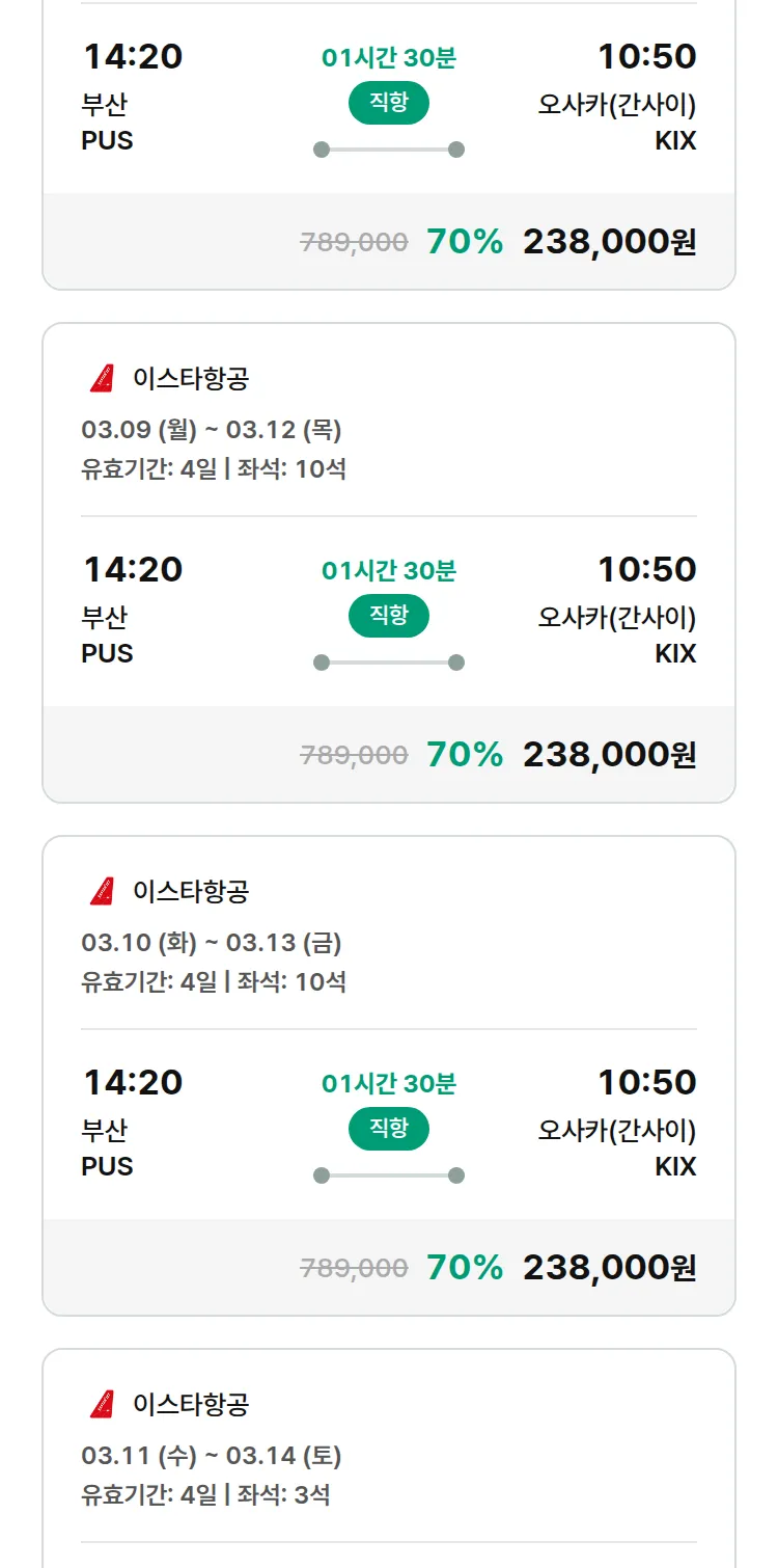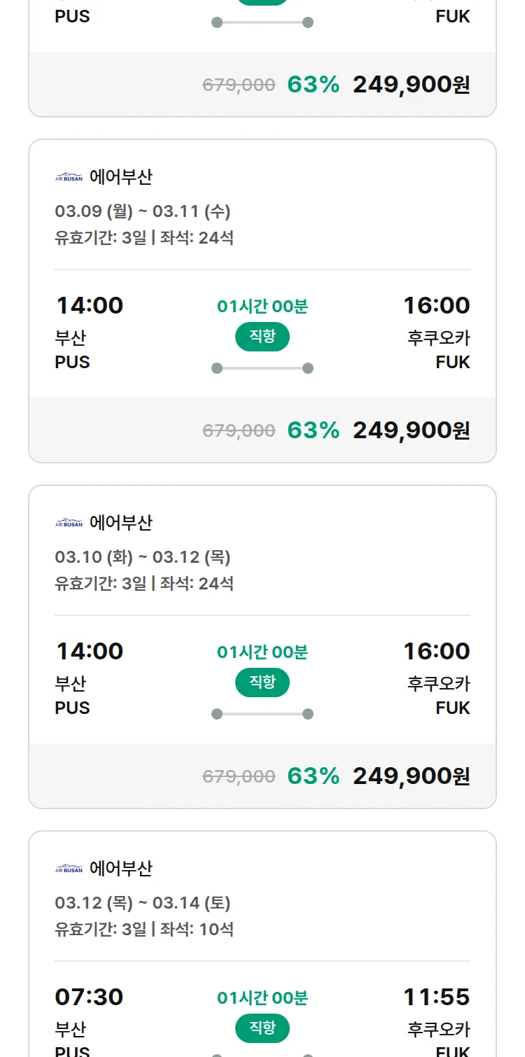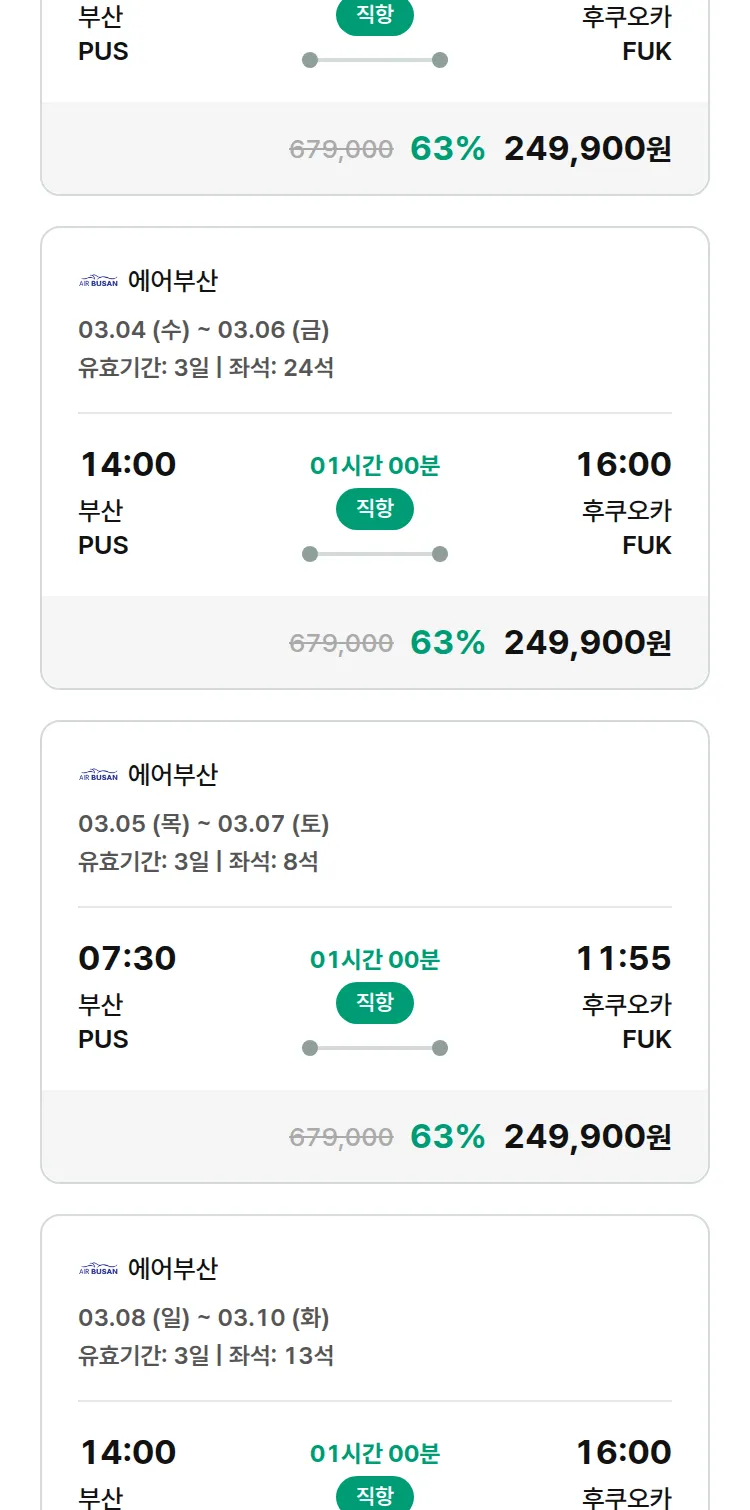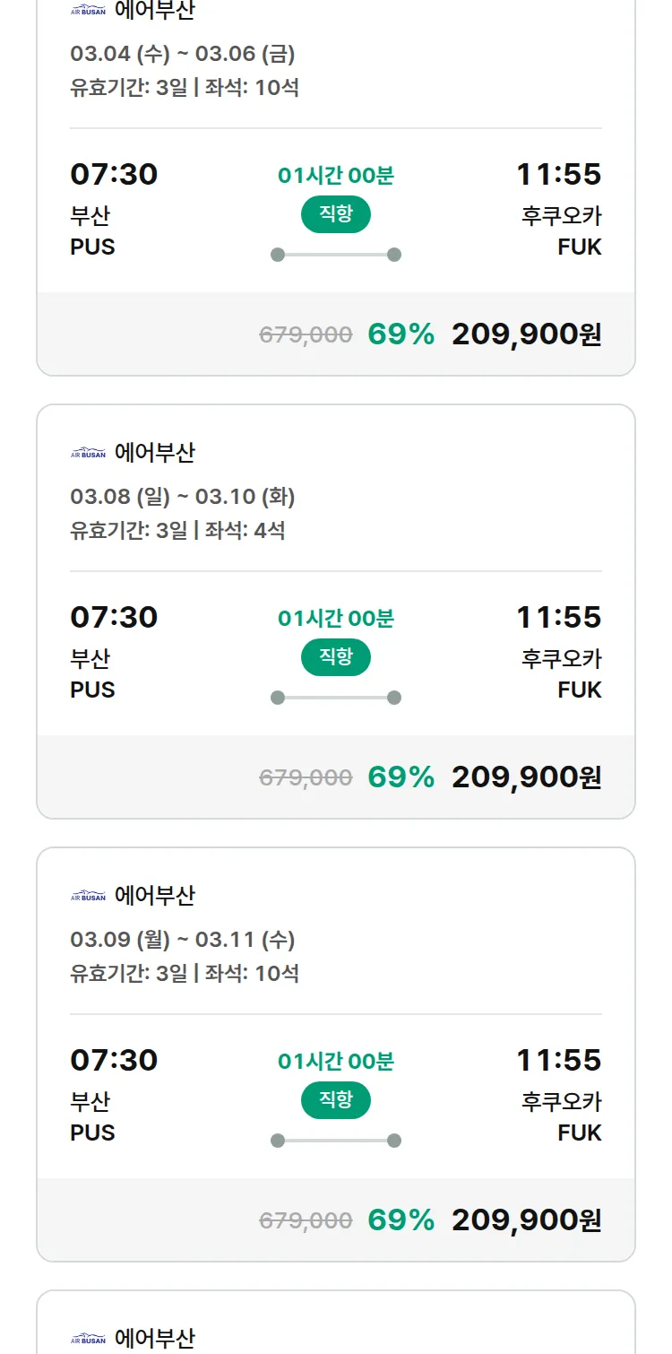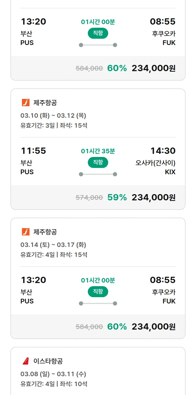 (2월 11일(수)) 땡처리 특가 항공권