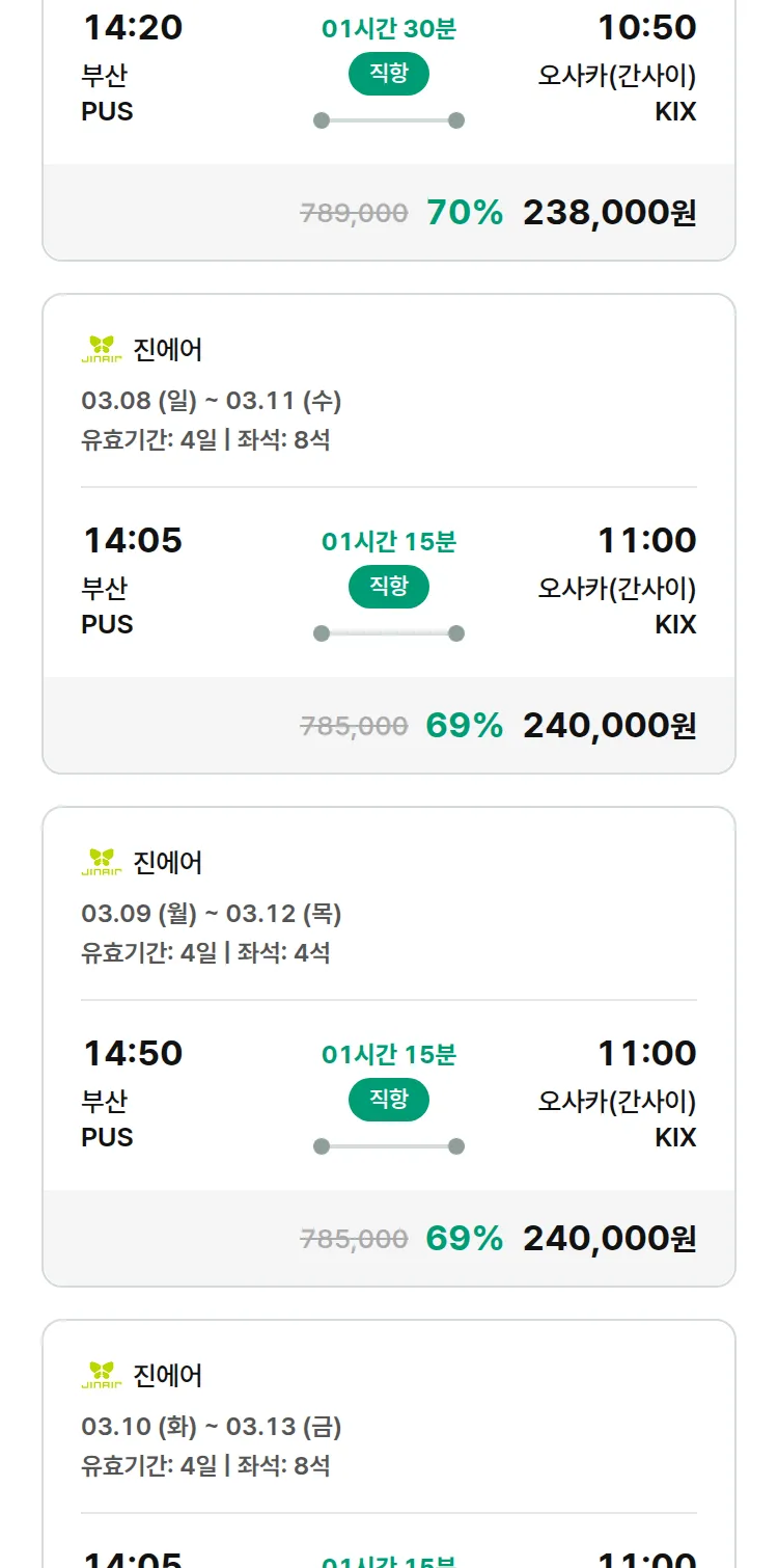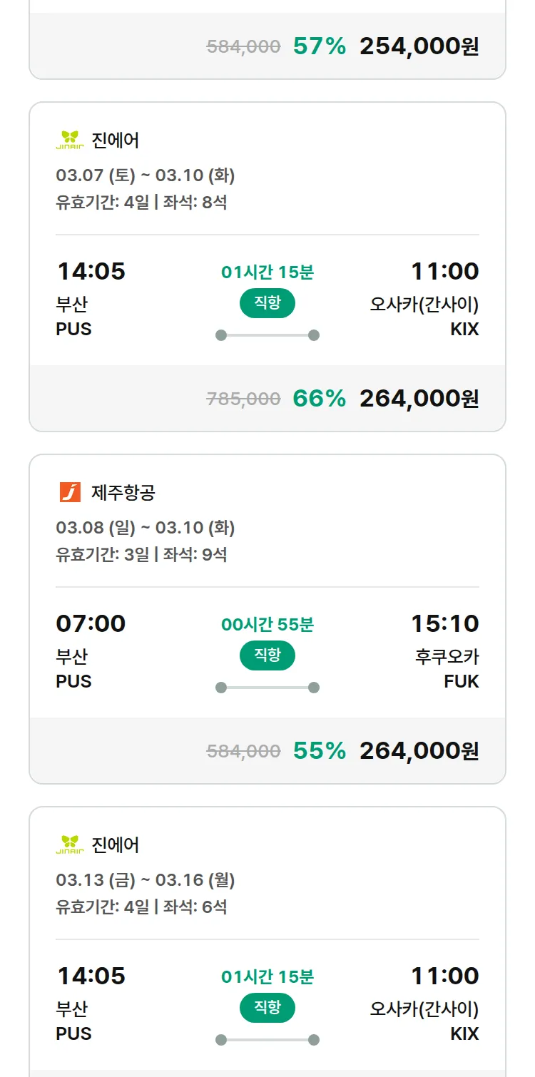 (2월 11일(수)) 모두투어 일본 특가 항공권