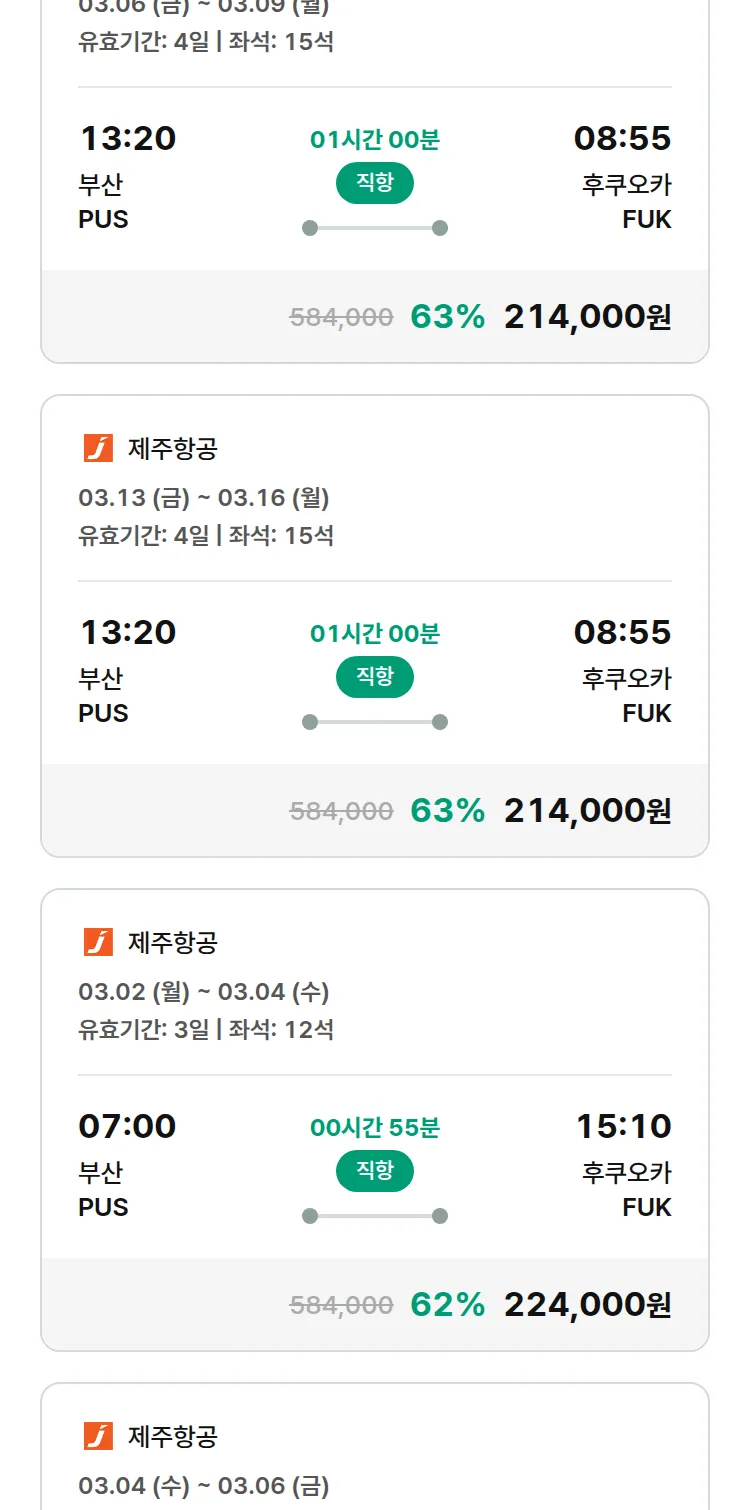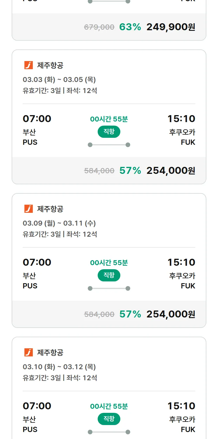 (2월 12일(목)) 땡처리 특가 항공권