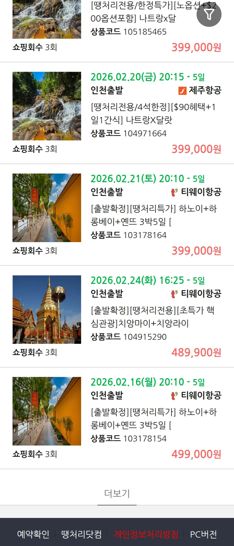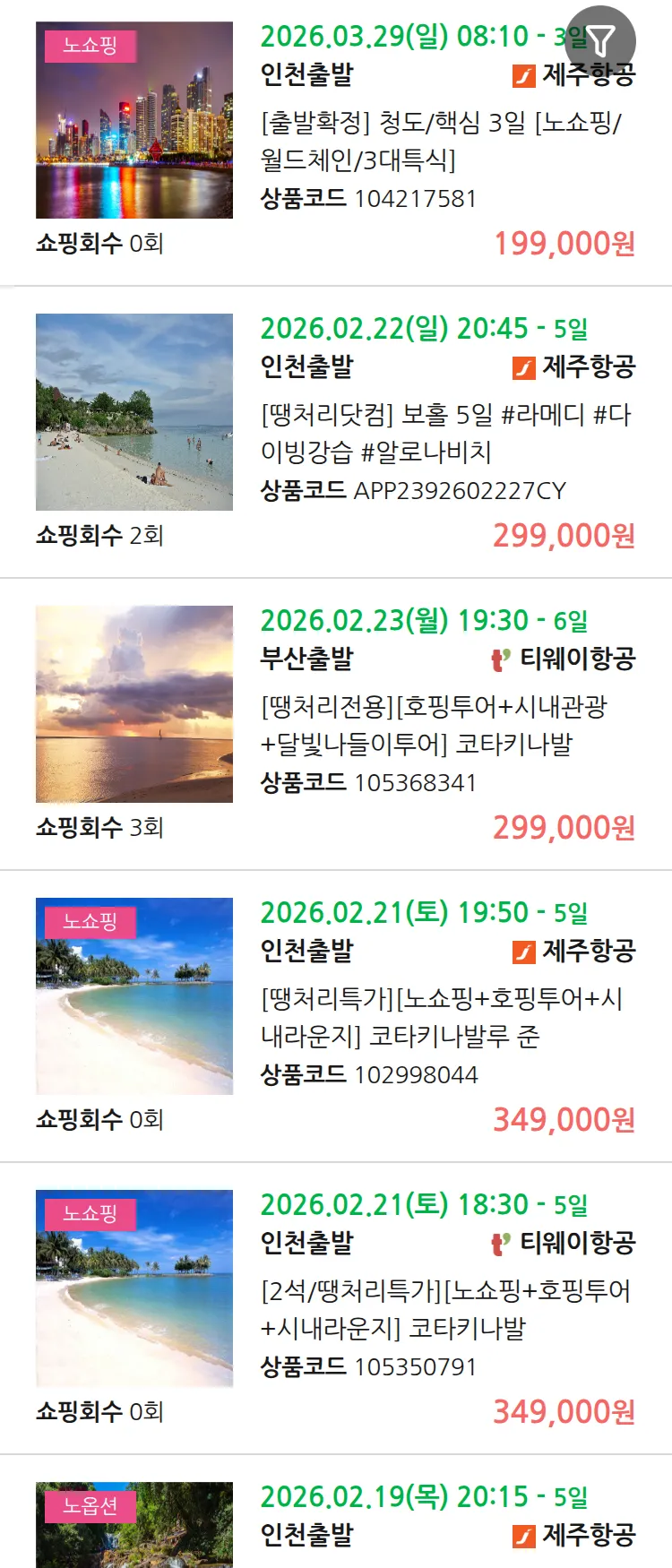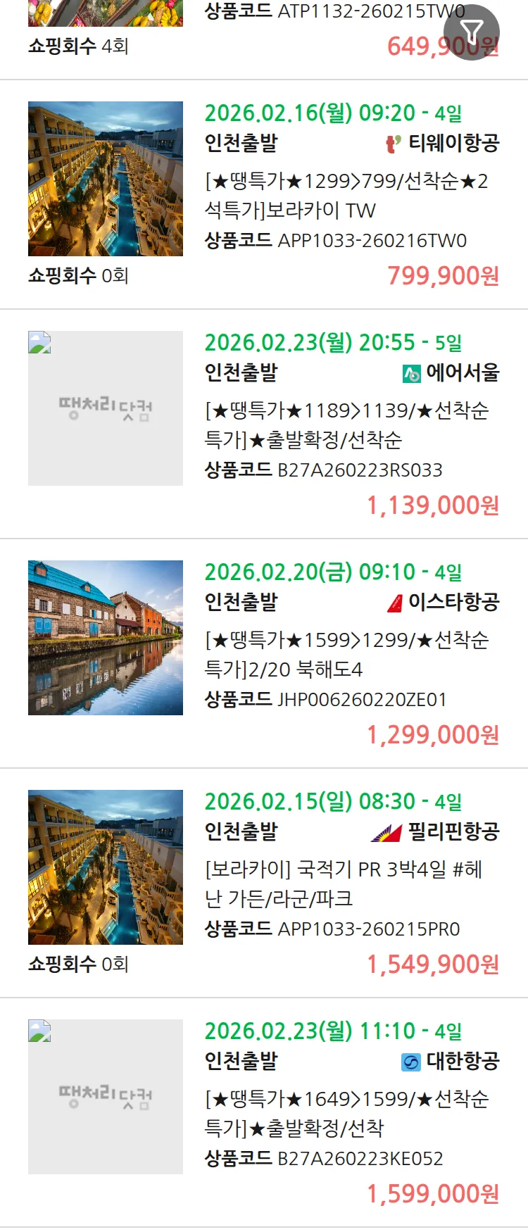 (2월 12일(목)) 땡처리 99.9% 확정 패키지
