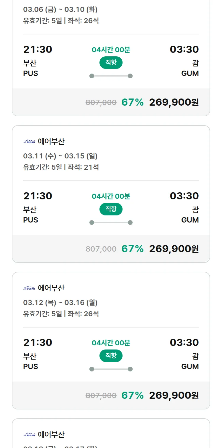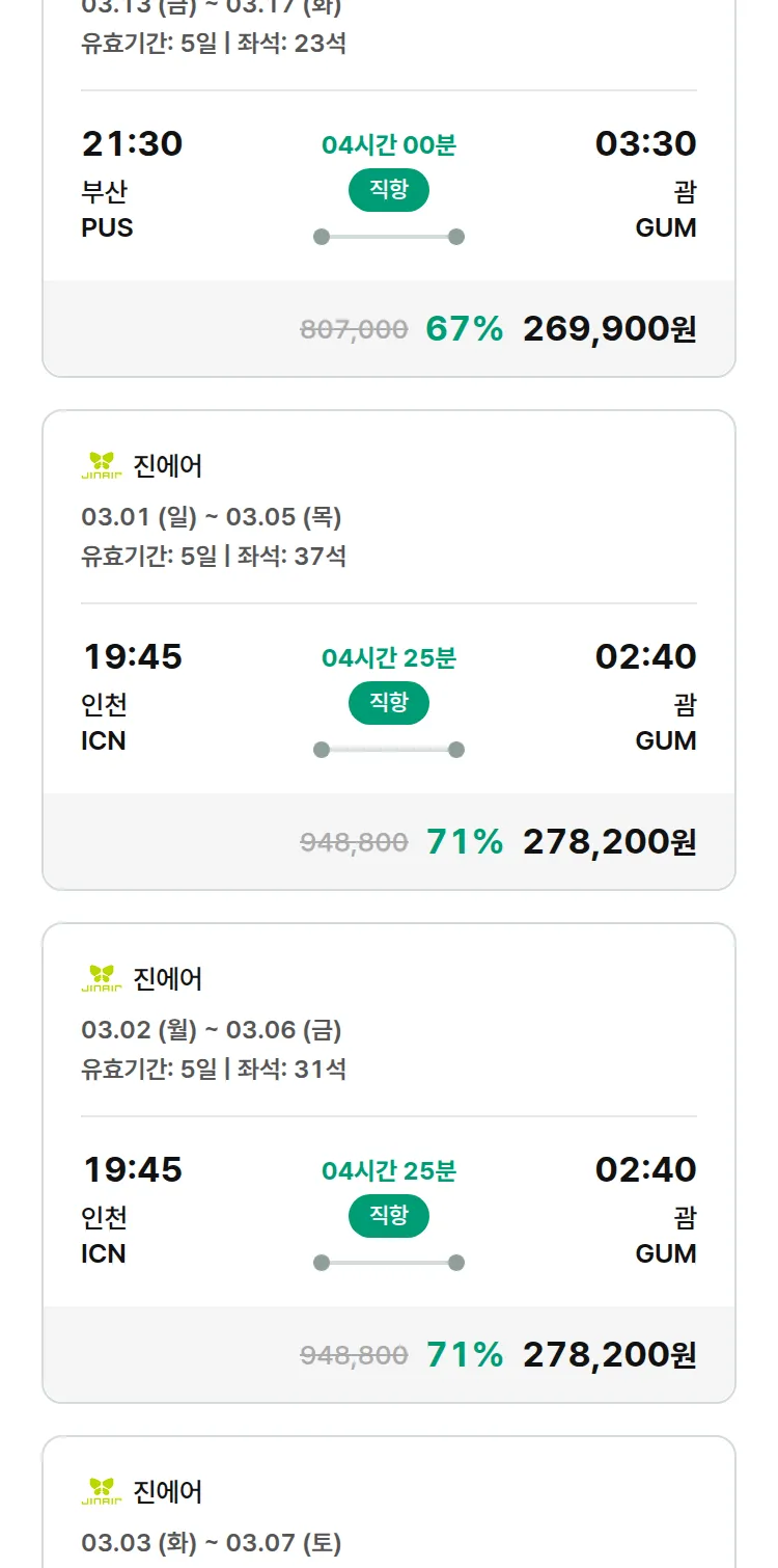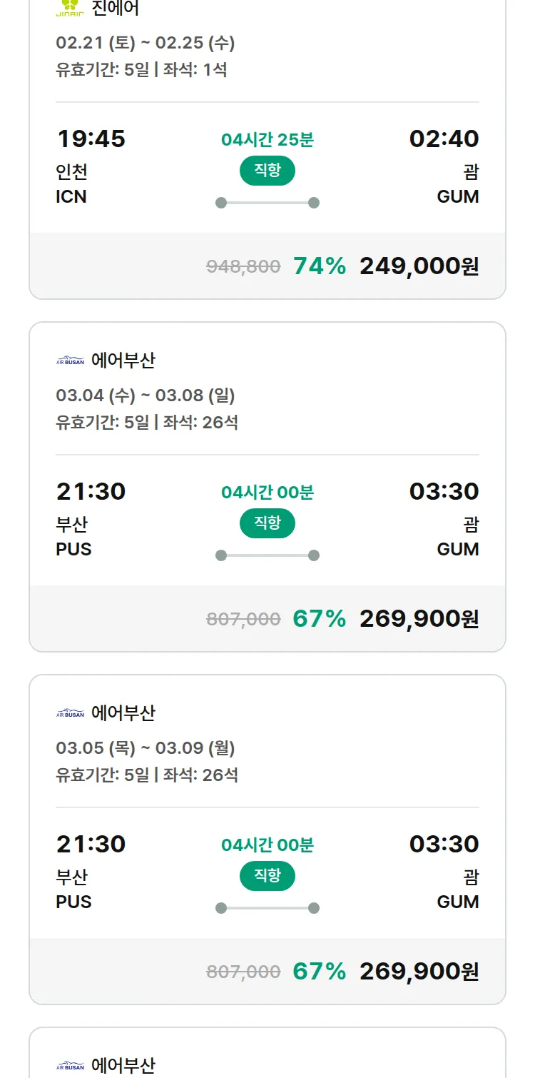 (2월 14일(토)) 땡처리 특가 항공권