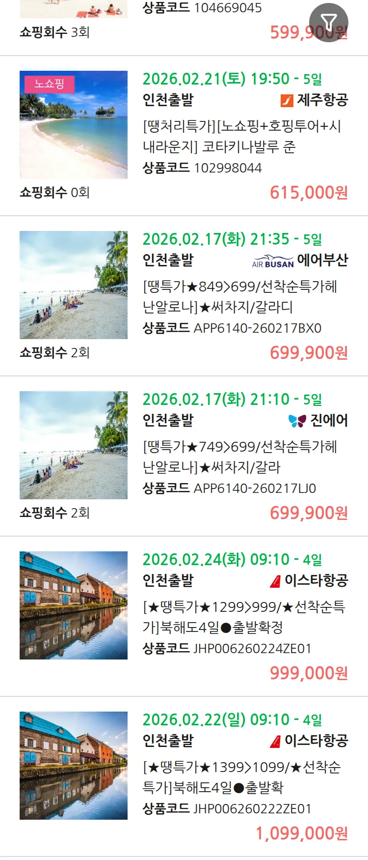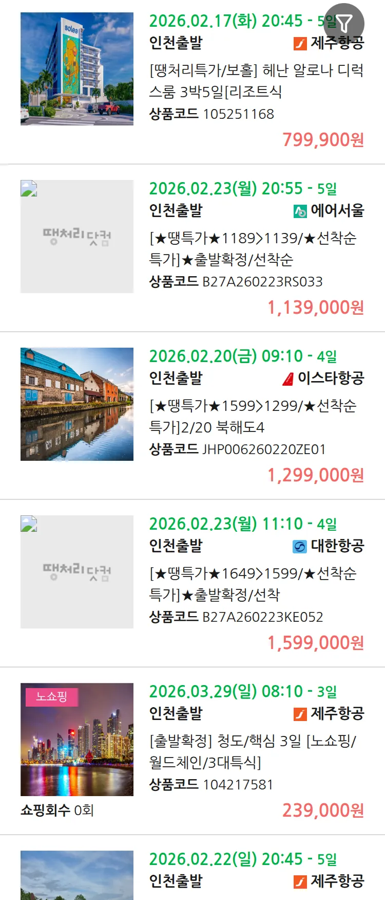 (2월 13일(금)) 땡처리 99.9% 확정 패키지