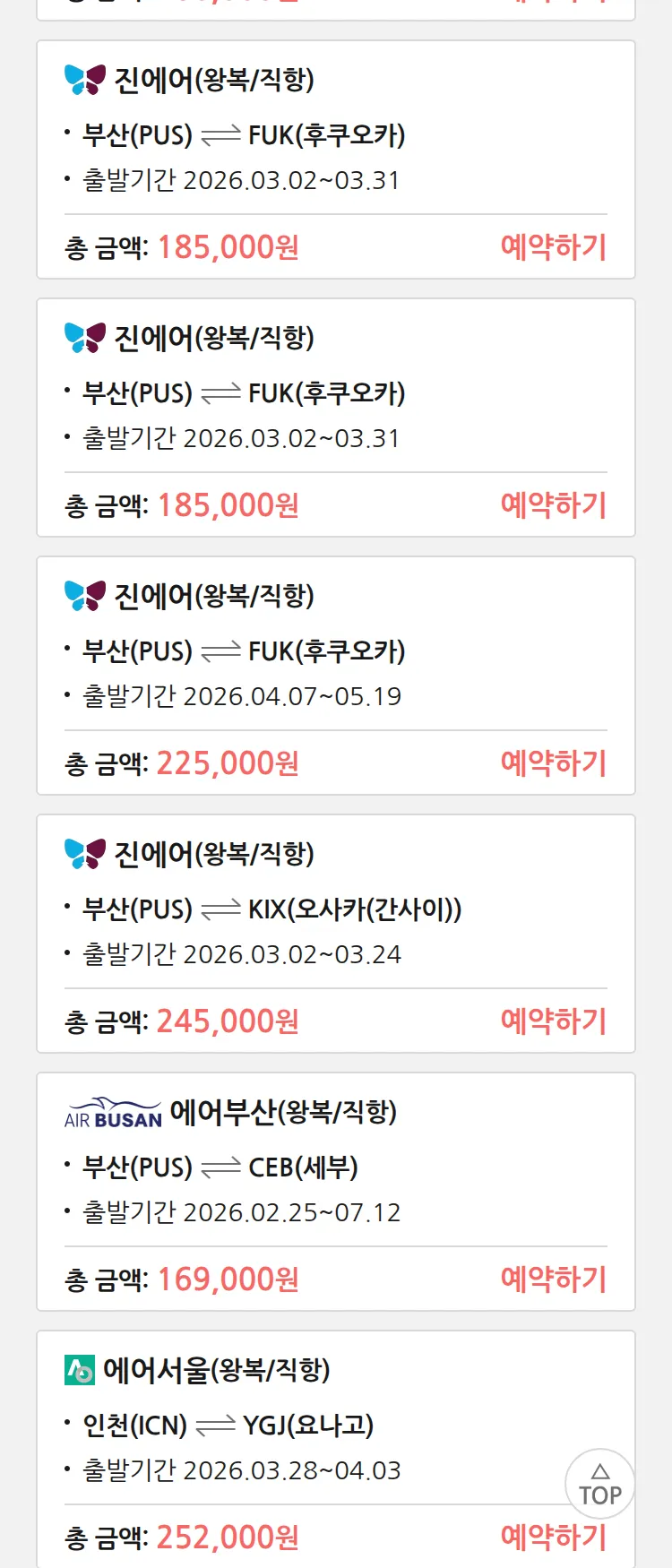 (2월 13일(금)) 모두투어 일본 특가 항공권