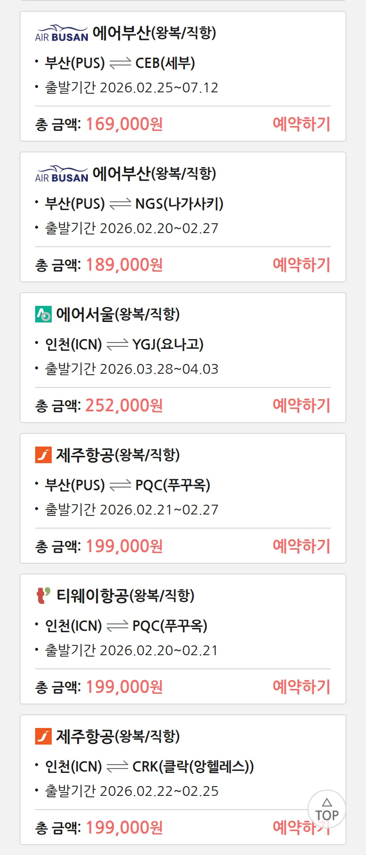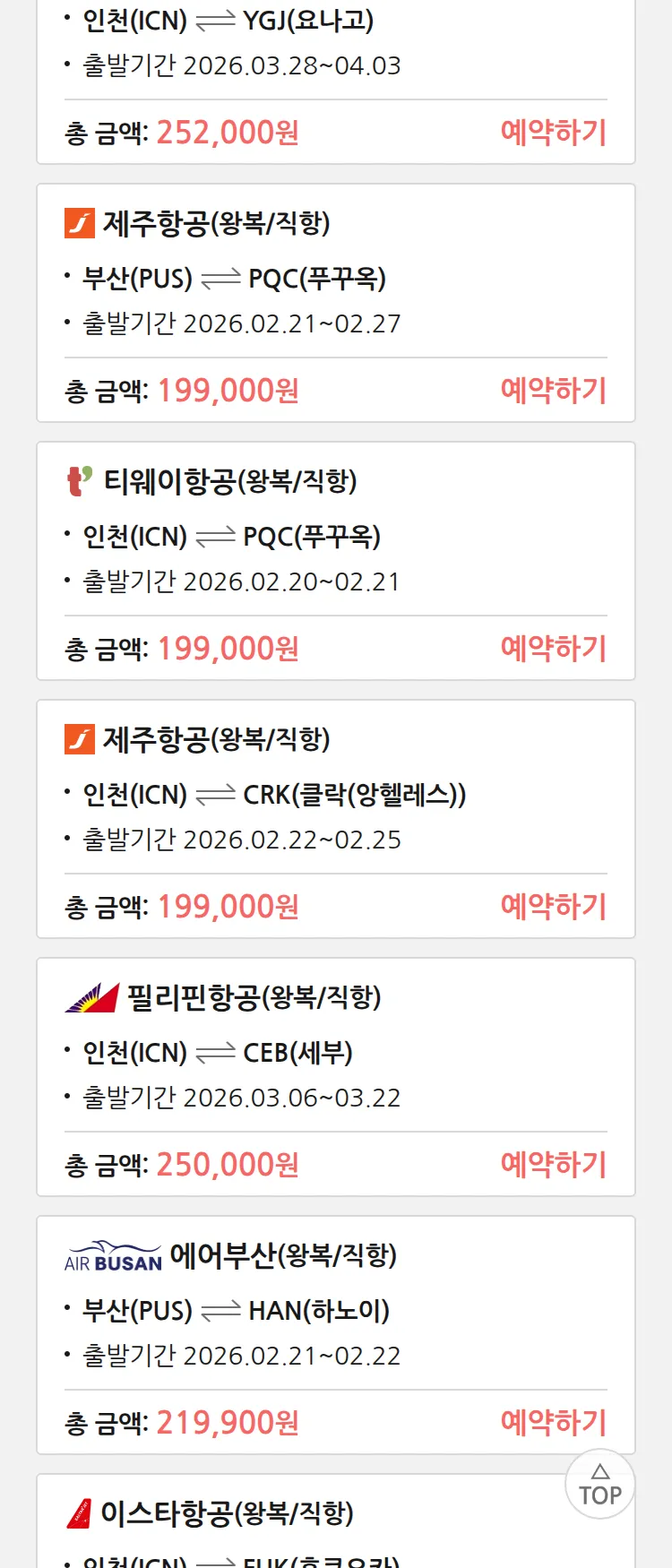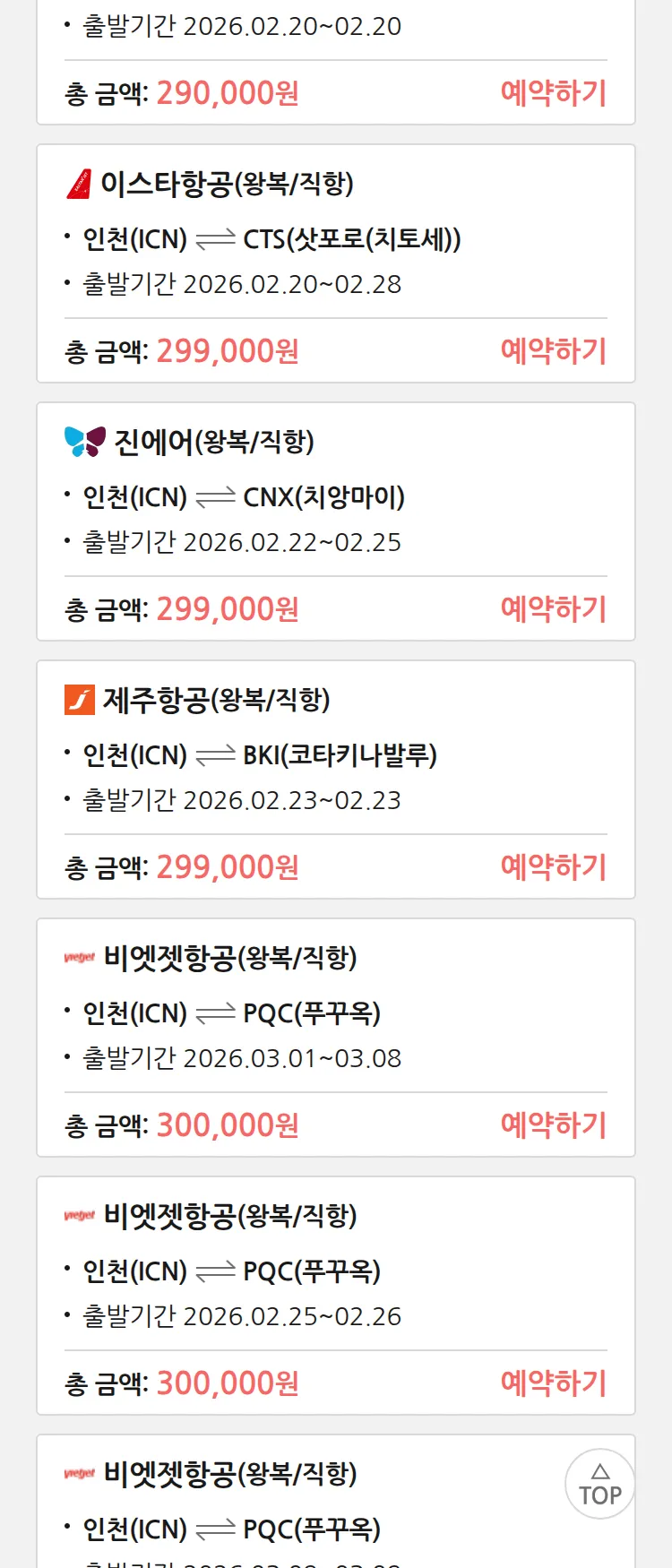 (2월 14일(토)) 땡처리 특가 항공권