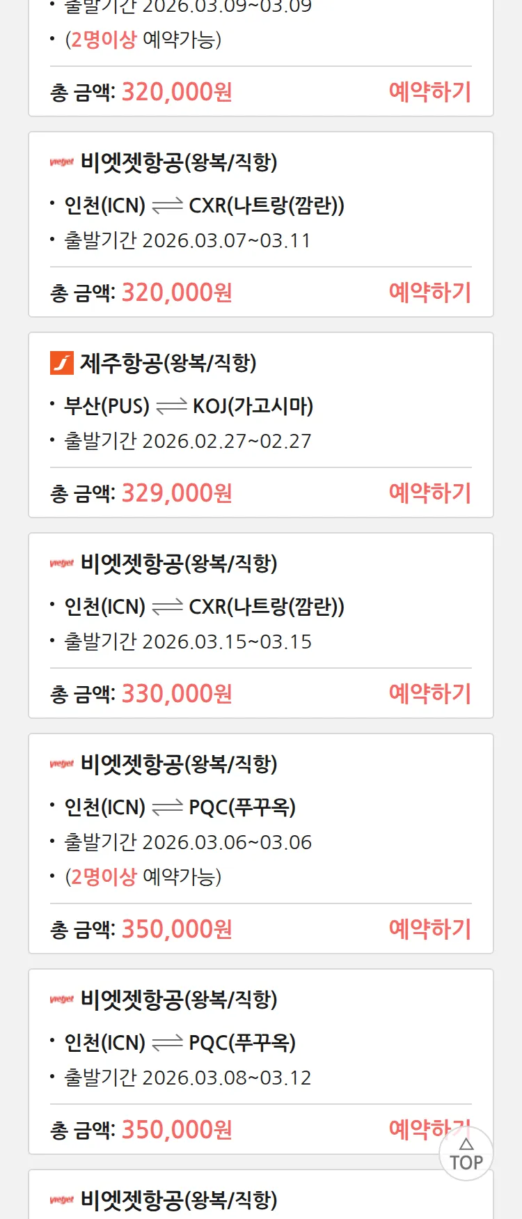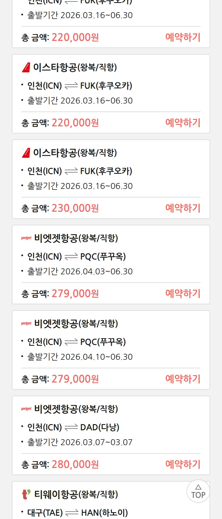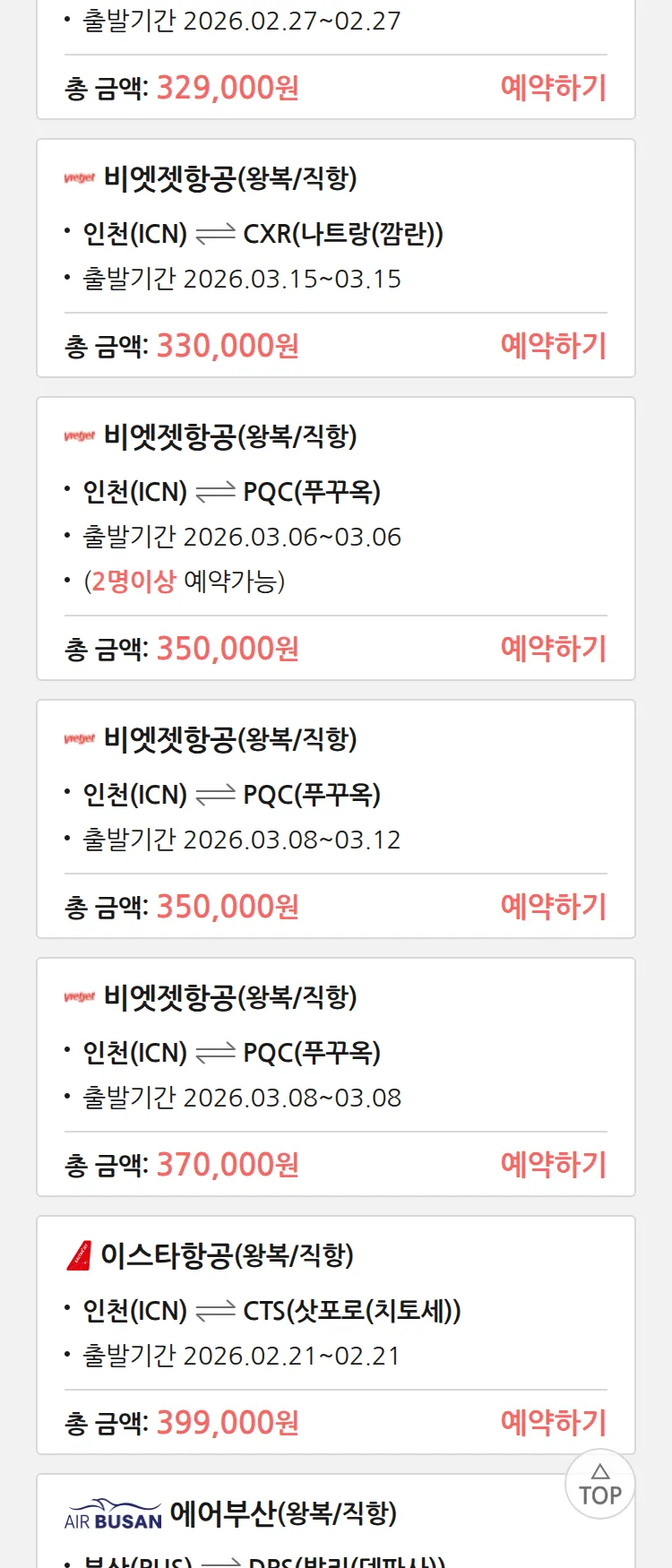 (2월 14일(토)) 땡처리 특가 항공권