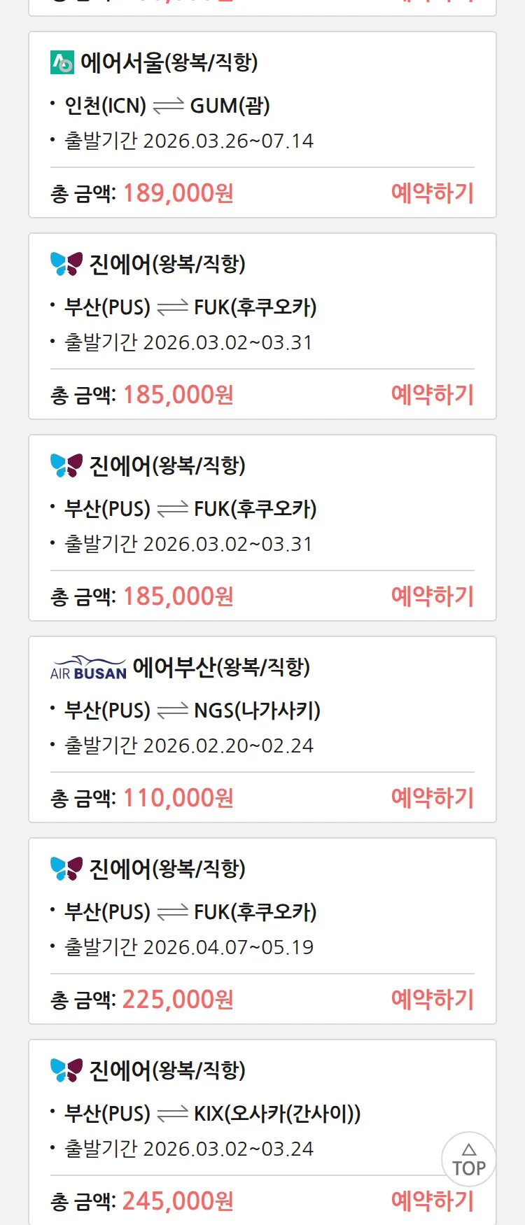 (2월 12일(목)) 땡처리 특가 항공권