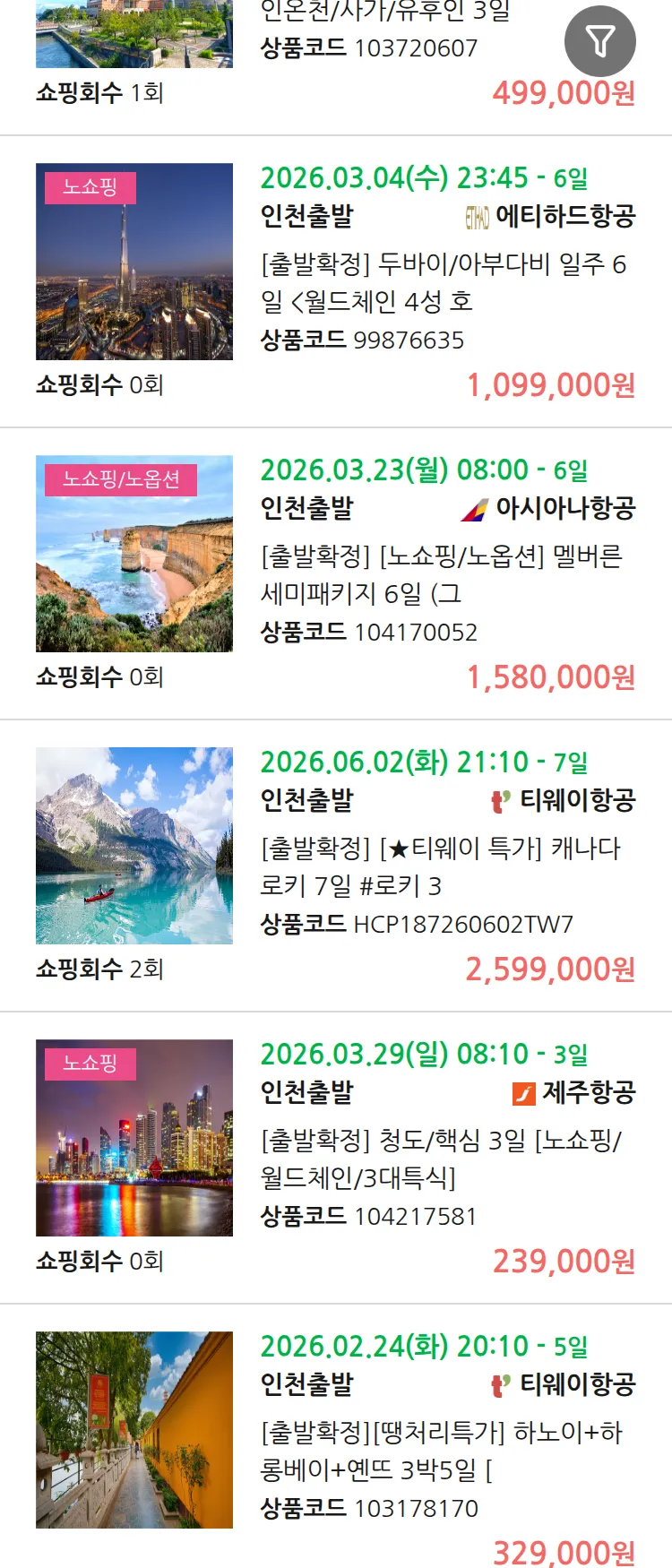 (2월 13일(금)) 땡처리 99.9% 확정 패키지