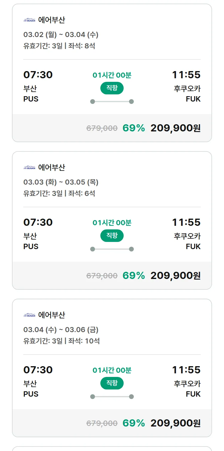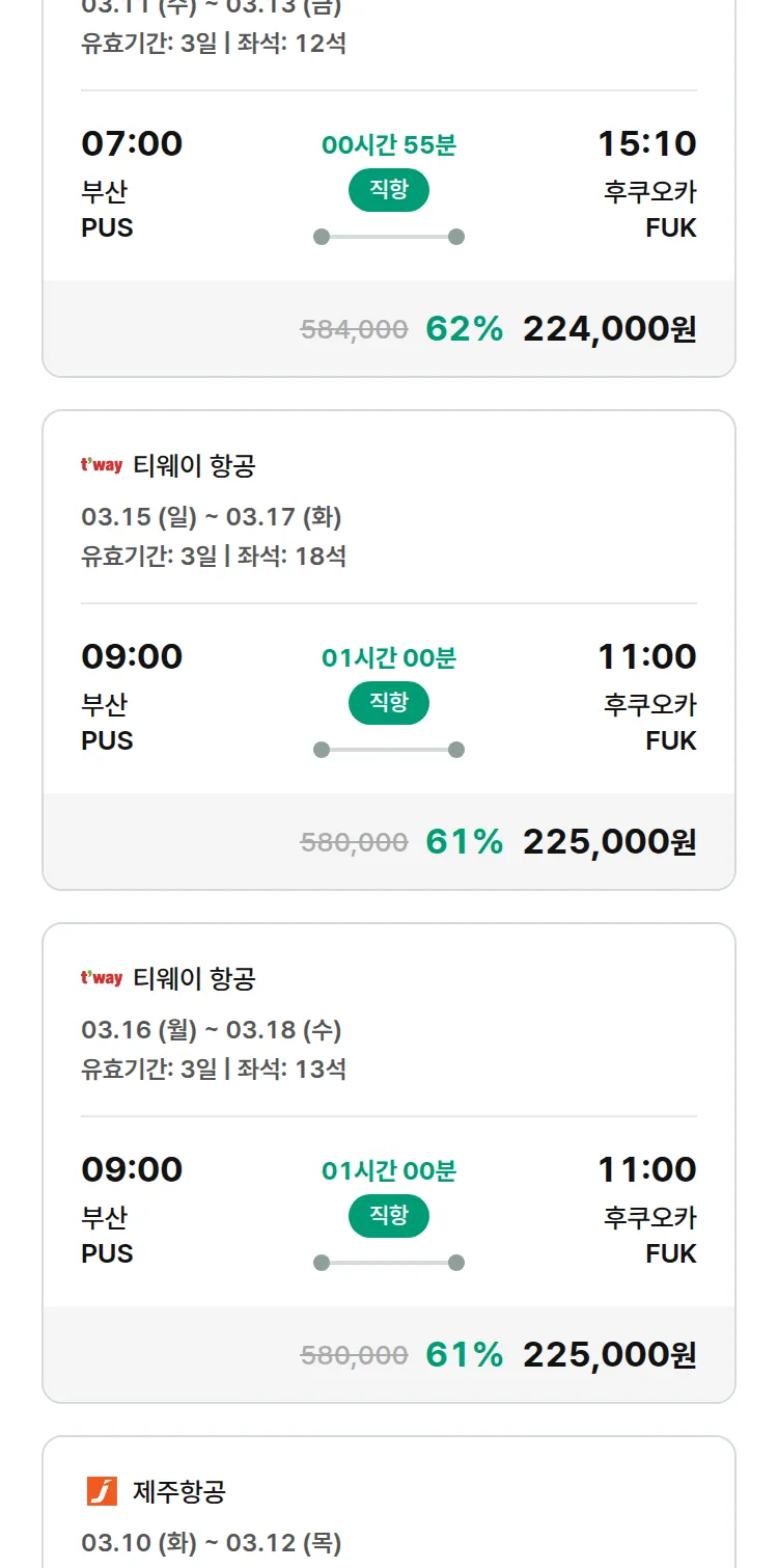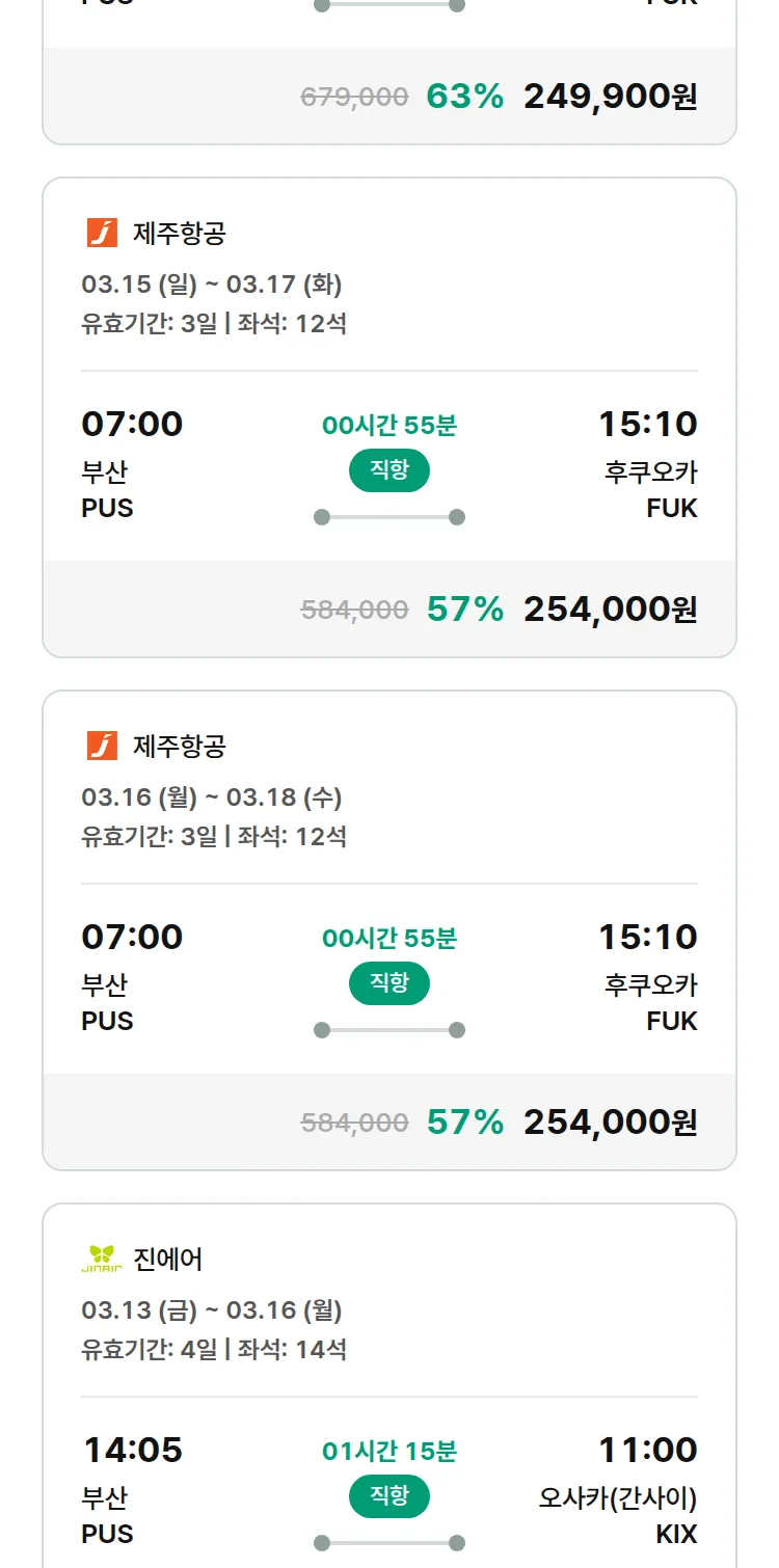 (2월 12일(목)) 땡처리 특가 항공권
